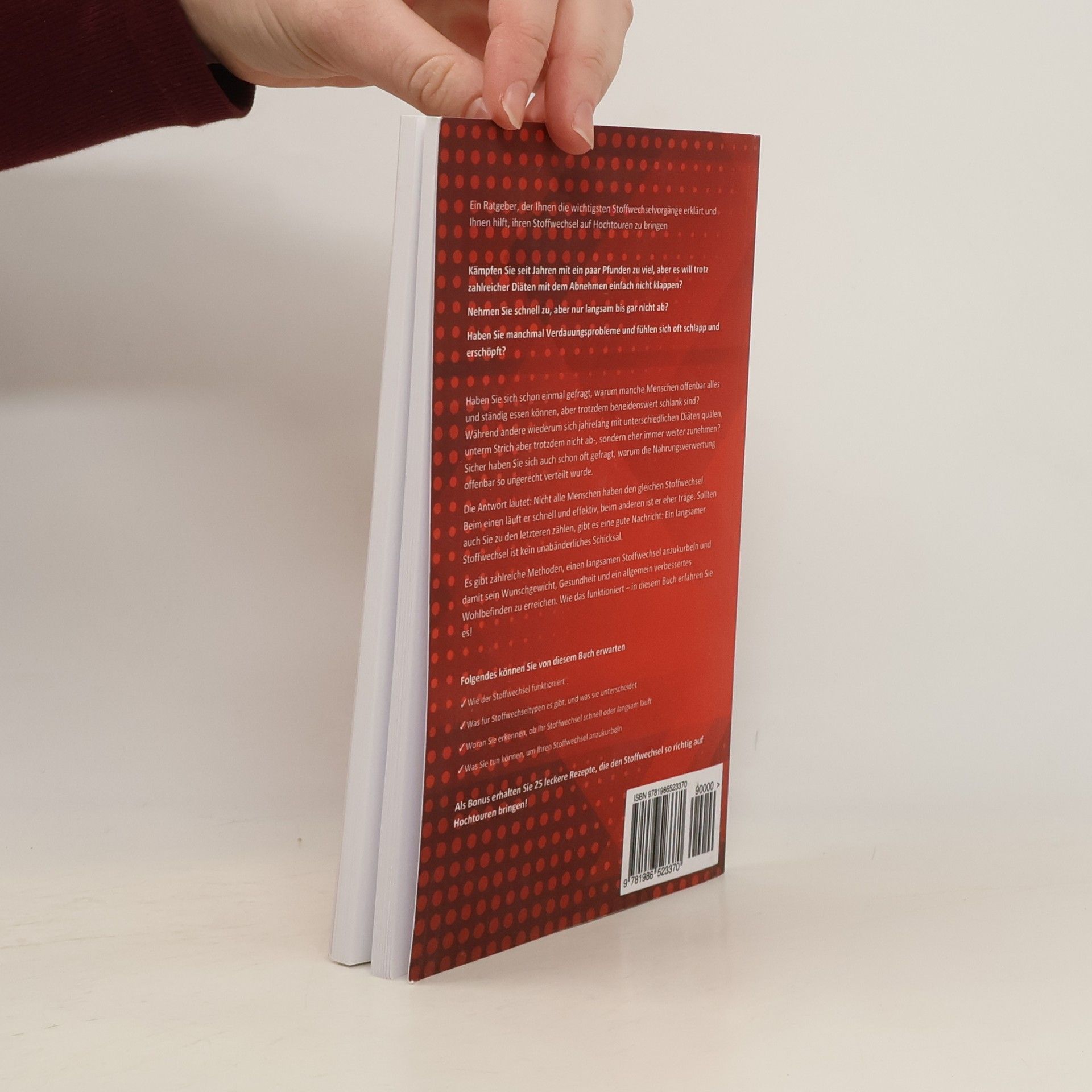 Ein Ratgeber, der Ihnen die wichtigsten Stoffwechselvorgänge erklärt und Ihnen hilft, ihren Stoffwechsel auf Hochtouren zu bringen Kämpfen Sie seit Jahren mit ein paar Pfunden zu viel, aber es will trotz zahlreicher Diäten mit dem Abnehmen einfach nicht klappen? Nehmen Sie schnell zu, aber nur langsam bis gar nicht ab? Haben Sie manchmal Verdauungsprobleme und fühlen sich oft schlapp und erschöpft? Haben Sie sich schon einmal gefragt, warum manche Menschen offenbar alles und ständig essen können, aber trotzdem beneidenswert schlank sind? Während andere wiederum sich jahrelang mit unterschiedlichen Diäten quälen, unterm Strich aber trotzdem nicht ab-, sondern eher immer weiter zunehmen? Sicher haben Sie sich auch schon oft gefragt, warum die Nahrungsverwertung offenbar so ungerecht verteilt wurde. Die Antwort lautet: Nicht alle Menschen haben den gleichen Stoffwechsel. Beim einen läuft er schnell und effektiv, beim anderen ist er eher träge. Sollten auch Sie zu den letzteren zählen, gibt es eine gute Nachricht: Ein langsamer Stoffwechsel ist kein unabänderliches Schicksal. Wir unterscheiden zwischen drei verschiedenen Stoffwechseltypen. Welche das sind, und zu welchem Sie gehören, erfahren Sie in diesem Buch. Es erklärt Ihnen auch, welche Vorteile Sie haben, wenn Ihr Stoffwechsel gut funktioniert. Ein flotter Stoffwechsel hilft nämlich nicht nur beim Abnehmen - er schützt auch vor verschiedenen Krankheiten wie Diabetes oder Herz-Kreislauf-Erkrankungen. Es gibt zahlreiche Methoden, einen langsamen Stoffwechsel anzukurbeln und damit sein Wunschgewicht, Gesundheit und ein allgemein verbessertes Wohlbefinden zu erreichen. Wie das funktioniert - in diesem Buch erfahren Sie es! Folgendes können Sie von diesem Buch erwarten ✪ Wie der Stoffwechsel funktioniert ✪ Was für Stoffwechseltypen es gibt, und was sie unterscheidet ✪ Woran Sie erkennen, ob Ihr Stoffwechsel schnell oder langsam läuft ✪ Was Sie tun können, um Ihren Stoffwechsel anzukurbeln Als Bonus erhalten Sie 25 leckere Rezepte, die den Stoffwechsel so richtig auf Hochtouren bringen!
