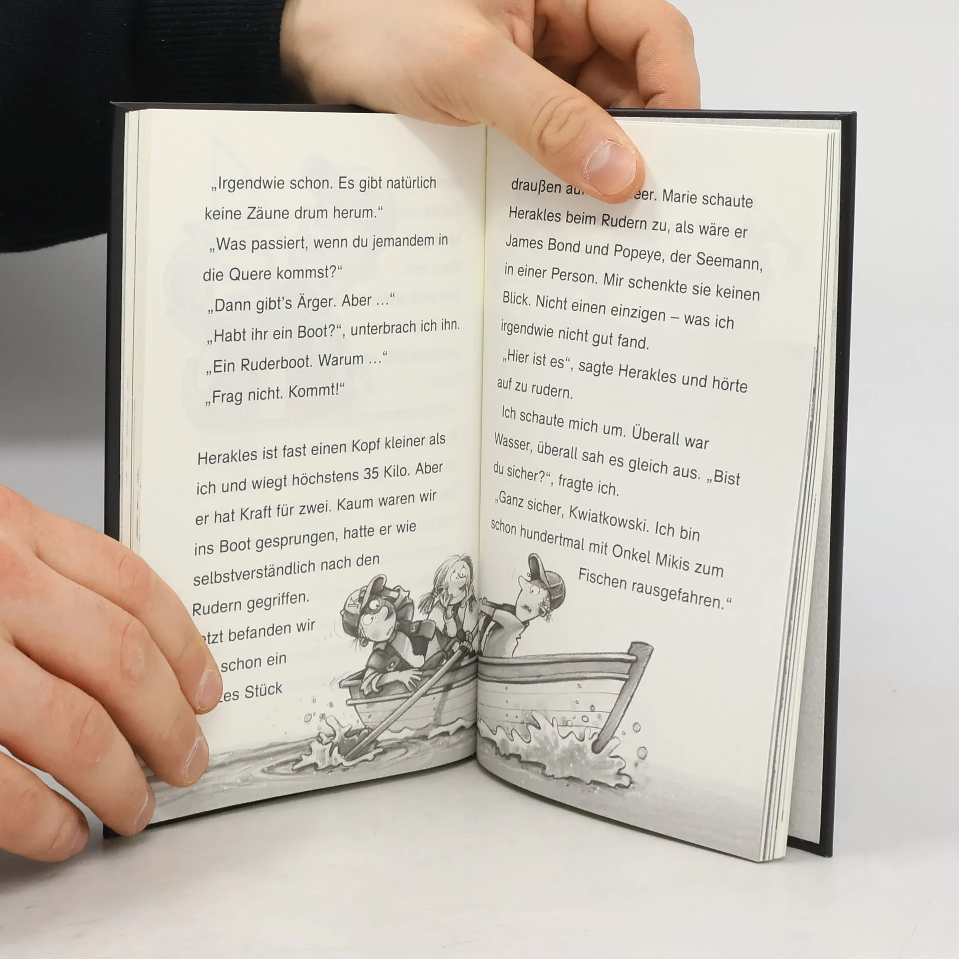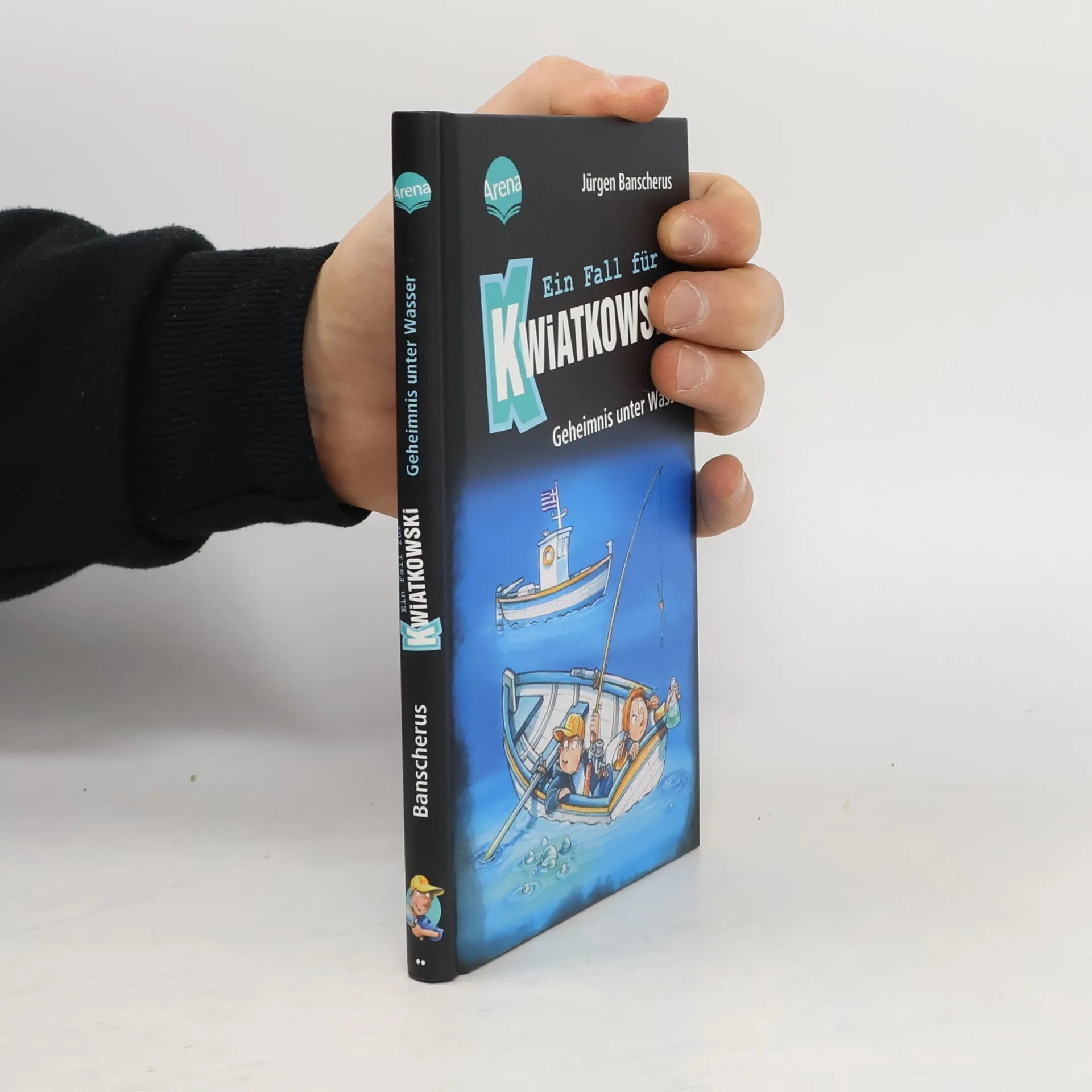 Spannende Krimireihe für Kinder ab 7 Jahren mit witzigen Bildern Urlaub für Kwiatkowski! Der Detektiv verbringt mit seiner alten Freundin Olga und ihrer Nichte Marie die Sommerferien auf Kreta. Doch als sein Kollege Herakles ihn um Hilfe bittet, zögert Kwiatkowski keine Sekunde. Seit Wochen fängt Herakles’ Onkel einfach keine Fische für sein Restaurant. Wenn das so weitergeht, ist er bald pleite! Wohin sind die Fische nur verschwunden? Und wer hat sie vertrieben? Zusammen mit Herakles und Marie beginnt Kwiatkowski eine abenteuerliche Ermittlung auf dem Meer. Bei Privatdetektiv Kwiatkowski bleibt kein Fall ungelöst! Die beliebte Detektiv-Reihe mit kurzen Kapiteln , großer Schrift und witzigen Illustrationen von Ralf Butschkow macht allen Lese- Anfänger*innen Spaß und ist für Erstleser*innen geeignet . Einfallsreich und spannend erzählt von Jürgen Banscherus, bietet Kwiatkowski coolen Lesestoff für Kinder ab 7 Jahren . Gelistet auf Antolin.de Alle Bände der Reihe: Hände hoch! (32) Vorsicht, Kamera! (31) Die kürzeste Entführung der Welt (30) Geheimnis unter Wasser (29) Die Nase der Göttin (28) Milchtüten-Alarm! (27) Sherlocks Pfeife (26) Rache ist Schokotorte (20) Monster, Mond und Mottenpulver (19) Das rosarote Schulgespenst (15) Duell der Detektive (8) Krach im Zirkus Zampano (5) Tore, Tricks und schräge Typen (4) Das blaue Karussell (3) Die Kaugummi-Verschwörung (1)