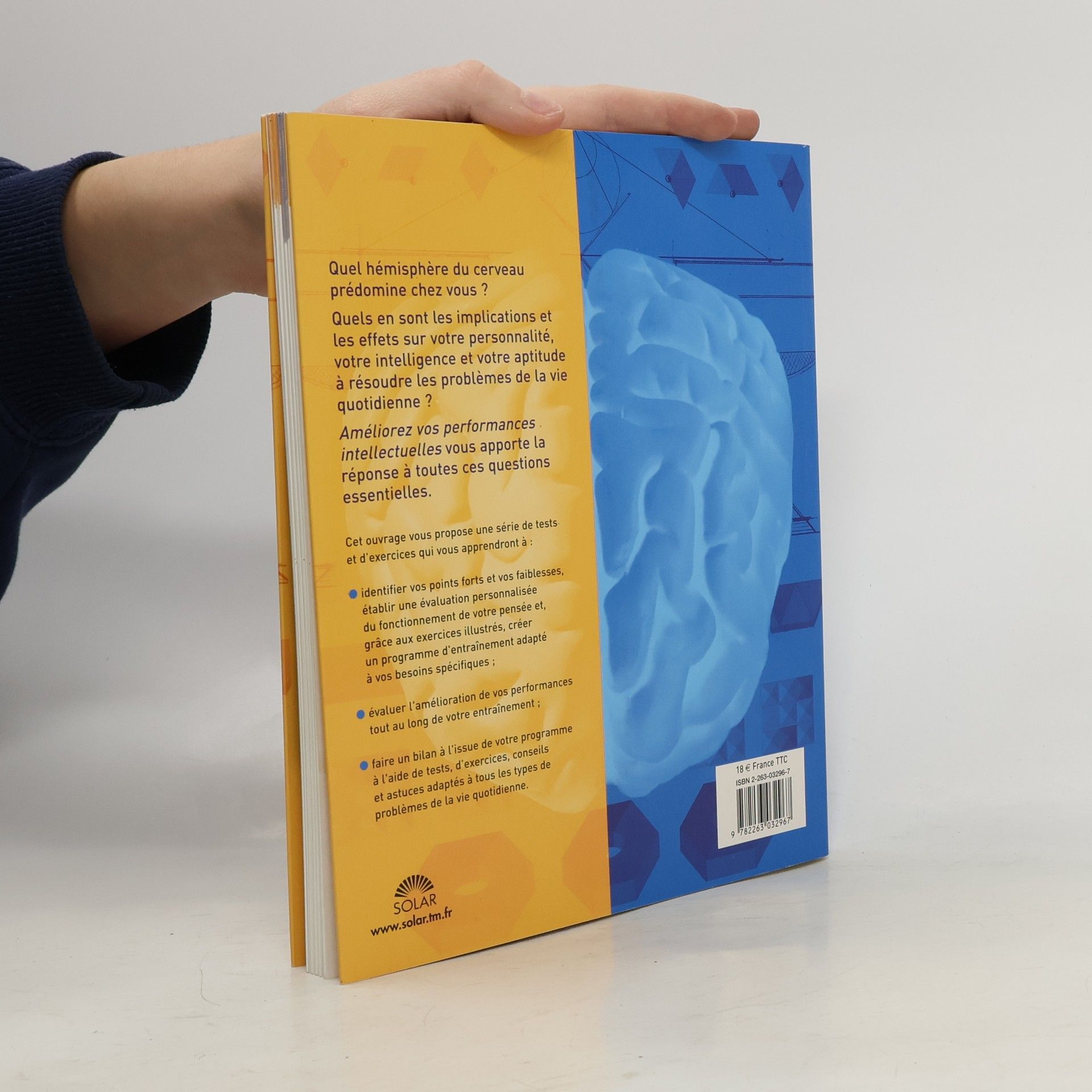 Quel hémisphère du cerveau prédomine chez vous ? Quels en sont les implications et les effets sur votre personnalité, votre intelligence et votre aptitude à résoudre les problèmes de la vie quotidienne ? Améliorez vos performances intellectuelles vous apporte la réponse à toutes ces questions essentielles. Cet ouvrage vous propose une série de tests et d'exercices qui vous apprendront à : identifier vos points forts et vos faiblesses, établir une évaluation personnalisée du fonctionnement de votre pensée et, grâce aux exercices illustrés, créer un programme d'entraînement adapté à vos besoins spécifiques ; évaluer l'amélioration de vos performances tout au long de votre entraînement ; faire un bilan à l'issue de votre programme à l'aide de tests, d'exercices, conseils et astuces adaptés à tous les types de problèmes de la vie quotidienne.