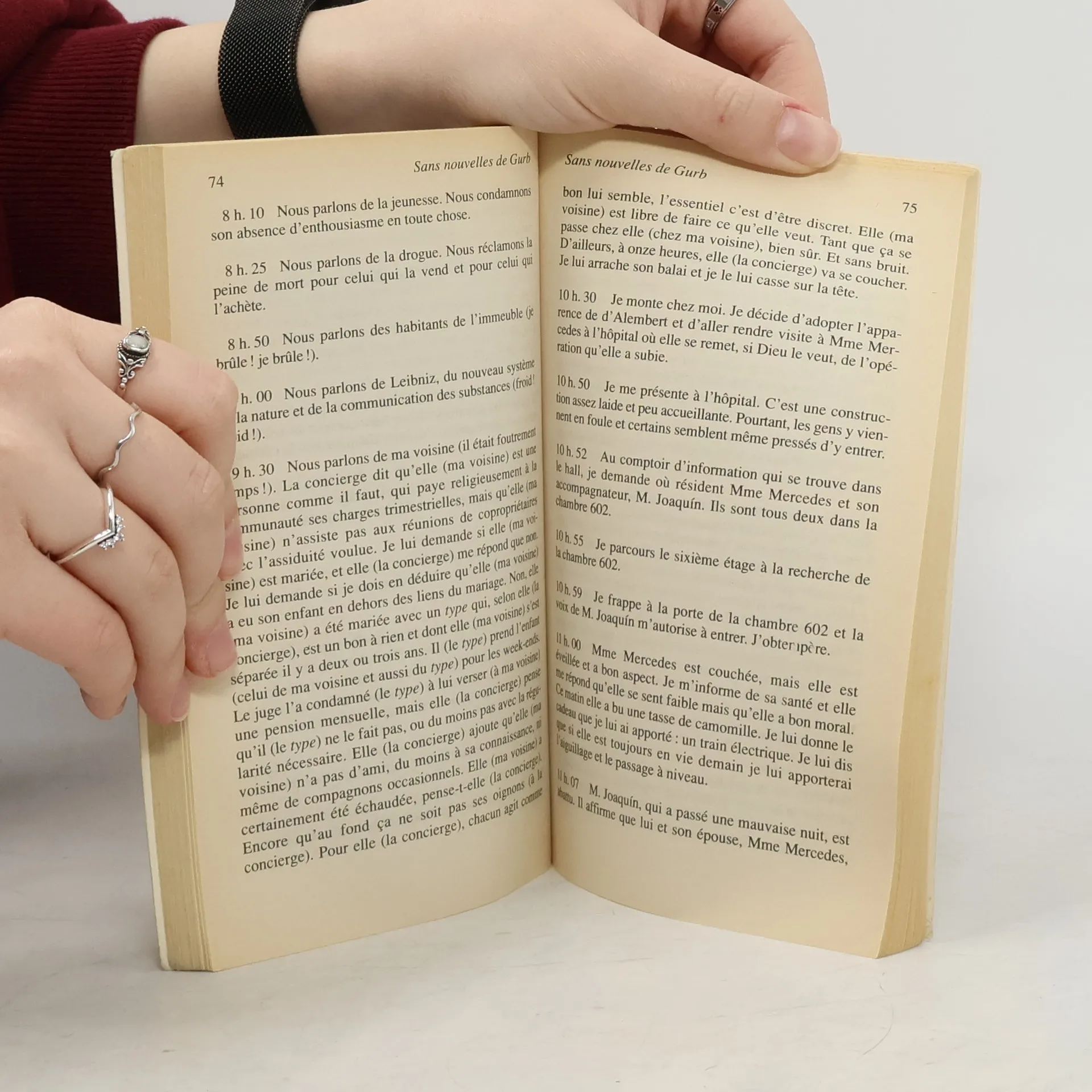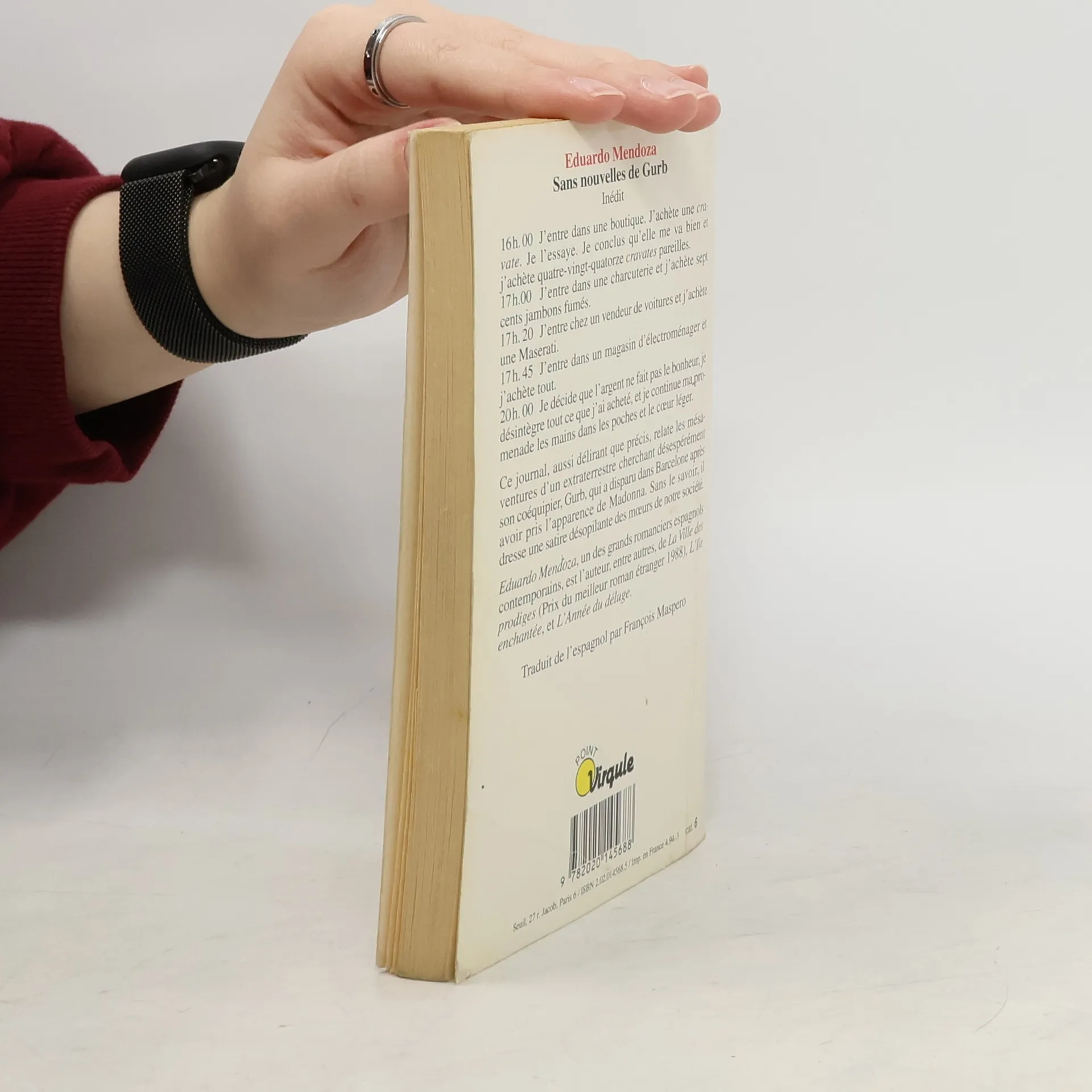 «16h.00 J'entre dans une boutique. J'achète une cravate. Je l'essaye. Je conclus qu'elle me va bien et j'achète quatre-vingt-quatorze cravates pareilles.17h.00 J'entre dans une charcuterie et j'achète sept cents jambons fumés.20h.00 Je décide que l'argent ne fait pas le bonheur, je désintègre tout ce que j'ai acheté, et je continue ma promenade les mains dans les poches et le cœur léger.»Gurb a disparu dans Barcelone, dissimulé sous les traits de Madonna. Précision : Gurb est un extraterrestre. Parti à sa recherche sous une apparence moins voyante, son coéquipier tient scrupuleusement le journal de ses observations. Une satire délirante et désopilante des mœurs de notre société... Analyse: Roman d'humour. Roman de société.