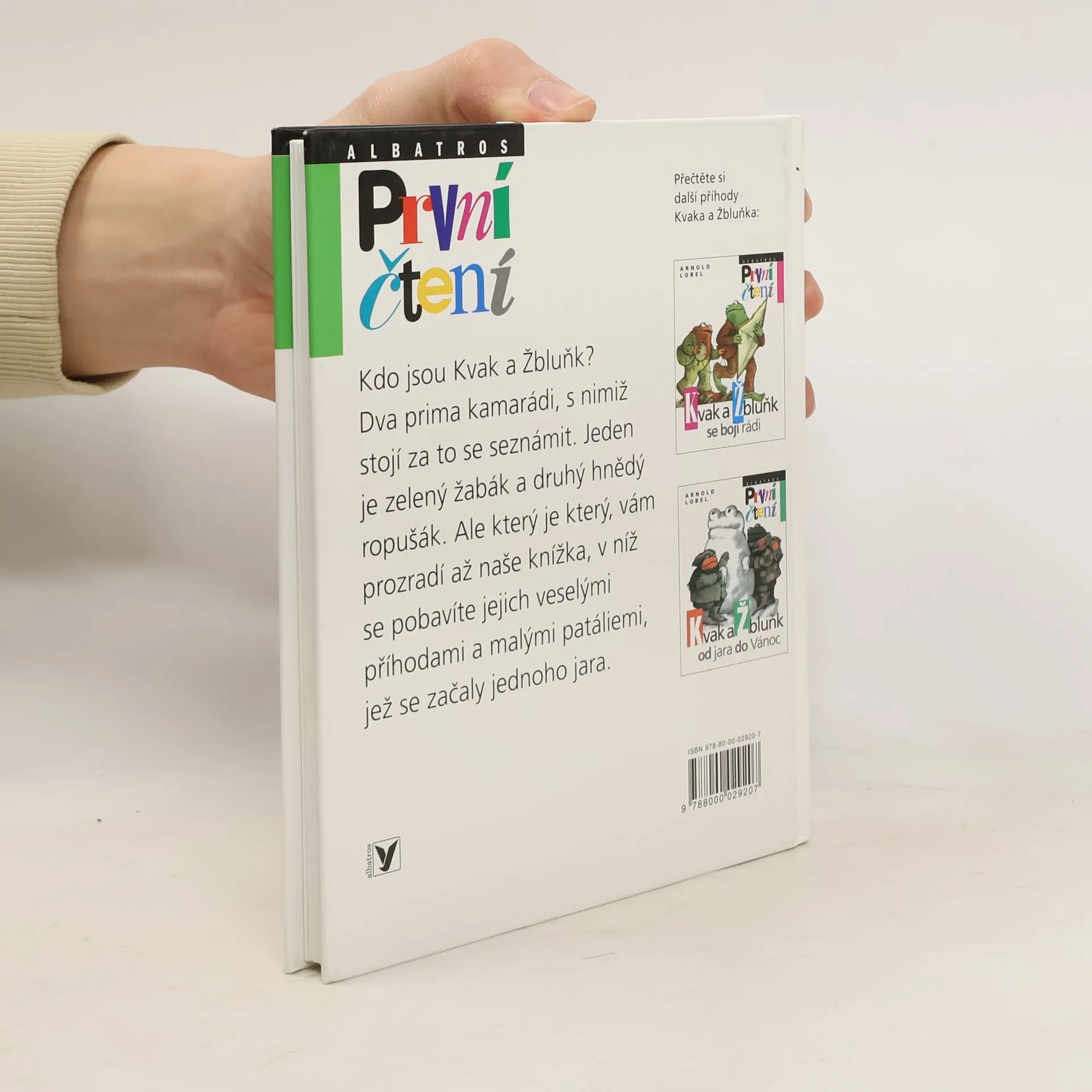 Úsměvné a hřejivé vyprávění o dvou kamarádech, zeleném žabákovi Kvakovi a hnědém ropušákovi Žbluňkovi potěšilo čtenáře nejen v zemi svého vzniku, ale i u nás (včetně dalších pokračování). Kdo by si tedy znovu rád nepřečetl o drobných příhodách a patáliích, které potkaly oba přátele, když se na jaře probudili ze zimního spánku. Třeba právě o tom, jak hledali ztracený knoflík, jak se koupali v řece, jak pěstovali květiny či jak statečně utíkali před draky a obry.
