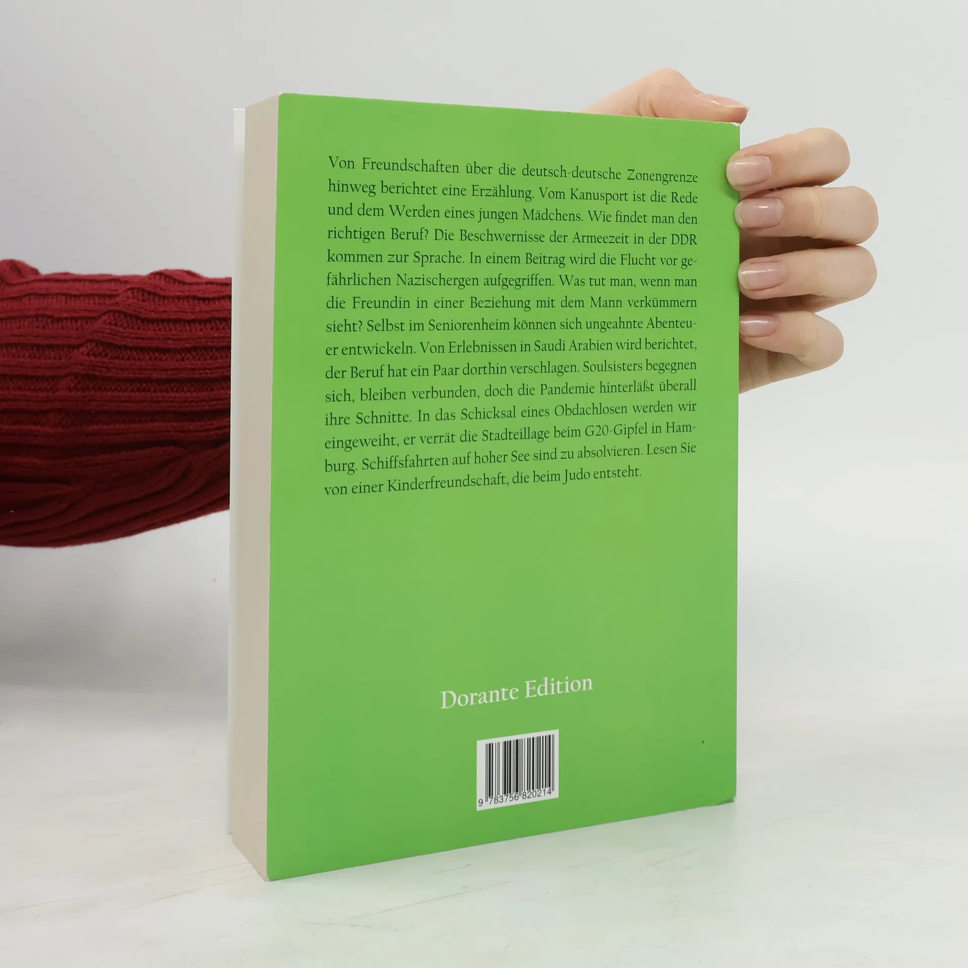 Von Freundschaften über die deutsch-deutsche Zonengrenze hinweg berichtet eine Erzählung. Vom Kanusport ist die Rede und dem Werden eines jungen Mädchens. Wie findet man den richtigen Beruf? Die Beschwernisse der Armeezeit in der DDR kommen zur Sprache. In einem Beitrag wird die Flucht vor gefährlichen Nazischergen aufgegriffen. Was tut man, wenn man die Freundin in einer Beziehung mit dem Mann verkümmern sieht? Selbst im Seniorenheim können sich ungeahnte Abenteuer entwickeln. Von Erlebnissen in Saudi Arabien wird berichtet, der Beruf hat ein Paar dorthin verschlagen. Soulsisters begegnen sich, bleiben verbunden, doch die Pandemie hinterläßt überall ihre Schnitte. In das Schicksal eines Obdachlosen werden wir eingeweiht, er verrät die Stadteillage beim G20-Gipfel in Hamburg. Schiffsfahrten auf hoher See sind zu absolvieren. Lesen Sie von einer Kinderfreundschaft, die beim Judo entsteht.