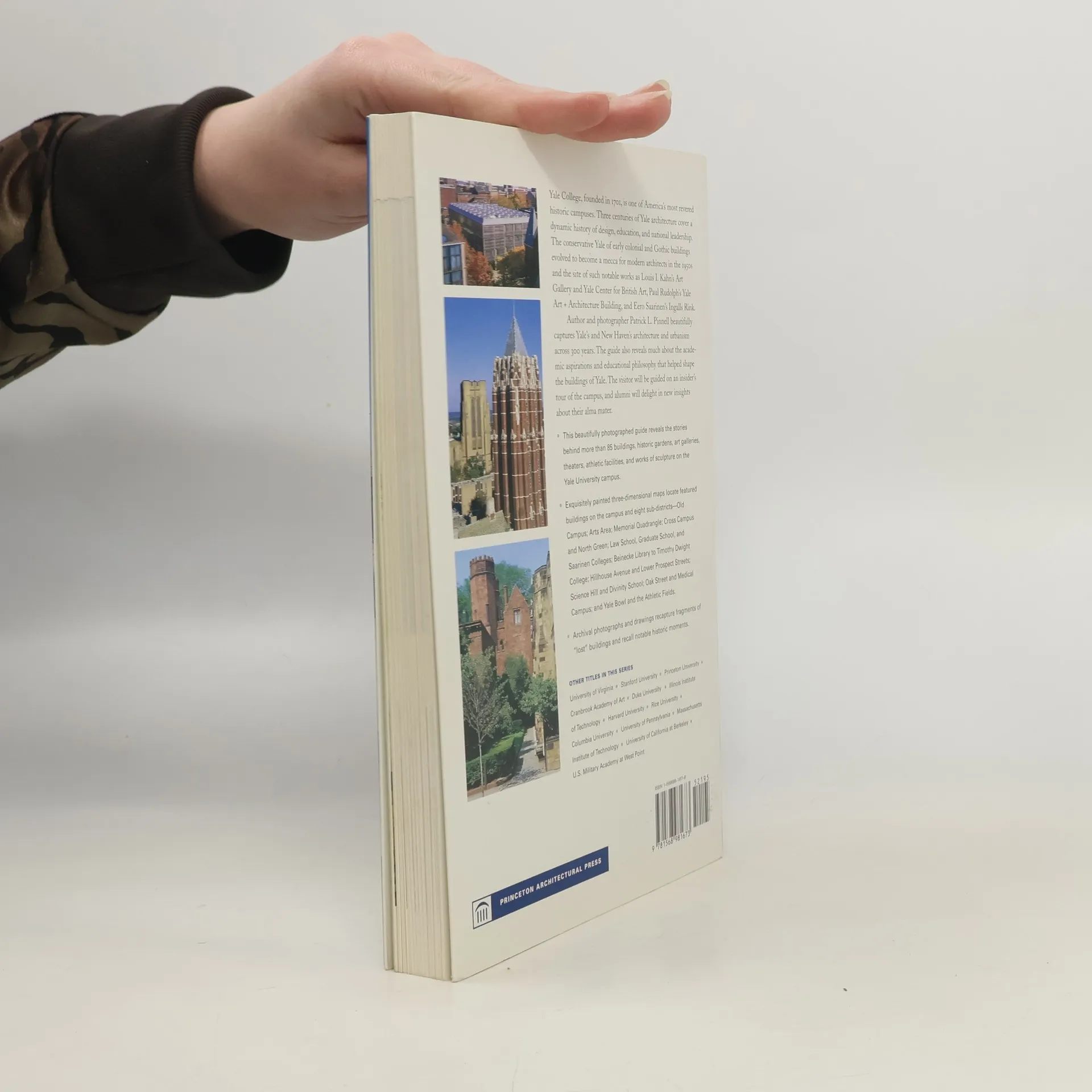 Yale College, founded in 1701, is one of America's most revered historic campuses. Three centuries of Yale architecture cover a dynamic history of design, education, and national leadership. The conservative Yale of early colonial and Gothic buildings evolved to become a mecca for modern architects in the 1950s and the site of such notable works as Louis I. Kahn's Art Gallery and Yale Center for British Art, Paul Rudolph's Yale Art + Architecture Building, and Eero Saarinen's Ingalls Rink. Author and photographer Patrick L. Pinnell beautifully captures Yale's and New Haven's architecture and urbanism across 300 years. The guide also reveals much about the academic aspirations and educational philosophy that helped shape the buildings of Yale. The visitor will be guided on an insider's tour of the campus, and alumni will delight in new insights about their alma mater. This beautifully photographed guide reveals the stories behind more than 85 buildings, historic gardens, art galleries, theaters, athletic facilities, and works of sculpture on the Yale University campus. qExquisitely painted three-dimensional maps locate featured buildings on the campus and eight sub-districts-Old Campus; Arts Area; Memorial Quadrangle; Cross Campus and North Green; Law School, Graduate School, and Saarinen Colleges; Beinecke Library to Timothy Dwight College; Hillhouse Avenue and Lower Prospect Streets; Science Hill and Divinity School; Oak Street and Medical Campus; and Yale Bowl and the Athletic Fields. Archival photographs and drawings recapture fragments of "lost" buildings and recall notable historic moments. In all, this guide is for anyone familiar (or who wants to be) with the treasures of the Yale campus, whether student, alum, prospective student, or architecture buff.