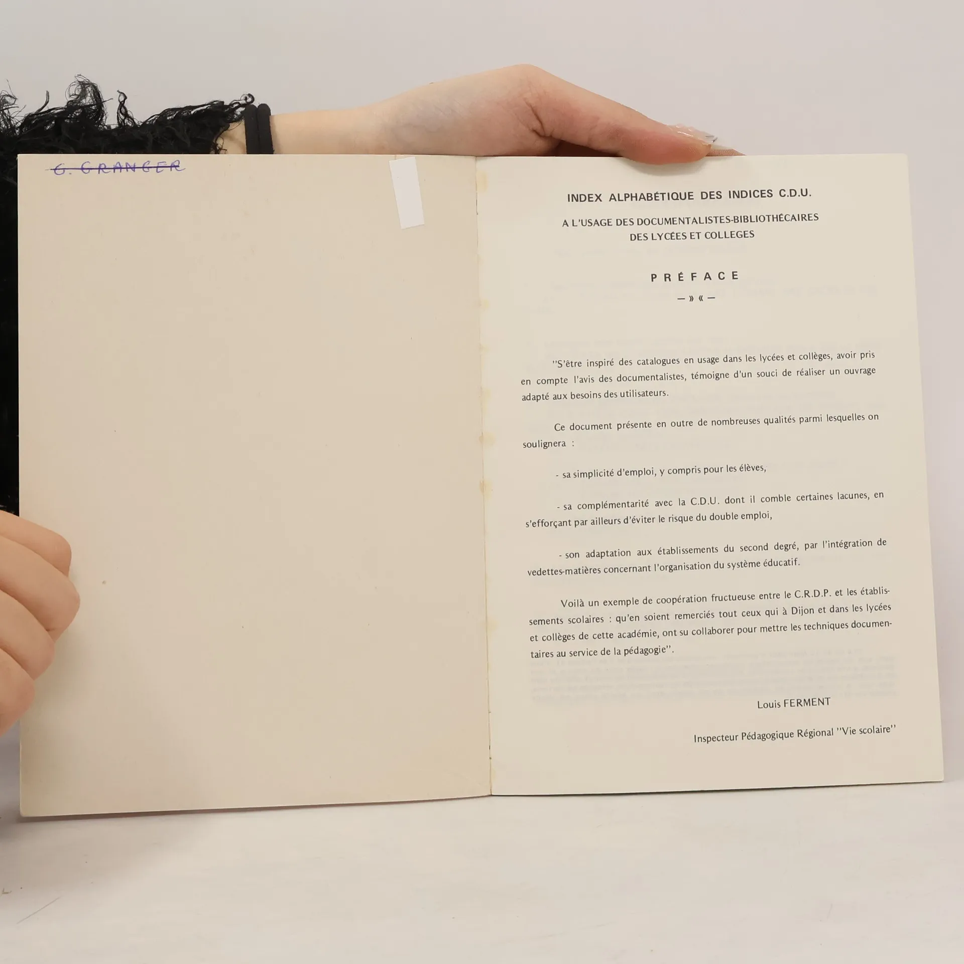 Index alphabétique des indices CDU, Centre régional de documentation pédagogique (Dijon)