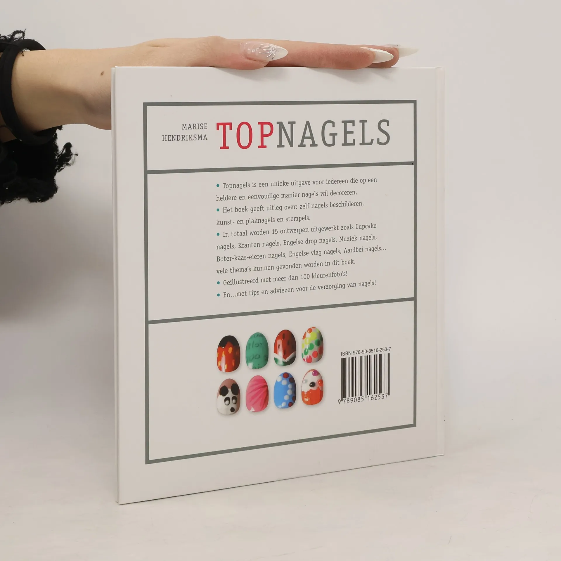 Topnagels is een unieke uitgave voor iedereen die op een helder en eenvoudige manier nagels wil decoreren. Het boek geeft uitleg over: zelf nagels beschilderen, kunstnagels, plaknagels en stempels. In totaal worden 15 ontwerpen uitgewerkt zoals Cupcake nails, Newspaper nails, Engelse drop nagels, Muziek nagels, boter-kaas-eieren nagels, Engelse nagels, aardbei nagels...vele thema's kunnen gevonden worden in dit boek. Geillustreerd met meer dan 100 kleurenfoto's! En...met tips en adviezen voor de verzorging van nagels!