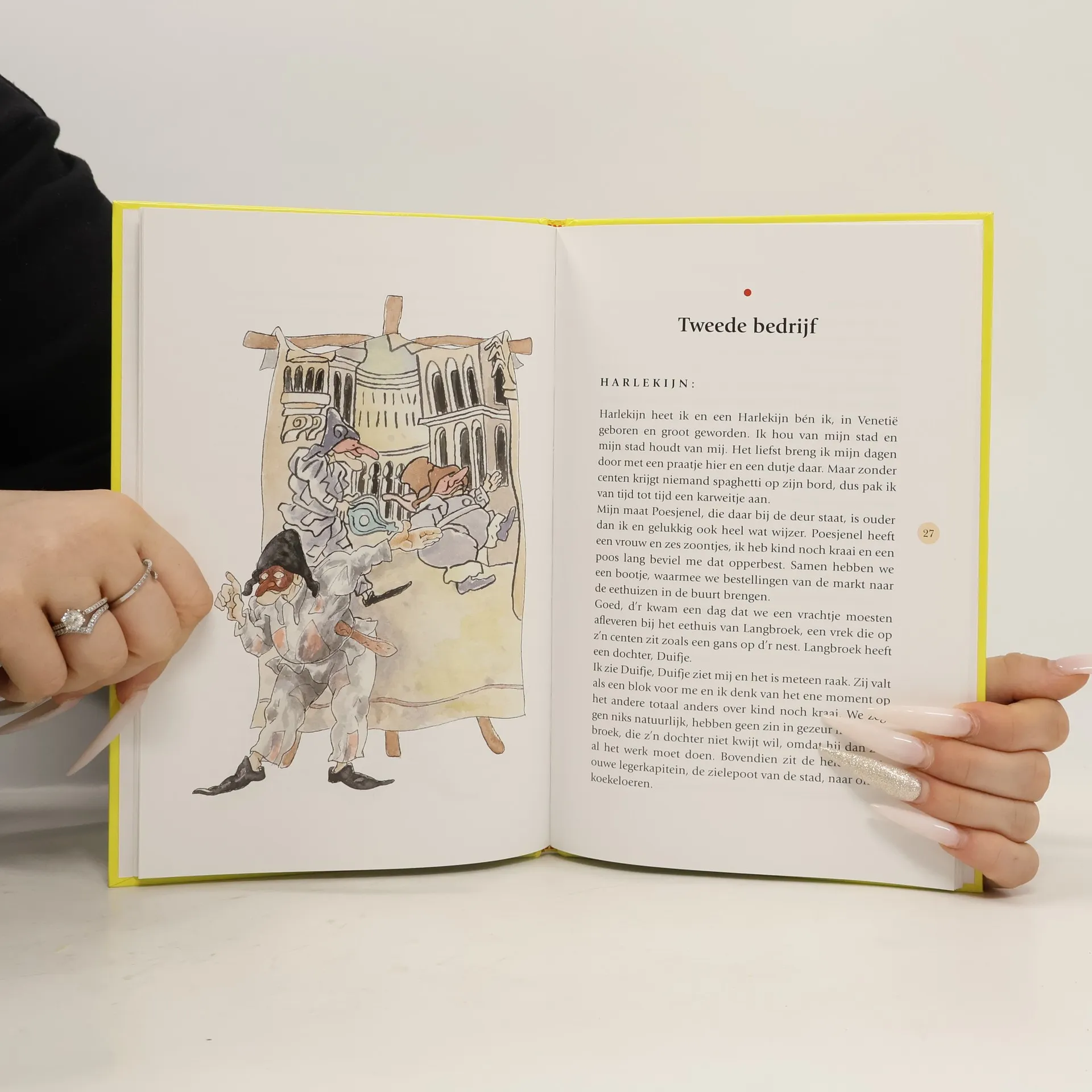 In een eethuis in Venetië komen een kapitein en een harlekijn elke dag langs om te proberen het hart te winnen van serveerster Duifje. Verhaal in drie bedrijven. Vanaf ca. 10 jaar.