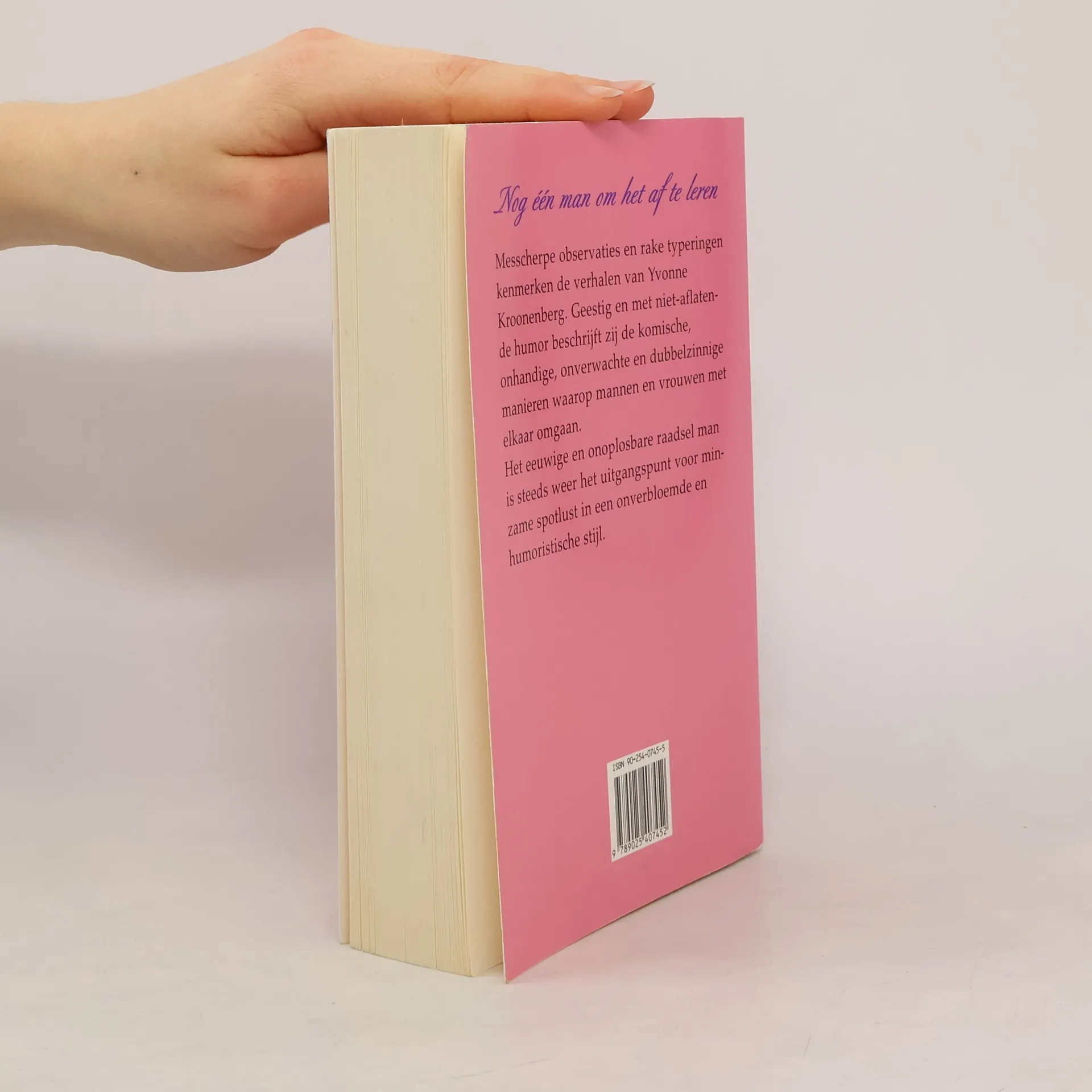 Messcherpe observaties en rake typeringen kenmerken de verhalen van Yvonne Kroonenberg. Geestig en met niet-aflatende humor beschrijft zij de komische, onhandige, onverwachte en dubbelzinnige manier waarop mannen en vrouwen met elkaar omgaan. Het eeuwige en onoplosbare raadsel man is steeds weer het uitgangsunt voor minzame spotlust in een onverbloemde en humoristische stijl.