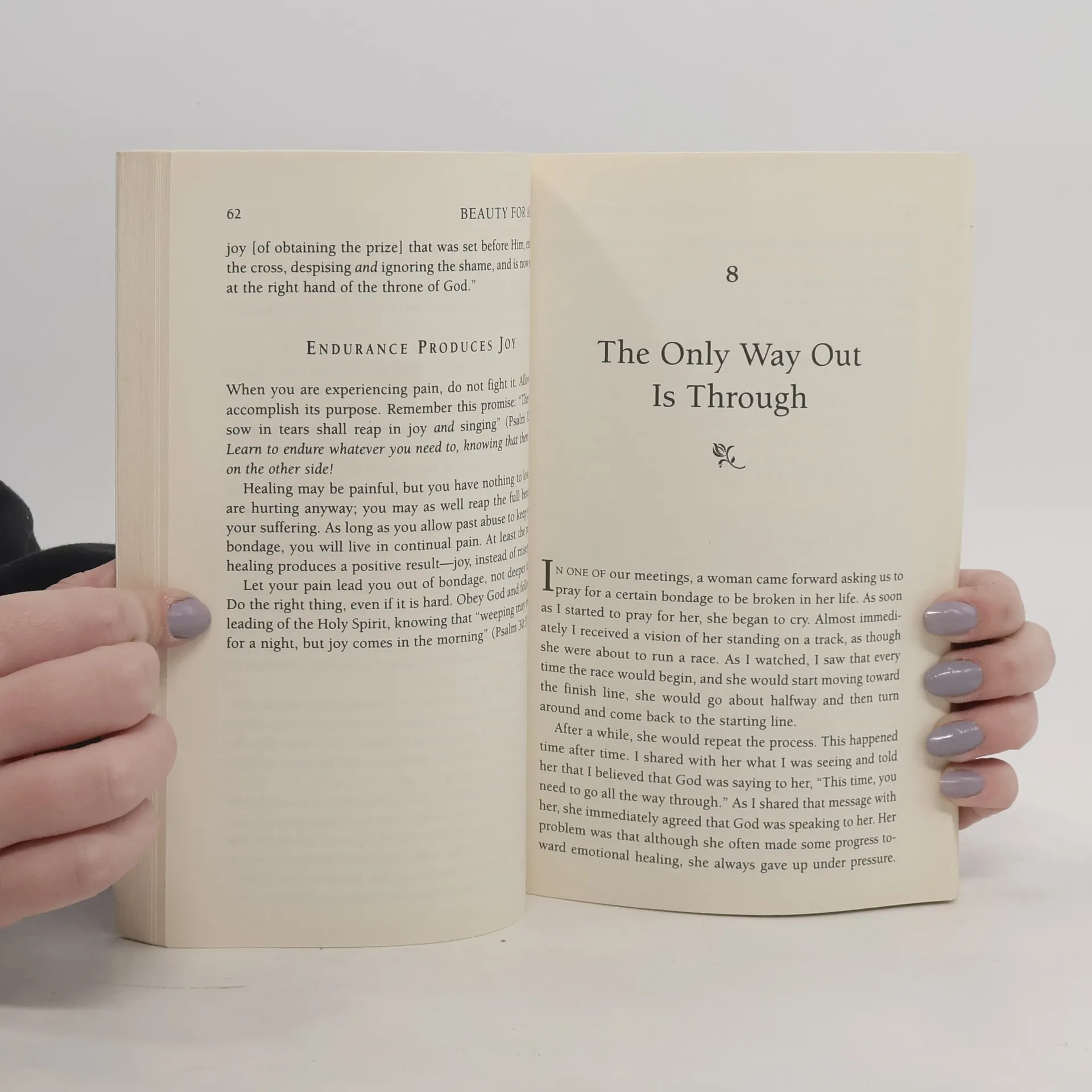 Many people seem to have it all together outwardly, but inside they are a wreck. Their past has broken, crushed, and wounded them inwardly. They can be healed. God has a plan, and Isaiah 61 reveals that the Lord came to heal the brokenhearted. He wants to heal victims of abuse and emotional wounding. Joyce Meyer is a victim of the physical, mental, emotional, and sexual abuse she suffered as a child. Yet today she has a nationwide ministry of emotional healing to others like herself. In Beauty for Ashes she outlines major truths that brought healing in her life and describes how other victims of abuse can also experience God's healing in their lives. Joyce Meyer suffered for thirty-three years the devastating effects of abuse. Now God has exchanged her ashes for beauty and called her to help others allow Him to do the same for them.
