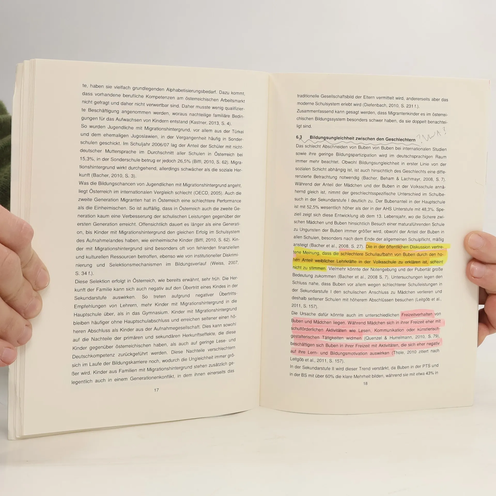 Studienarbeit aus dem Jahr 2015 im Fachbereich Soziologie - Arbeit, Beruf, Ausbildung, Organisation, 1,7, FernUniversität Hagen (Fakultät für Kultur- und Sozialwissenschaften), Individualisierungsphänemene in Arbeits- und Organisationsgesellschaften, Deutsch, Verschiedene Studien der letzten Jahre, wie etwa die PISA-Studien, waren eigentlich ein Glück für das deutsche Bildungssystem und ebenso für das österreichische, da ihre Ergebnisse die Diskussion über Bildungsungleichheiten auf wissenschaftlicher und politischer Ebene wiederbelebt haben. Betrachtet man die österreichische Schulpolitik der letzten Jahrzehnte, so kommen Zweifel auf, ob die Ergebnisse dieser Studien und die daraus entwickelten Maßnahmen gegen Bildungsungleichheit im österreichischen Schulsystem von der Politik auch umgesetzt werden können und vor allem wollen. Die Diskussion über das österreichische Schul- und Bildungssystem ist extrem ideologisch und parteipolitisch geprägt. Bildung ist ein Spielball der politischen Parteien, für politischen Hickhack missbraucht, von parteipolitischen Überlegungen bestimmt und nicht von wissenschaftlichen Überlegungen geleitet. Bildungspolitische Entscheidungen für zukünftige Generationen werden von Menschen gefällt, die ihre politische Position nicht aufgrund ihrer fachlichen Qualifikation, sondern wegen ihres politischen Standvermögens und ihrer politischen Verbindungen und Vernetzungen innehaben. Die in dieser Arbeit aufgezählten Bildungsungleichheiten sind seit vielen Jahren bekannt, ebenso wie Maßnahmen dagegen. Allerdings ist in den letzten Jahrzehnten nichts passiert und wenn, dann waren es nur Alibihandlungen, nicht aber weitreichende und tiefgreifende Änderungen. Die Neue Mittelschule ist das beste Beispiel für diesen Schwindel. Solange das bildungspolitische Denken der Menschen, die für Entscheidungen in der Schulpolitik verantwortlich sind, nicht über den fünfjährigen Zeitraum einer Legislaturperiode hinausge