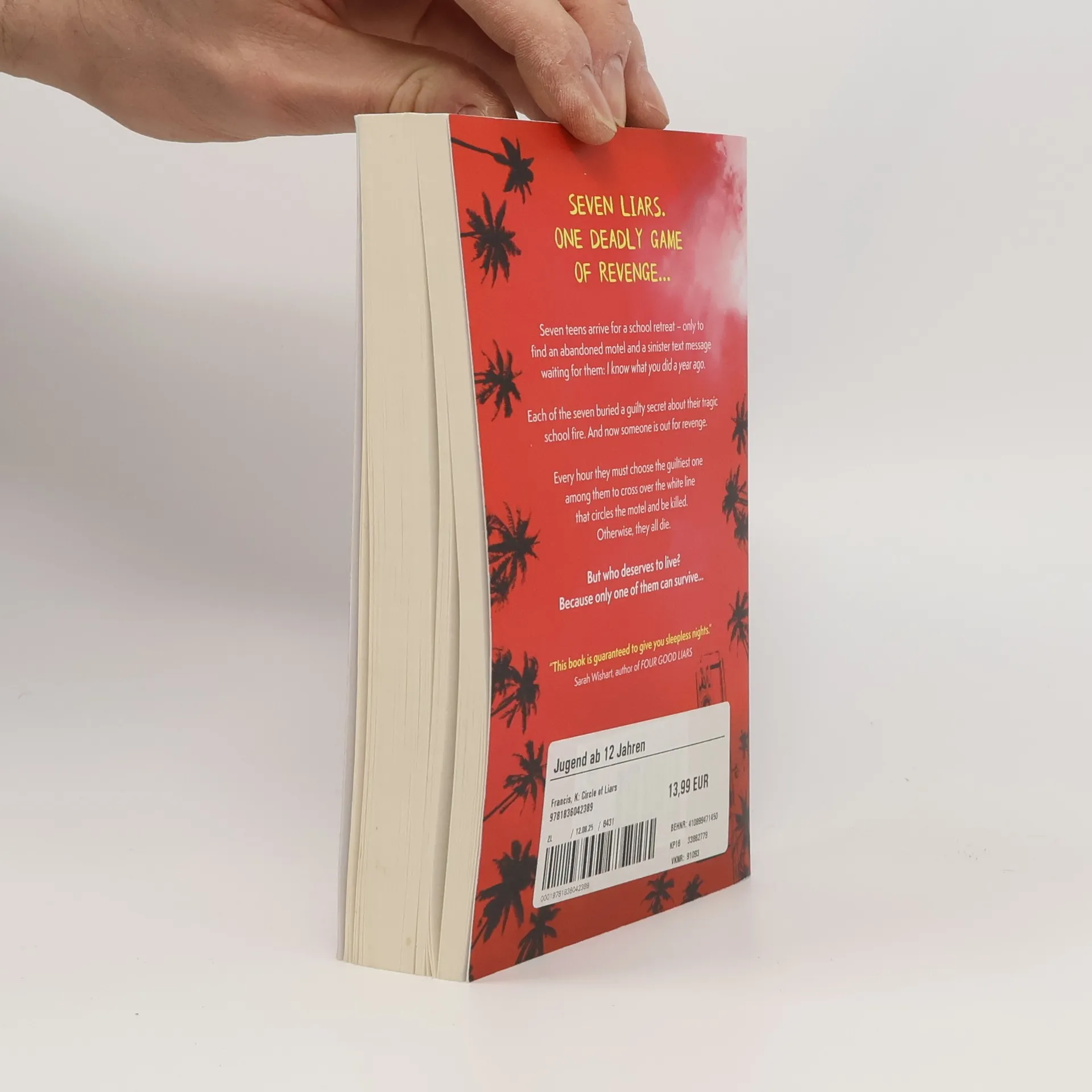The utterly addictive new YA thriller with a twist you'll NEVER guess... A nail-biting summer mystery, for fans of WE WERE LIARS and ONE OF US IS LYING.Seven liars in the circle. Only one can survive...Seven teens arrive for a school retreat - only to find an abandoned motel and a sinister text message waiting for them: I know what you did a year ago.Each of the seven buried a guilty secret about their tragic school fire. And now someone is out for revenge. Every hour they must choose the guiltiest one among them to cross over the white line that circles the motel and be killed. Otherwise, they all die. But who deserves to live, and who to die? Because only one of them can survive...DO YOU DARE ENTER THE CIRCLE OF LIARS? "Incredibly tense and beyond gripping." Ravena Guron, bestselling author of THIS BOOK KILLS"Fast paced, gripping and very, very twisty... This book is guaranteed to give you sleepless nights until you finish it." Sarah Wishart, author of FOUR GOOD LIARS