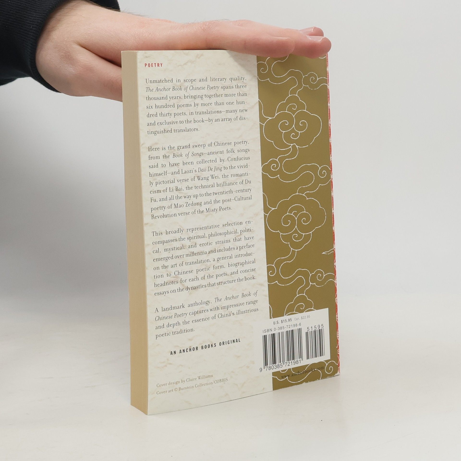 Unmatched in scope and literary quality, this landmark anthology spans three thousand years, bringing together more than six hundred poems by more than one hundred thirty poets, in translations–many new and exclusive to the book–by an array of distinguished translators.Here is the grand sweep of Chinese poetry, from the Book of Songs –ancient folk songs said to have been collected by Confucius himself–and Laozi’s Dao De Jing to the vividly pictorial verse of Wang Wei, the romanticism of Li Po, the technical brilliance of Tu Fu, and all the way up to the twentieth-century poetry of Mao Zedong and the post—Cultural Revolution verse of the Misty poets. Encompassing the spiritual, philosophical, political, mystical, and erotic strains that have emerged over millennia, this broadly representative selection also includes a preface on the art of translation, a general introduction to Chinese poetic form, biographical headnotes for each of the poets, and concise essays on the dynasties that structure the book. The Anchor Book of Chinese Poetry captures with impressive range and depth the essence of China’s illustrious poetic tradition.