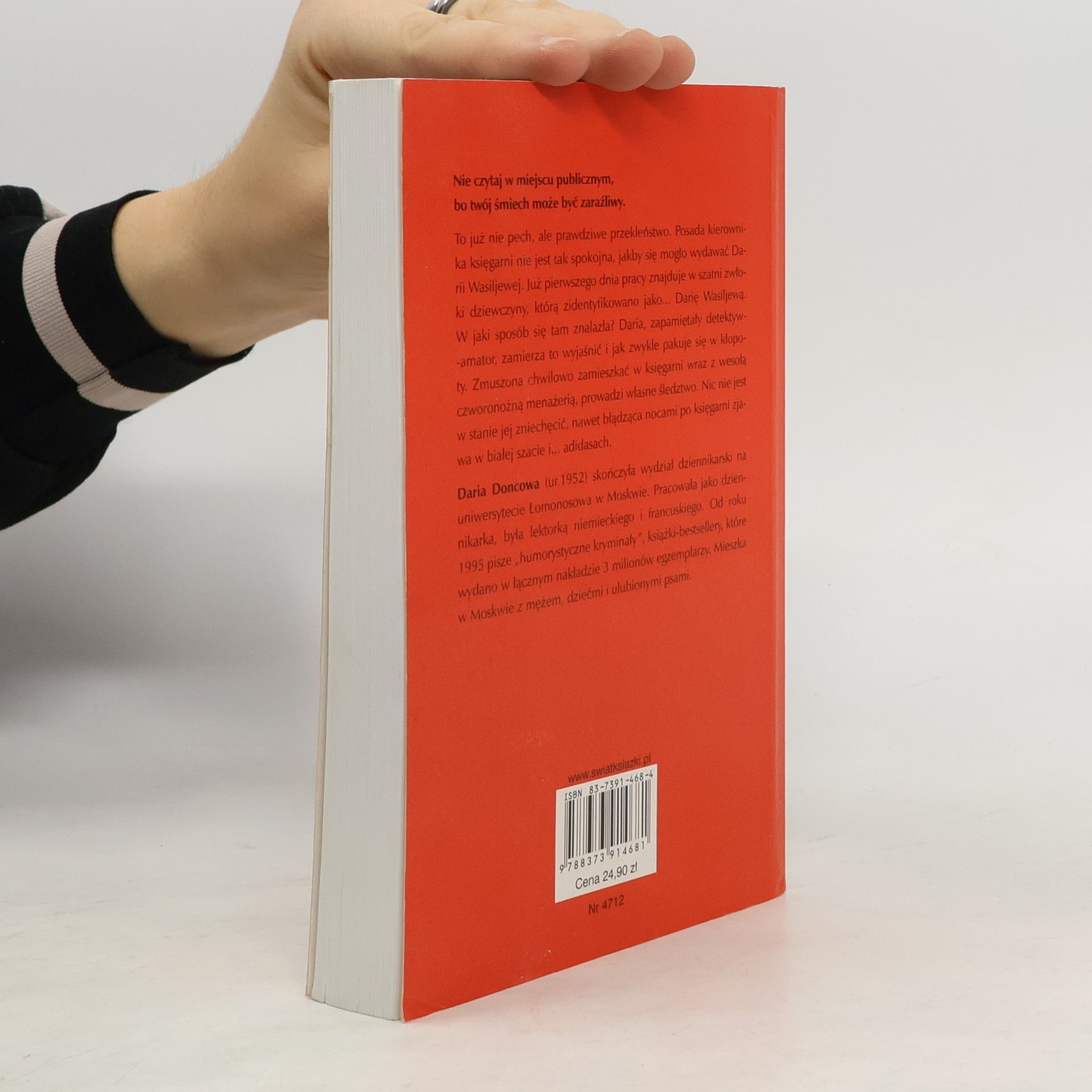 To już nie pech, ale prawdziwe przekleństwo. Posada kierownika księgarni nie jest tak spokojna, jakby się mogło wydawać Darii Wasiljewej. Już pierwszego dnia pracy znajduje w szatni zwłoki dziewczyny, którą zidentyfikowano jako... Darię Wasiljewą. W jaki sposób się tam znalazła? Daria, zapamiętały detektyw-amator, zamierza to wszystko wyjaśnić i jak zwykle pakuje się w kłopoty. Zmuszona chwilowo zamieszkać w księgarni wraz z wesołą czworonożną menażerią, prowadzi własne śledztwo. Nic nie jest w stanie jej zniechęcić, nawet błądząca nocami po księgarni zjawa w białej szacie i... adidasach.