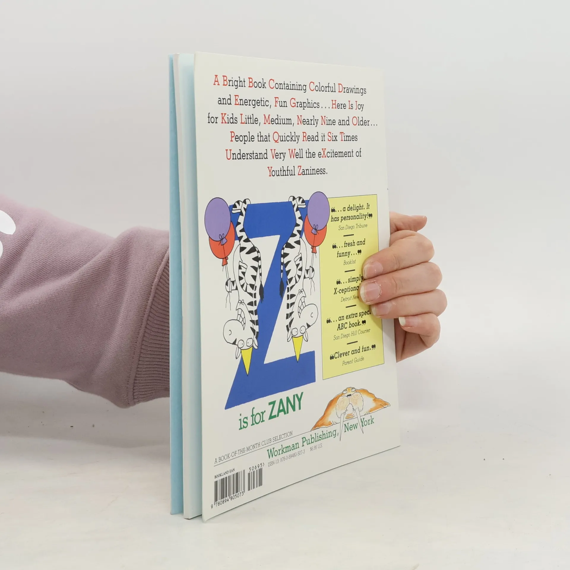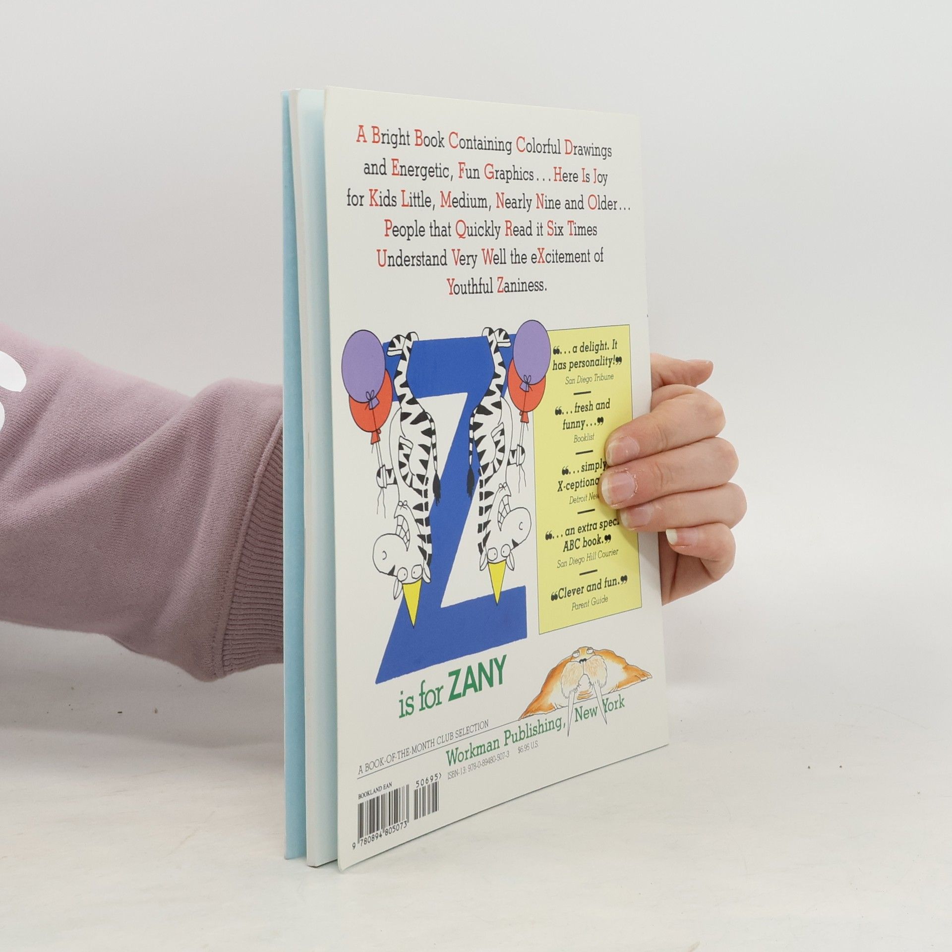 "Because you can't stand another apple, ball, or cup," Sandra Boynton presents an alphabet book of animals and adjectives. An Angry Animal Assortment Along an Arrow starts off the whimsy as a Big Bashful Bear, a Cute Clean Cat, a Tangled Turkey, a Wide Walrus, a Yellow Yak, and others in between romp through the letters A-Z. In classic Boynton style, the irresistible animal characters climb the tall letters, perch on the squat ones, hang from the curves of the round ones. Selection of the Children's Book-of-the-Month Club. Suitable for ages 3-5.