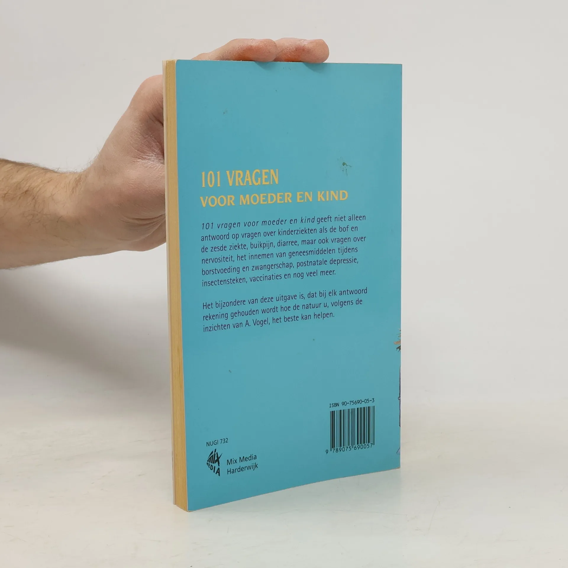 101 vragen voor moeder en kind geeft niet alleen antwoord op vragen over kinderziekten als de bof en de zesde ziekte, buikpijn, diarree, maar ook vragen over nervositeit, het innemen van geneesmiddelen tijdens borstvoeding en zwangerschap, postnatale depressie, insectenbeten, vaccinaties en nog veel meer.Het bijzondere van deze uitgave is, dat bij elk antwoord rekening gehouden wordt hoe de natuur u, volgens de inzichten van A. Vogel, het beste kan helpen.