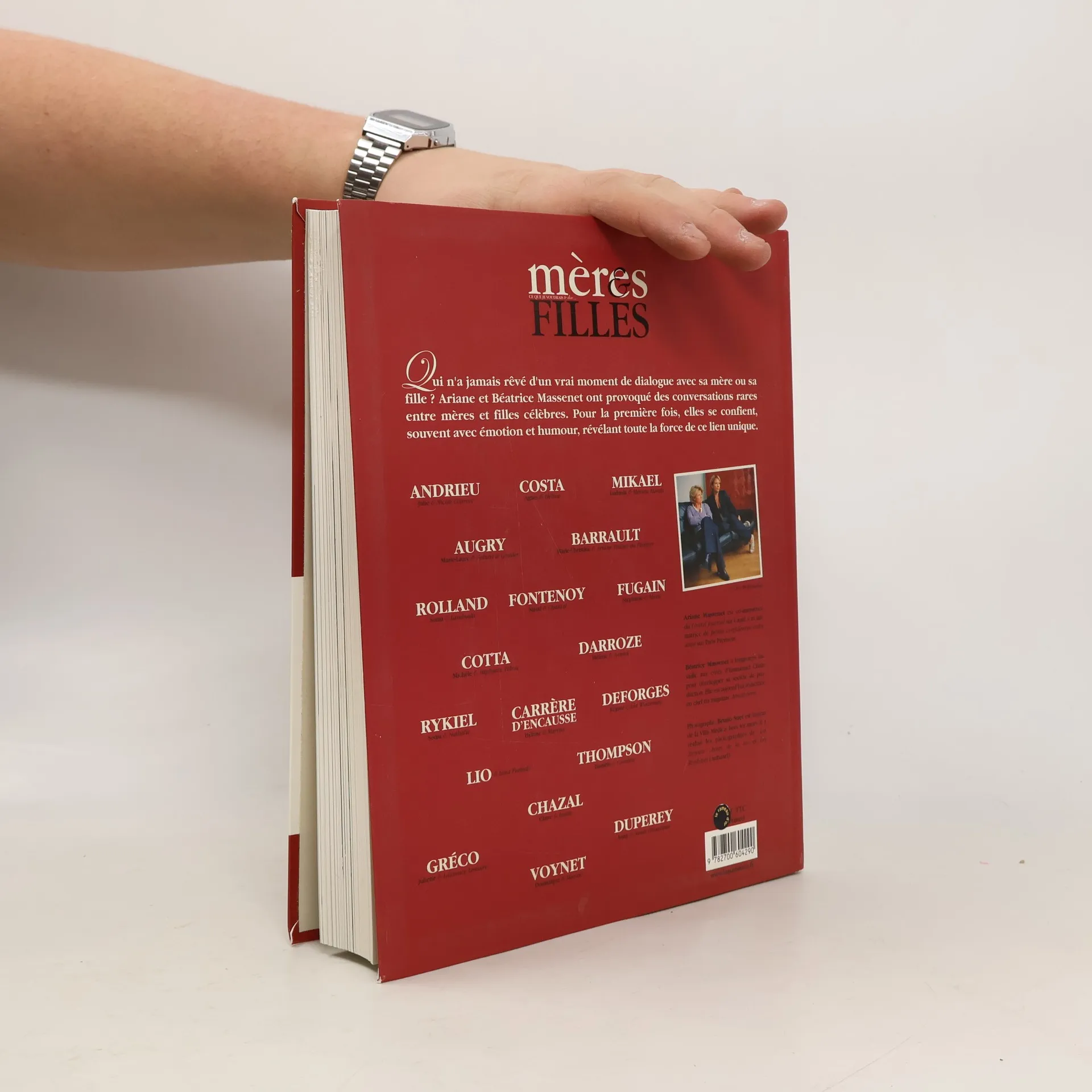Le 1er titre d''une nouvelle collection de recueils de témoignages illustrés sur la familleA une époque où l''on a de plus en plus besoin de repères, de savoir d''où l''on vient pour savoir où l''on va, la famille est sans doute un des atouts les plus précieux dans la construction de soi et dans la réussite personnelle.Ariane et Béatrice Massenet se sont penchées, à travers l''interview de nombreuses personnalités, sur les différents types de liens familiaux ― mère-fille, père-fils, frère-sœur, mère-fils, etc. - afin d''en dégager les spécificités, la force et la beauté propres.Mère et fille, « ce que je voudrais te dire ... », premier titre de cette collection, rassemble une vingtaine de témoignages émouvants et sincères de couples mères-filles dont l''une ou l''autre (parfois les deux) ont connu un destin hors norme, de Marina et Hélène Carrère d''Encausse à Claire Chazal et sa maman en passant par Sonia et Nathalie Rykiel, Juliette et Laurence Gréco ou encore Lio et Lena, sa maman... Ariane et Béatrice Massenet ont ainsi recueilli autant de portraits de relations singulières, rares et profondes, riches de complicité, d''amour et souvent d''humour.Sur le mode d''une conversation à deux informelle et intime sur les racines, familiales et culturelles, sur ce que l''on pense avoir hérité de l''une ou donné à l''autre, mère et fille se répondent, nous dévoilant leur rapport à la réussite professionnelle, aux hommes, à l''argent, aux valeurs morales...Il en ressort un émouvant portrait-mosaïque de ce que sont les relations mère-fille au sein de la famille et, plus largement, un très beau portrait de femmes, qu''elles soient mères ou filles.Portrait subtilement complété par les photographies de Bruno Suet qui a su capter la tendresse, la complicité, la dureté parfois de ces relations magnifiques de passion et de complexité.Nota bene de l''éditeur : Les mères et les filles qu''Ariane et Béatrice Massenet ont choisies ne sont pas simplement connues du grand public. Ce sont toutes des femmes que le thème de la transmission intéresse, de par leur situation personnelle ou professionnelle, parce qu''elles sont issues de familles déracinées, éclatées, parce qu''elles ont changé de milieu socioprofessionnel ou, tout simplement, parce qu''elles avaient envie de cette conversation douce et profonde sur ce lien indéfectible qui unit une mère et sa fille.Liste des portraits réalisé•Claire Chazal et sa mère Josette•Régine Deforges et sa fille Léa Wiazemsky•Hélène et Marina Carrère d''Encausse•Sonia Rolland et sa mère Landrada•Dominique Voynet et sa fille Marine•Sonia Rykiel et sa fille Nathalie•Michèle Cotta et sa fille Stéphanie Tchou•Marie-Christine Barrault et sa fille Ariane Toscan du Plantier•Stéphanie Fugain et sa fille Marie•Juliette Gréco et sa fille Laurence Lemaire•Lio et sa mère Lena Furtado•Hélène Darroze et sa mère Annick•Ludmilla Mickael et sa fille Marina Hands•Julie Andrieu et sa mère Nicole Courcel•Marie-Laure Augry et sa fille Fabienne Gautier•Agnès Costa et sa mère Hélène•Anny Duperey et sa fille Sarah Giraudeau•Maud Fontenoy et sa mère Chantal•Danièle Thompson et sa fille Caroline