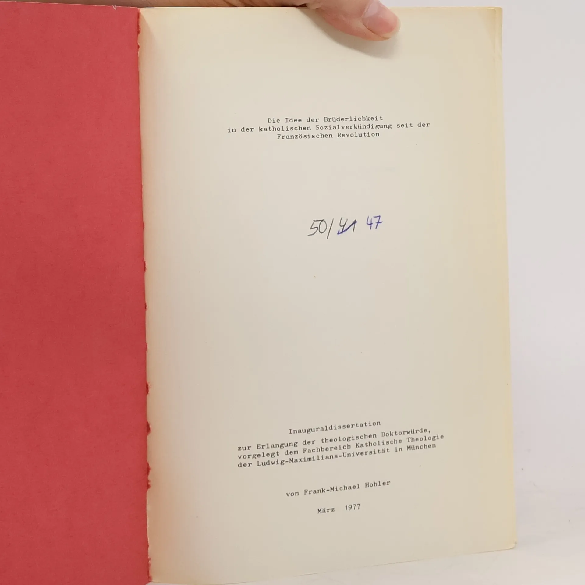 Die Idee der Brüderlichkeit in der katholischen Sozialverkündigung seit der Französischen Revolution, Frank Michael Hohler