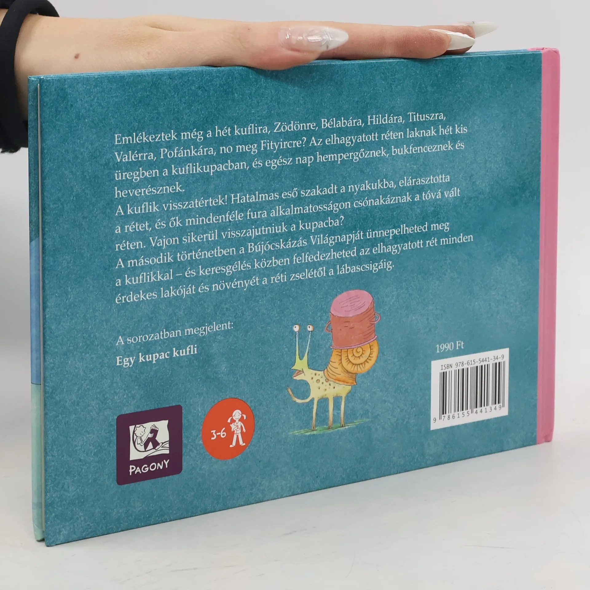 Emlékeztek még a hét kuflira, Zödönre, Bélabára, Hildára, Tituszra, Valérra, Pofánkára, no meg Fityircre? Az elhagyatott réten laknak hét kis üregben a kuflikupacban, és egész nap hempergőznek, bukfenceznek és heverésznek. A kuflik visszatértek! Hatalmas eső szakadt a nyakukba, elárasztotta a rétet, és ők mindenféle fura alkalmatosságon csónakáznak a tóvá vált réten. Vajon sikerül visszajutniuk a kupacba? A második történetben a Bújócskázás Világnapját ünnepelheted meg a kuflikkal – és keresgélés közben felfedezheted az elhagyatott rét minden érdekes lakóját és növényét a réti zselétől a lábascsigáig.