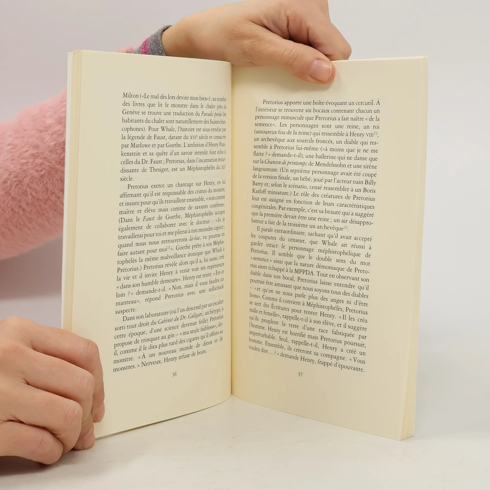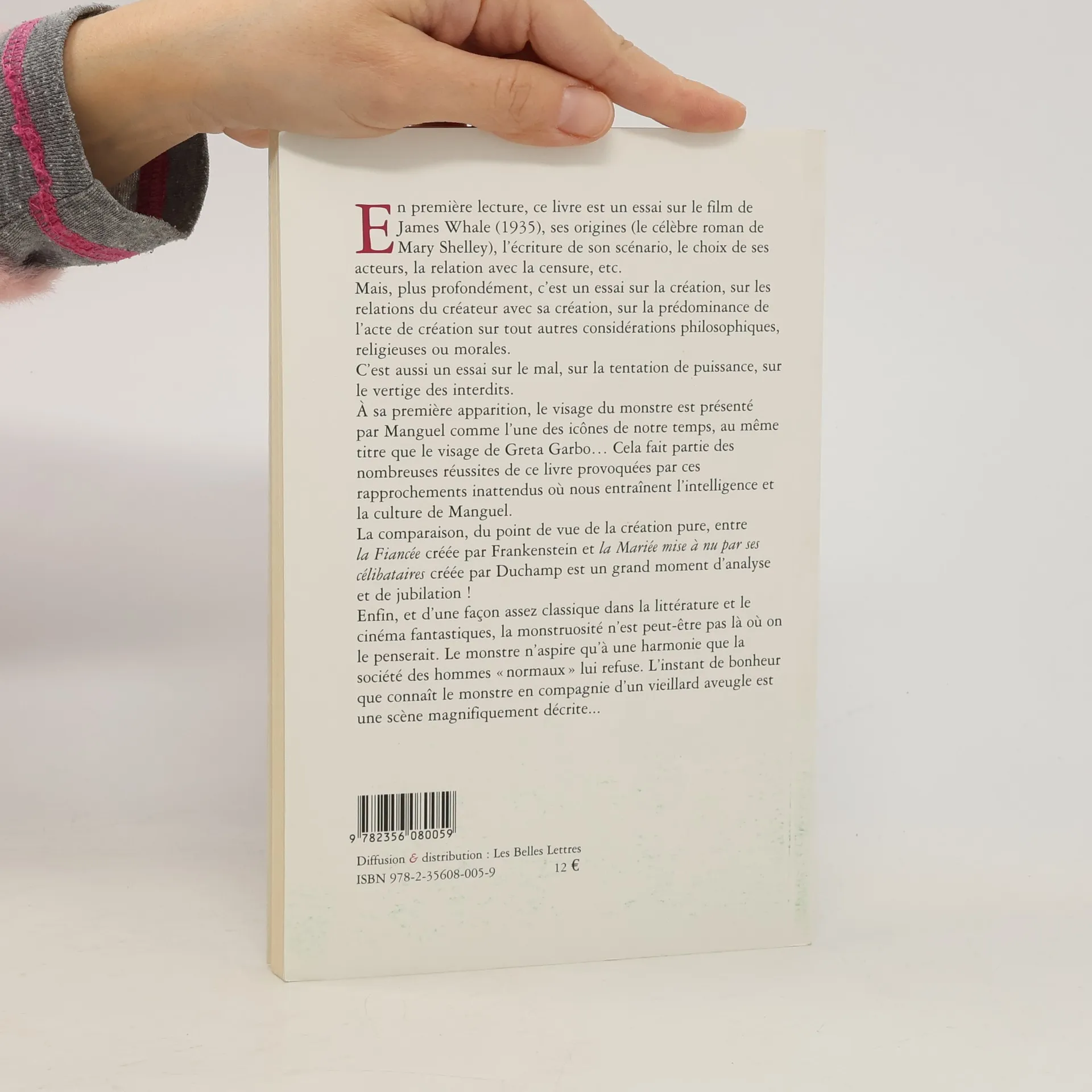 En première lecture, ce livre est un essai sur le film de James Whale (1935), ses origines (le célèbre roman de Mary Shelley), l'écriture de son scénario, le choix de ses acteurs, la relation avec la censure, etc. Mais, plus profondément, c'est un essai sur la création, sur les relations du créateur avec sa création, sur la prédominance de l'acte de création sur tout autres considérations philosophiques, religieuses ou morales. C'est aussi un essai sur le mal, sur la tentation de puissance, sur le vertige des interdits. A sa première apparition, le visage du monstre est présenté par Manguel comme l'une des icônes de notre temps, au même titre que le visage de Greta Garbo... Cela fait partie des nombreuses réussites de ce livre provoquées par ces rapprochements inattendus où nous entraînent l'intelligence et la culture de Manguel. La comparaison, du point de vue de la création pure, entre la Fiancée créée par Frankenstein et la Mariée mise à nu par ses célibataires créée par Duchamp est un grand moment d'analyse et de jubilation ! Enfin, et d'une façon assez classique dans la littérature et le cinéma fantastiques, la monstruosité n'est peut-être pas là où on le penserait. Le monstre n'aspire qu'à une harmonie que la société des hommes " normaux " lui refuse. L'instant de bonheur que connaît le monstre en compagnie d'un vieillard aveugle est une scène magnifiquement décrite...