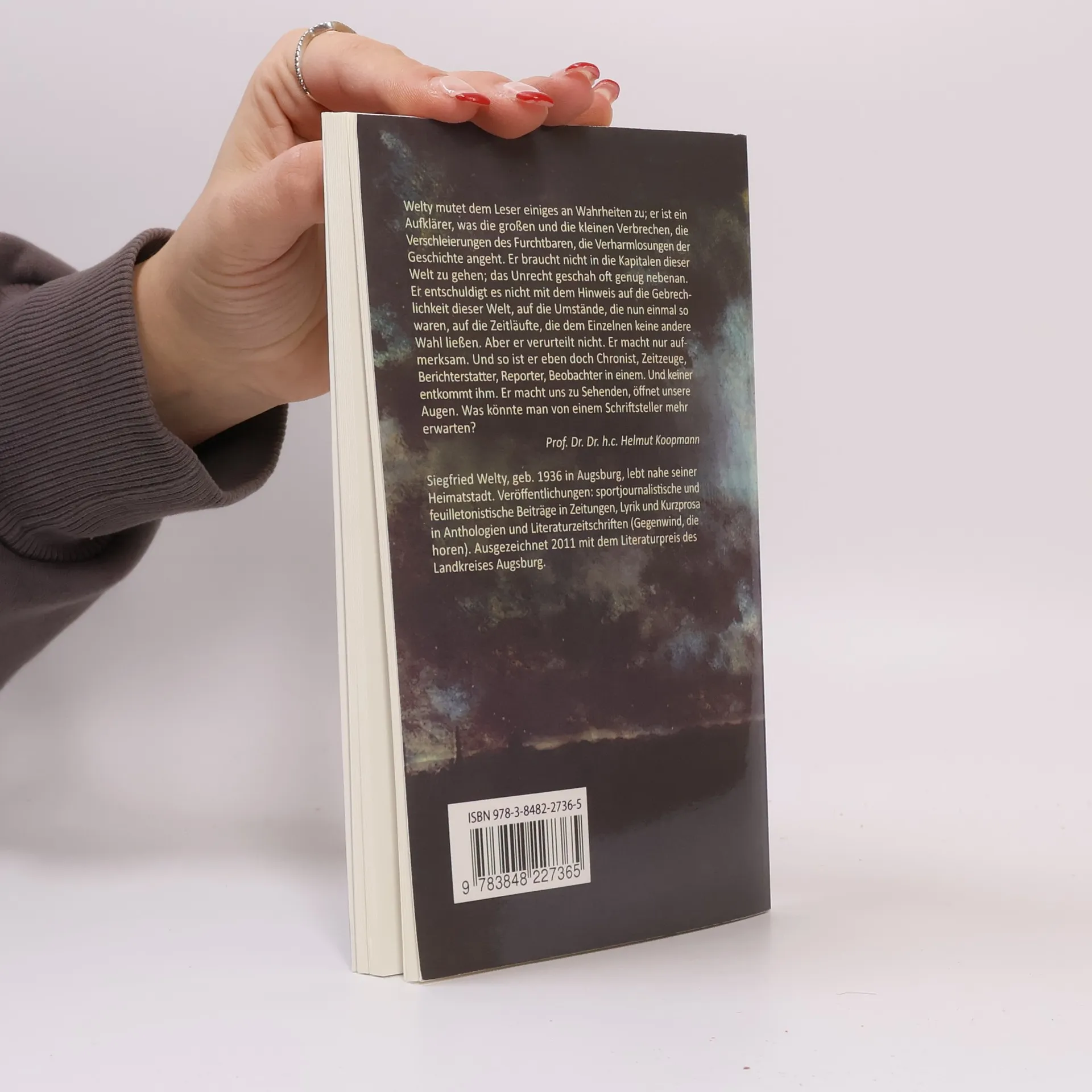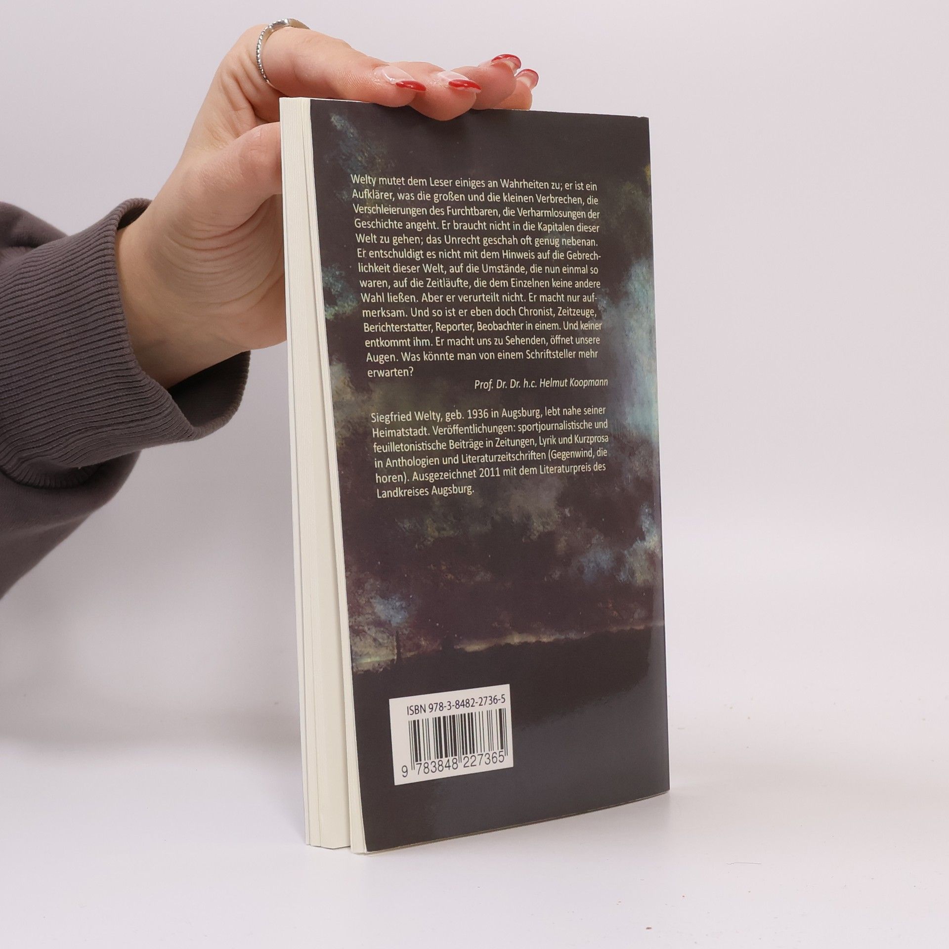 Welty mutet dem Leser einiges an Wahrheiten zu; er ist ein Aufklärer, was die großen und die kleinen Verbrechen, die Verschleierungen des Furchtbaren, die Verharmlosungen der Geschichte angeht. Er braucht nicht in die Kapitalen dieser Welt zu gehen; das Unrecht geschah oft genug nebenan. Er entschuldigt es nicht mit dem Hinweis auf die Gebrechlichkeit dieser Welt, auf die Umstände, die nun einmal so waren, auf die Zeitläufte, die dem Einzelnen keine andere Wahl ließen. Aber er verurteilt nicht. Er macht nur aufmerksam. Und so ist er eben doch Chronist, Zeitzeuge, Berichterstatter, Reporter, Beobachter in einem. Und keiner entkommt ihm. Er macht uns zu Sehenden, öffnet unsere Augen. Was könnte man von einem Schriftsteller mehr erwarten? Prof. Dr. Dr. h.c. Helmut Koopmann