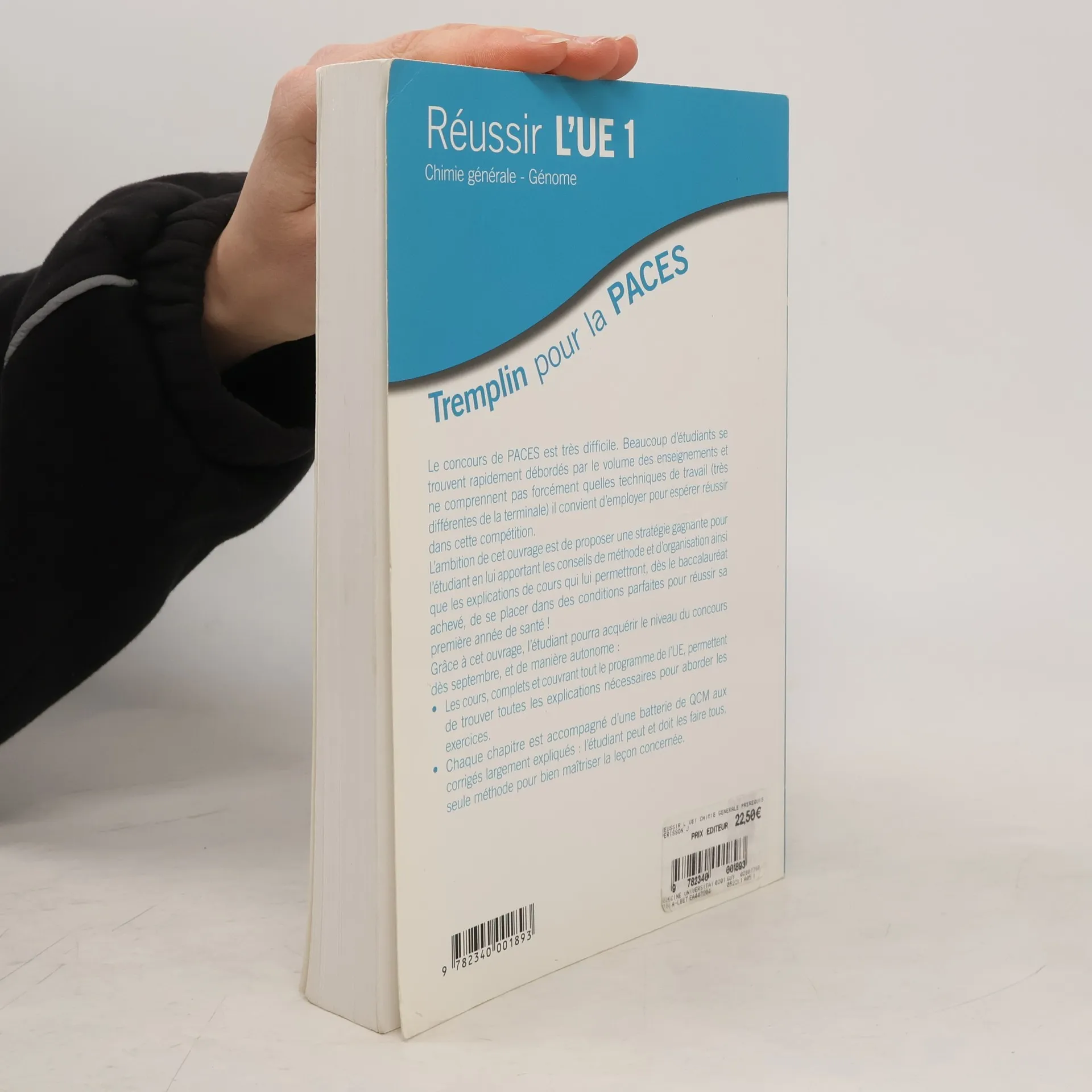 Le concours de PACES est très difficile. Beaucoup d'étudiants se trouvent rapidement débordés par le volume des enseignements et ne comprennent pas forcément quelles techniques de travail (très différentes de la terminale) il convient d'employer pour espérer réussir dans cette compétition. L'ambition de cet ouvrage est de proposer une stratégie gagnante pour l'étudiant en lui apportant les conseils de méthode et d'organisation ainsi que les explications de cours qui lui permettront, dès le baccalauréat achevé, de se placer dans des conditions parfaites pour réussir sa première année de santé ! Grâce à cet ouvrage, l'étudiant pourra acquérir le niveau du concours dès septembre, et de manière autonome : Les cours, complets et couvrant tout le programme de l'UE, permettent de trouver toutes les explications nécessaires pour aborder les exercices. Chaque chapitre est accompagné d'une batterie de QCM aux corrigés largement expliqués : l'étudiant peut et doit les faire tous, seule méthode pour bien maîtriser la leçon concernée.