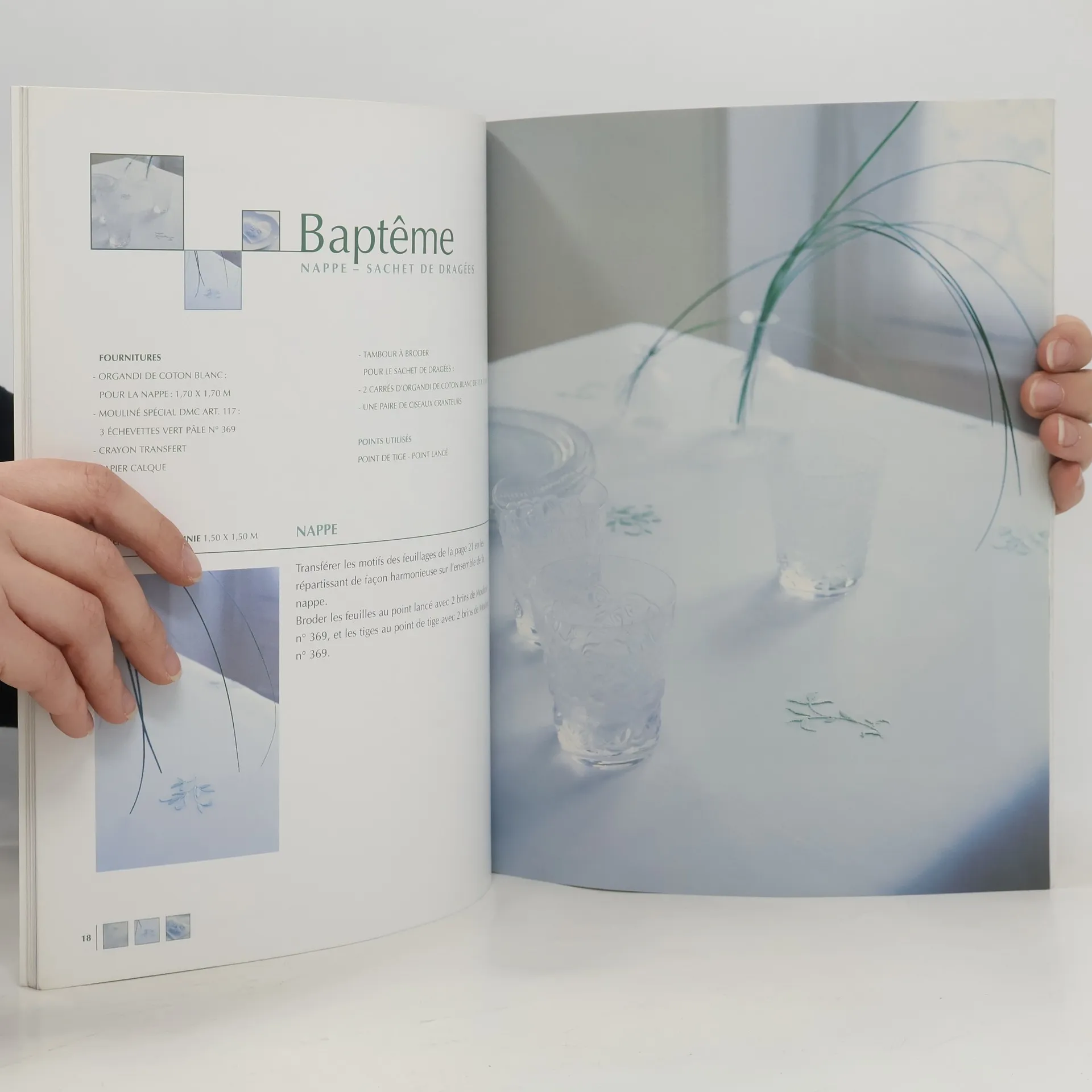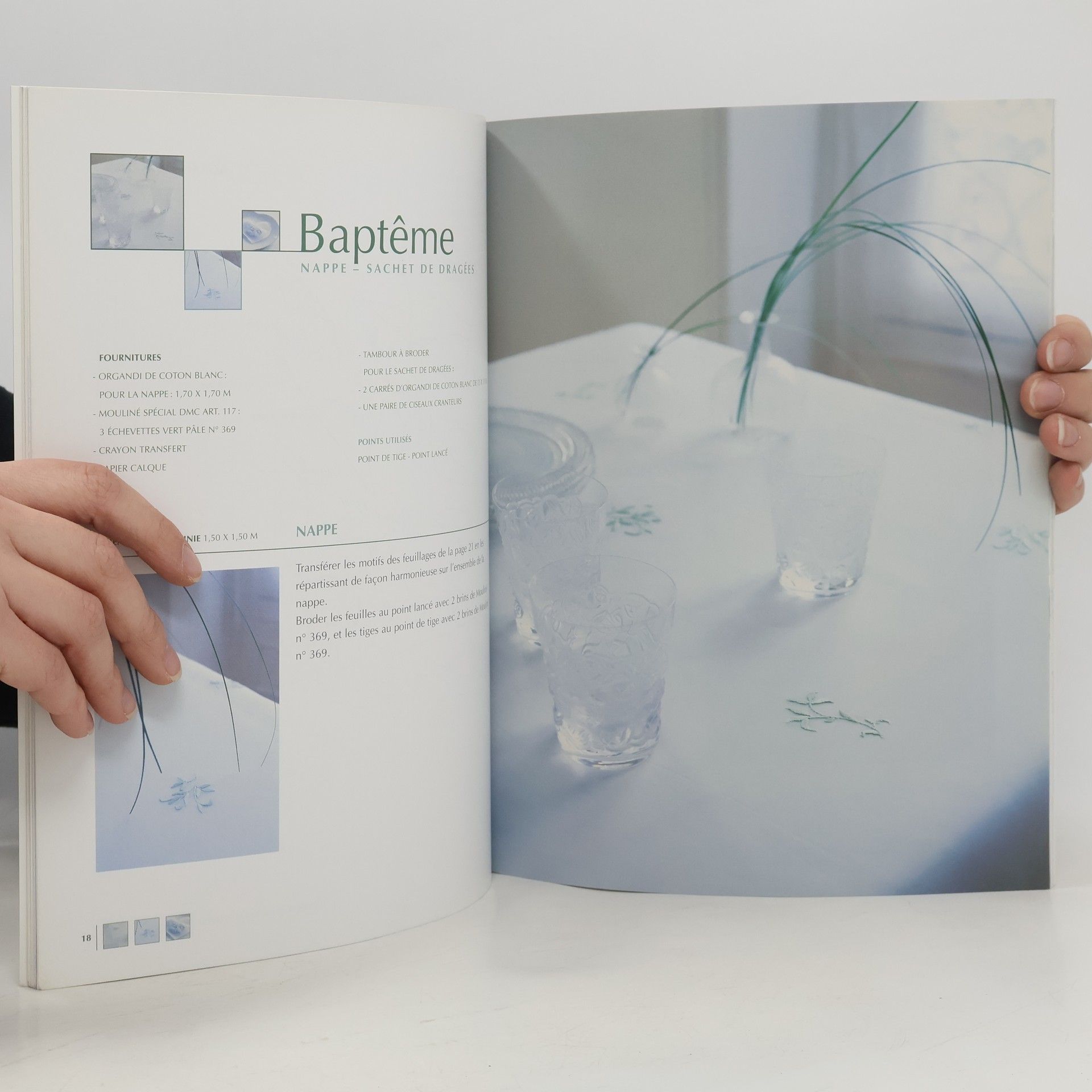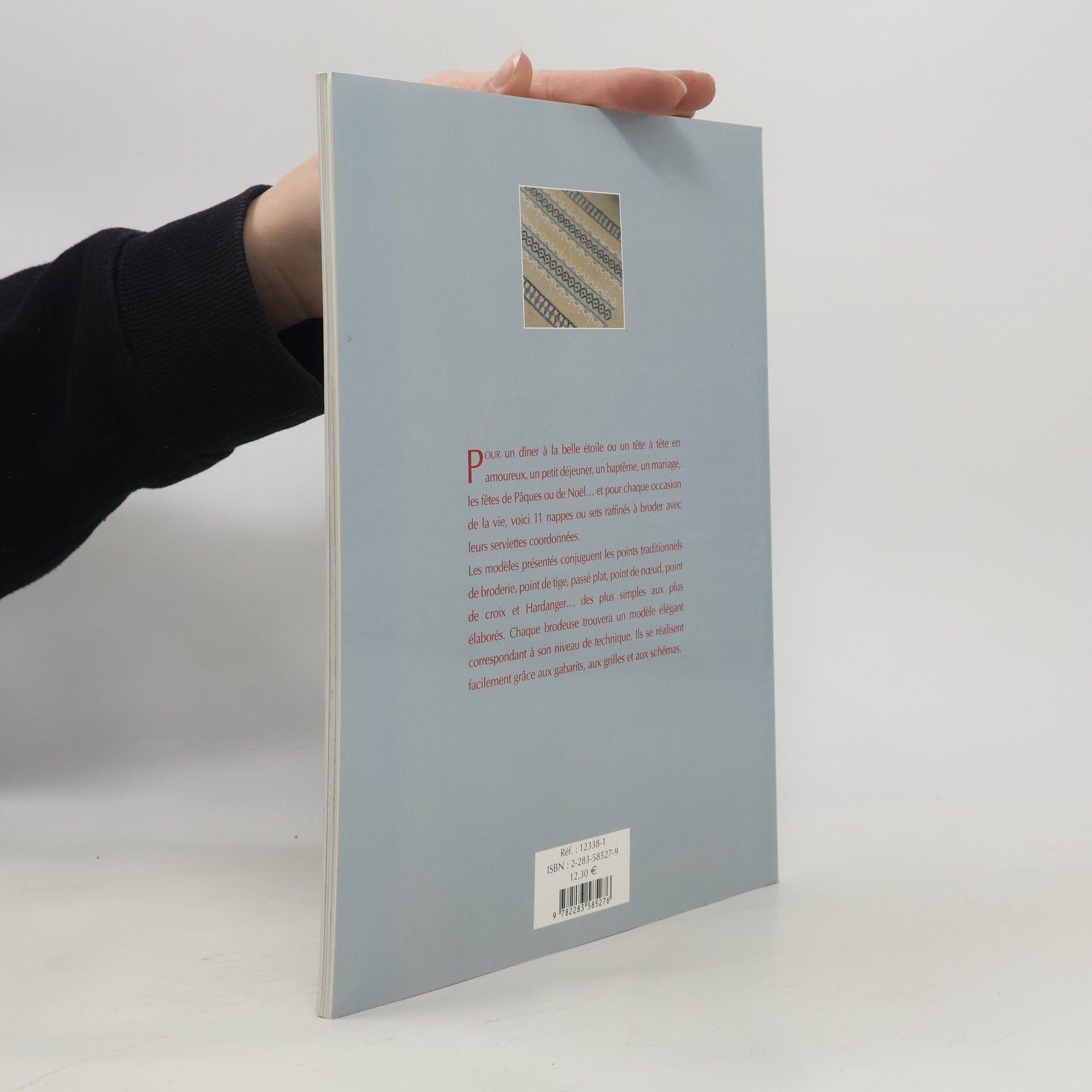 Pour un dîner à la belle étoile ou un tête à tête en amoureux, un petit déjeuner, un baptême, un mariage, les fêtes de Pâques ou de Noël... et pour chaque occasion de la vie, voici 11 nappes ou sets raffinés à broder avec leurs serviettes coordonnées. Les modèles présentés conjuguent les points traditionnels de broderie, point de tige, passé plat, point de nœuds, point de croix et Hardanger... des plus simples aux plus élaborés. Chaque brodeuse trouvera un modèle élégant correspondant à son niveau de technique. Ils se réalisent facilement grâce aux gabarits, aux grilles et aux schémas.