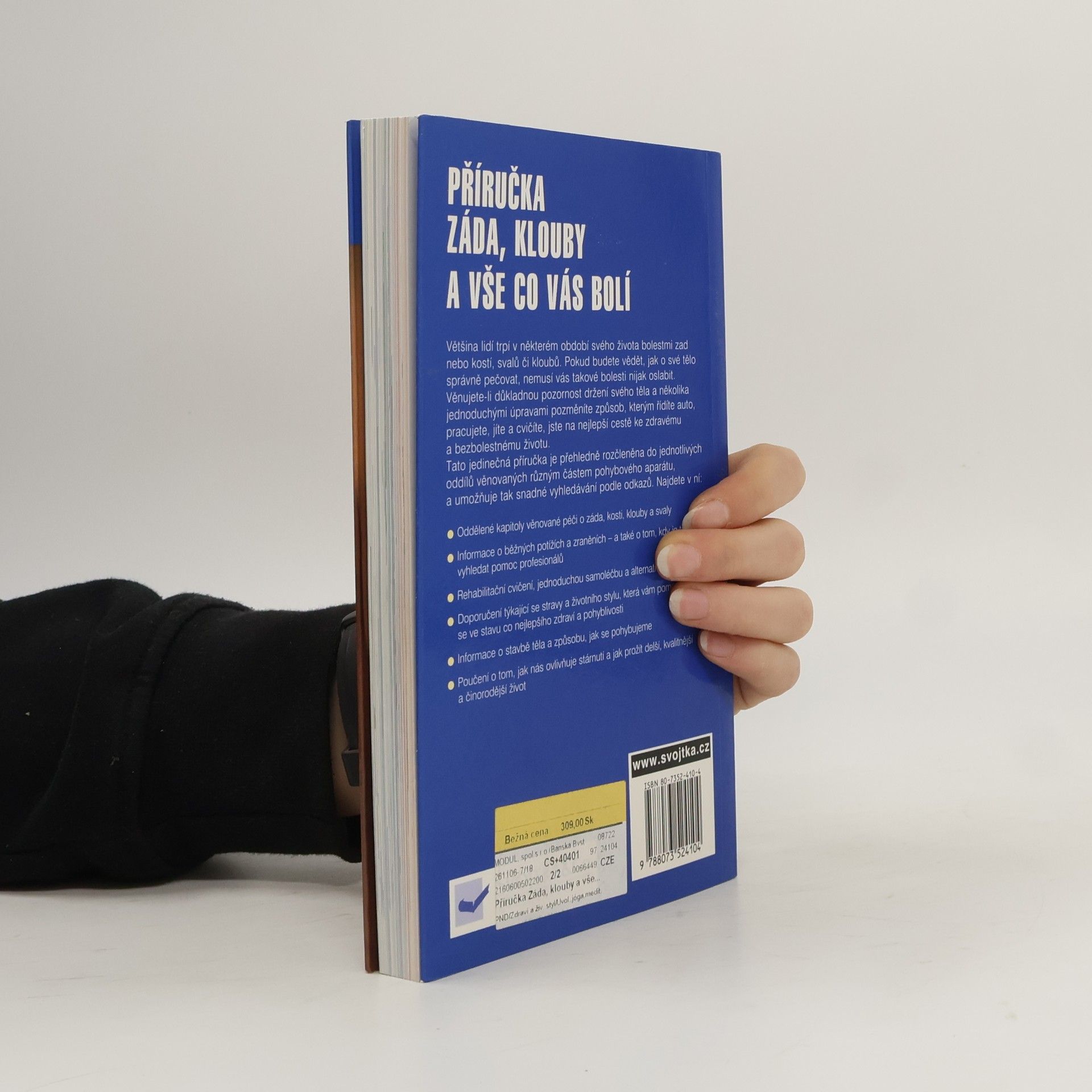 Příručka pomáhá odstranit nebo zmírnit bolesti zad, kostí a kloubů pomocí cvičení a zdravé životosprávy. Kniha je rozdělena do oddílů. Každý je věnován některé z částí pohybového aparátu člověka. V jednotlivých kapitolách probírá autor funkci těchto částí a radí, jak postupovat při bolestech a nemocech. Na závěr každé kapitoly autoři připojují soubor léčebných cviků, které by měly pomoci člověku od bolestí nebo je aspoň zmírnit. Důraz se také klade na správnou životosprávu a prevenci. Doplněno rejstříkem pojmů. (www.mlp.cz)
