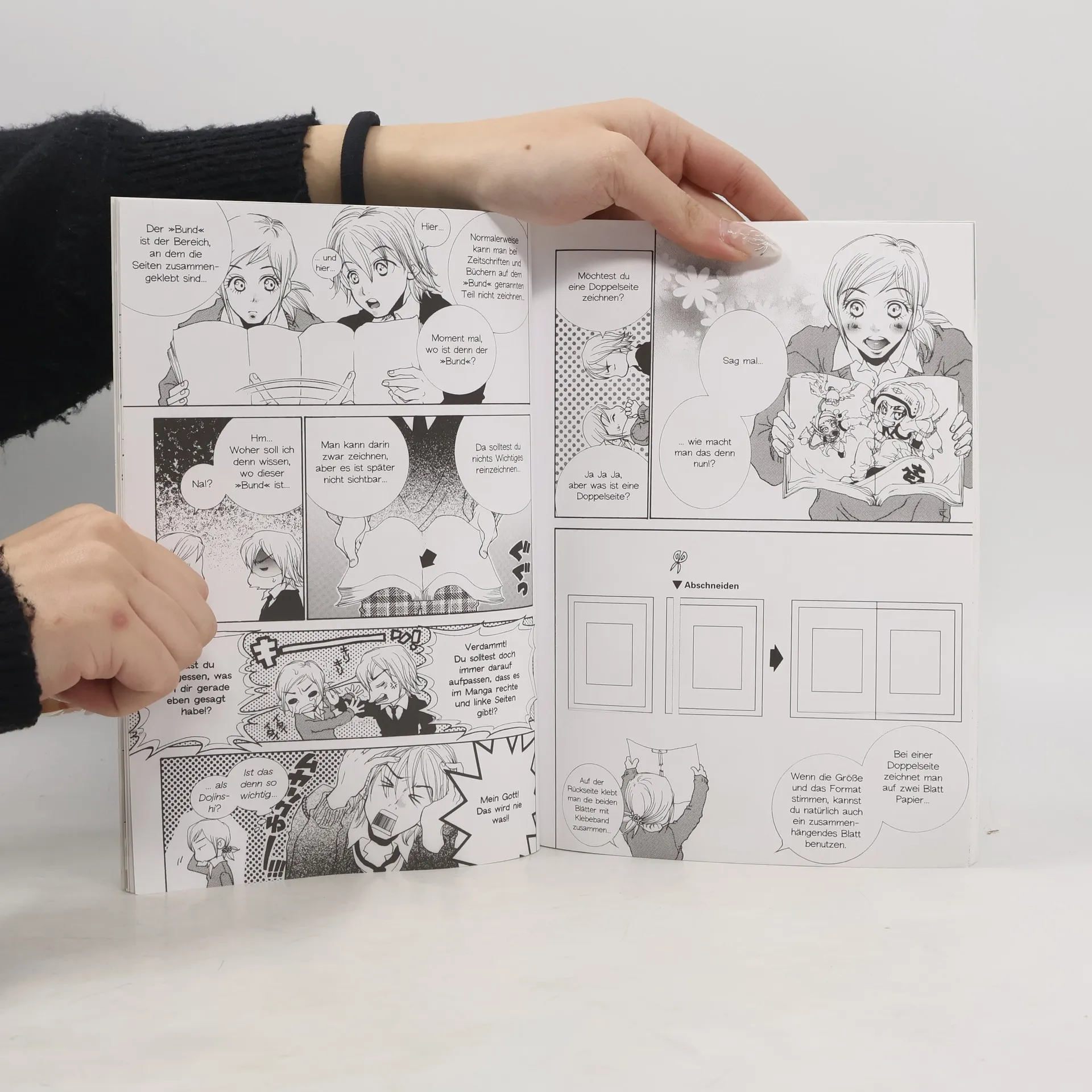 Im inzwischen 5. Band der Reihe "Manga Trainer" (vgl. zuletzt "CharakterDesign für Anfänger", BA 2/06) findet der interessierte Mangafan eine überblicksartige Anleitung zum Erstellen eines eigenen Comics, angefangen von der Skizze bis hin zur fertigen Story. Die 5 unterschiedlich langen Kapitel widmen sich folgenden Themen: verschiedene Zeichentechniken, geeignete Zeichenwerkzeuge, dem Charakterdesign, der Auswahl und dem Zeichnen von Hintergründen und Perspektiven sowie dem Zeichnen von Panels (Bildfeldern) und der Gestaltung des Seitenaufbaus. Bezeichnenderweise ist der gesamte Titel, und das unterscheidet ihn von den anderen Bänden, selbst wie ein Manga gestaltet und deshalb von hinten nach vorne und von rechts nach links zu lesen! Dies wirkt zunächst irritierend, kann jedoch schnell eintrainiert werden. Auch alle Informationen und Anleitungen sind comicartig aufbereitet und werden, eingebaut in eine fiktive Story, an den Leser über die Panels vermittelt. Wie auch die anderen Reihentitel bei anhaltendem Bedarf zum Thema überall möglich.. Das Buch, aufgemacht wie ein Manga und deshalb von hinten nach vorne und von rechts nach links zu lesen, bietet eine überblicksartige Anleitung zum Zeichnen eines eigenen Mangas.
