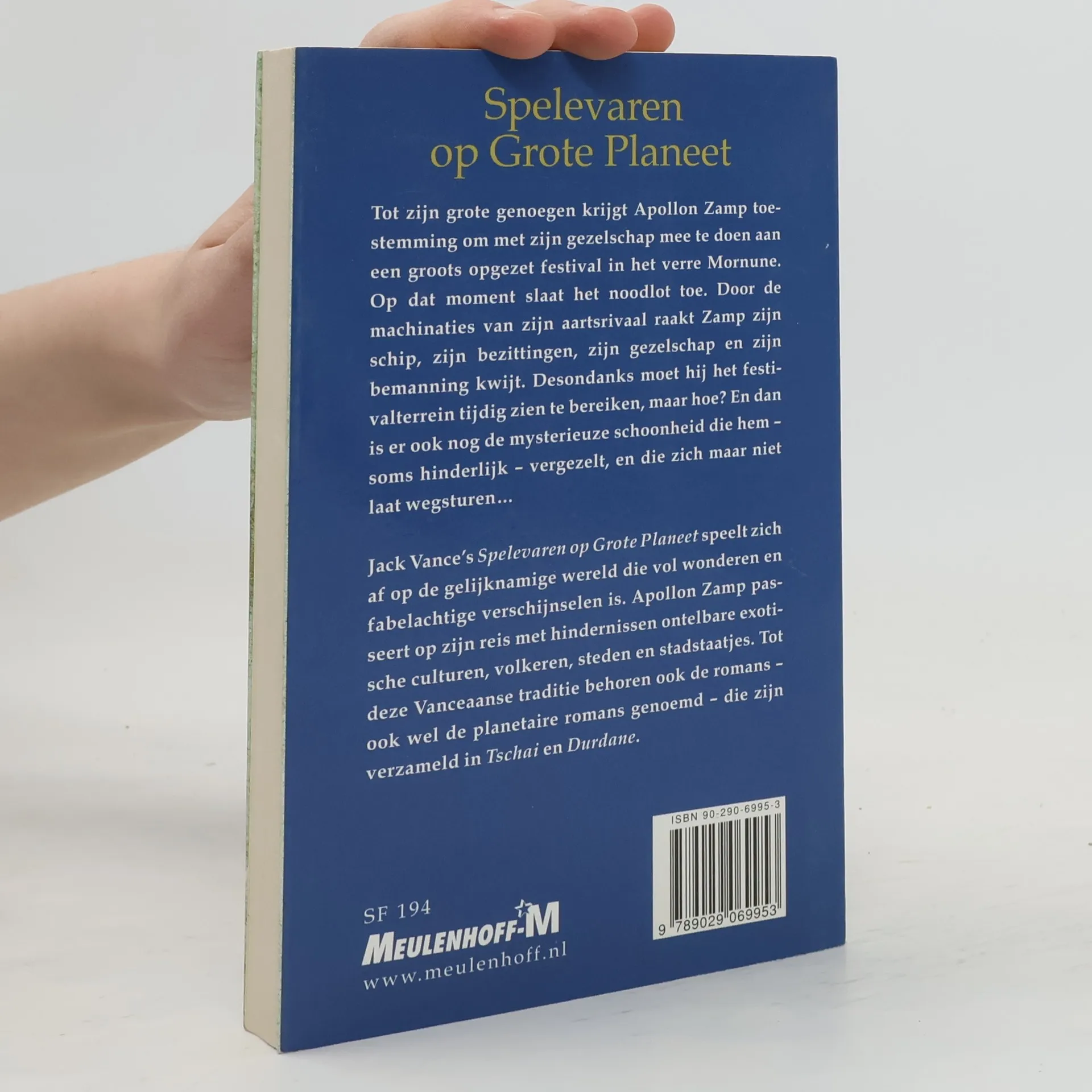 Tot zijn grote genoegen krijgt Apollon Zamp toestemming om met zijn gezelschap mee te doen aan een groots opgezet festival in het verre Mornune. Op dat moment slaat het noodlot toe. Door de machinaties van zijn aartsrivaal raakt Zamp zijn schip, zijn bezittingen, zijn gezelschap en zijn bemanning kwijt. Desondanks moet hij het festivalterrein tijdig zien te bereiken, maar hoe? En dan is er ook nog de mysterieuze schoonheid die hem – soms hinderlijk – vergezelt, en die zich maar niet laat wegsturen... Jack Vance’s <i>Spelevaren op Grote Planeet</i> speelt zich af op de gelijknamige wereld die vol wonderen en fabelachtige verschijnselen is. Apollon Zamp passeert op zijn reis met hindernissen ontelbare exotische culturen, volkeren, steden en stadstaatjes. Tot deze Vanceaanse traditie behoren ook de romans – ook wel de planetaire romans genoemd – die zijn verzameld in <i>Tschai</i> en <i>Durdane</i>.