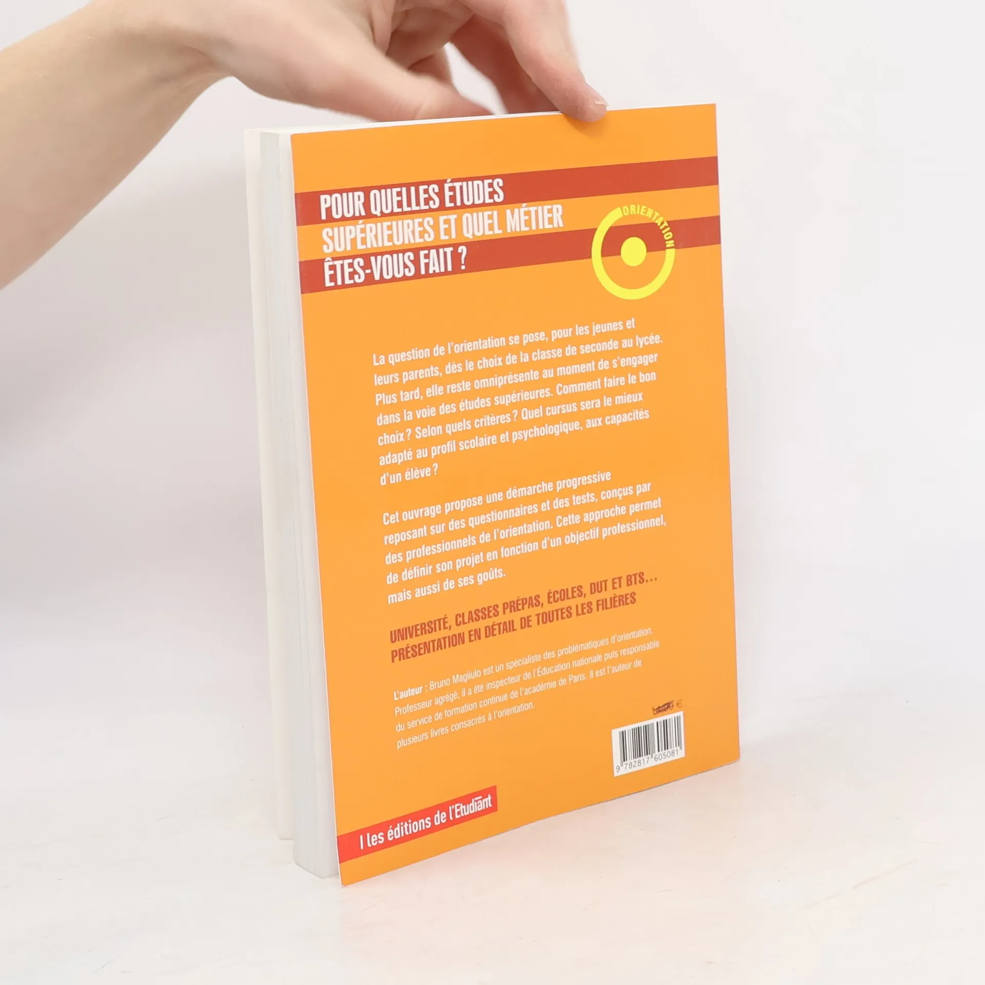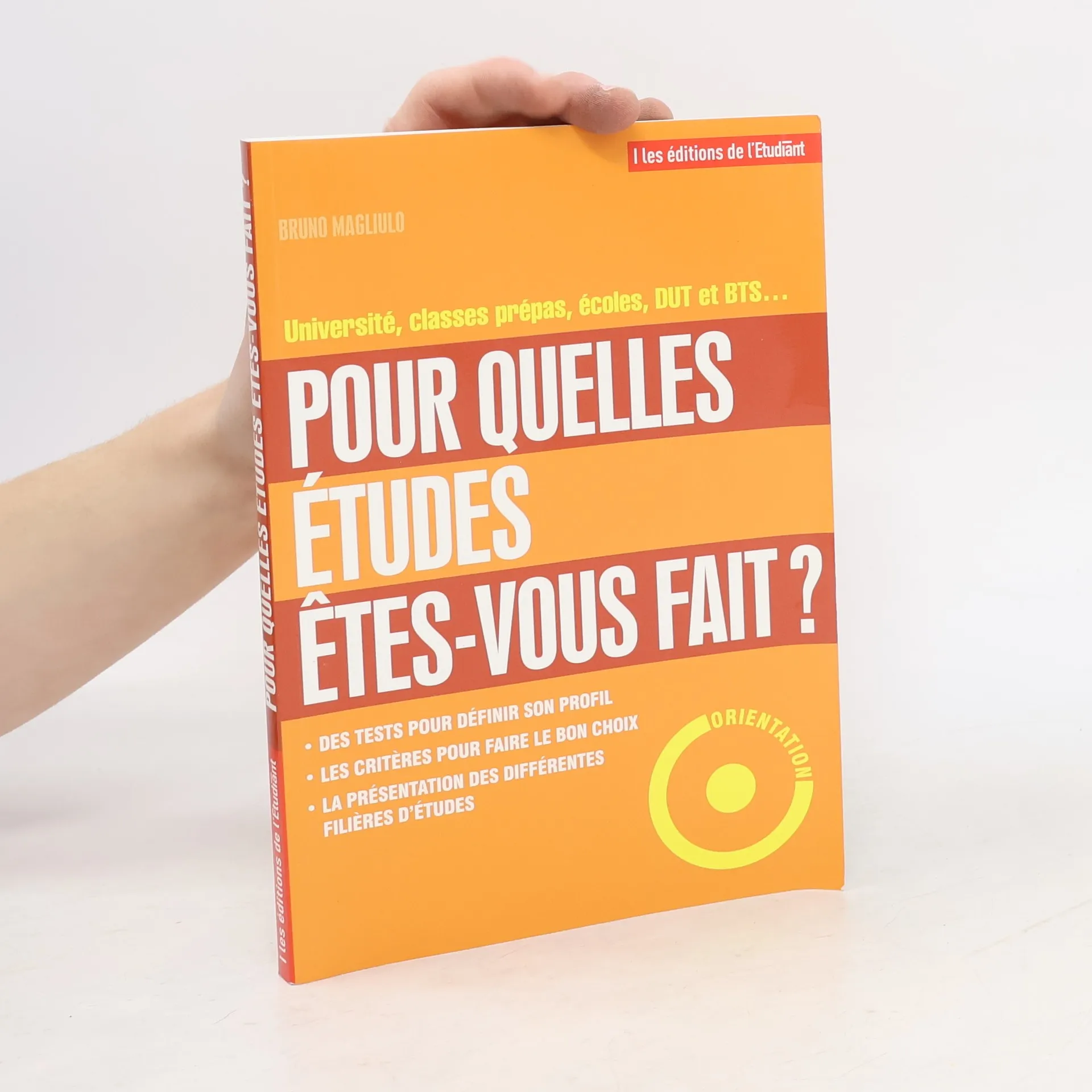 La question de l'orientation se pose, pour les jeunes et leurs parents, dès le choix de la classe de seconde au lycée. Plus tard, elle reste omniprésente au moment de s'engager dans la voie des études supérieures. Comment faire le bon choix ? Selon quels critères ? Quel cursus sera le mieux adapté au profil scolaire et psychologique, aux capacités d'un élève ? Cet ouvrage propose une démarche progressive reposant sur des questionnaires et des tests, conçus par des professionnels de l'orientation. Cette approche permet de définir son projet en fonction d'un objectif professionnel, mais aussi de ses goûts. Université, classes prépas, écoles, DUT et BTS : présentation en détail de toutes les filières.