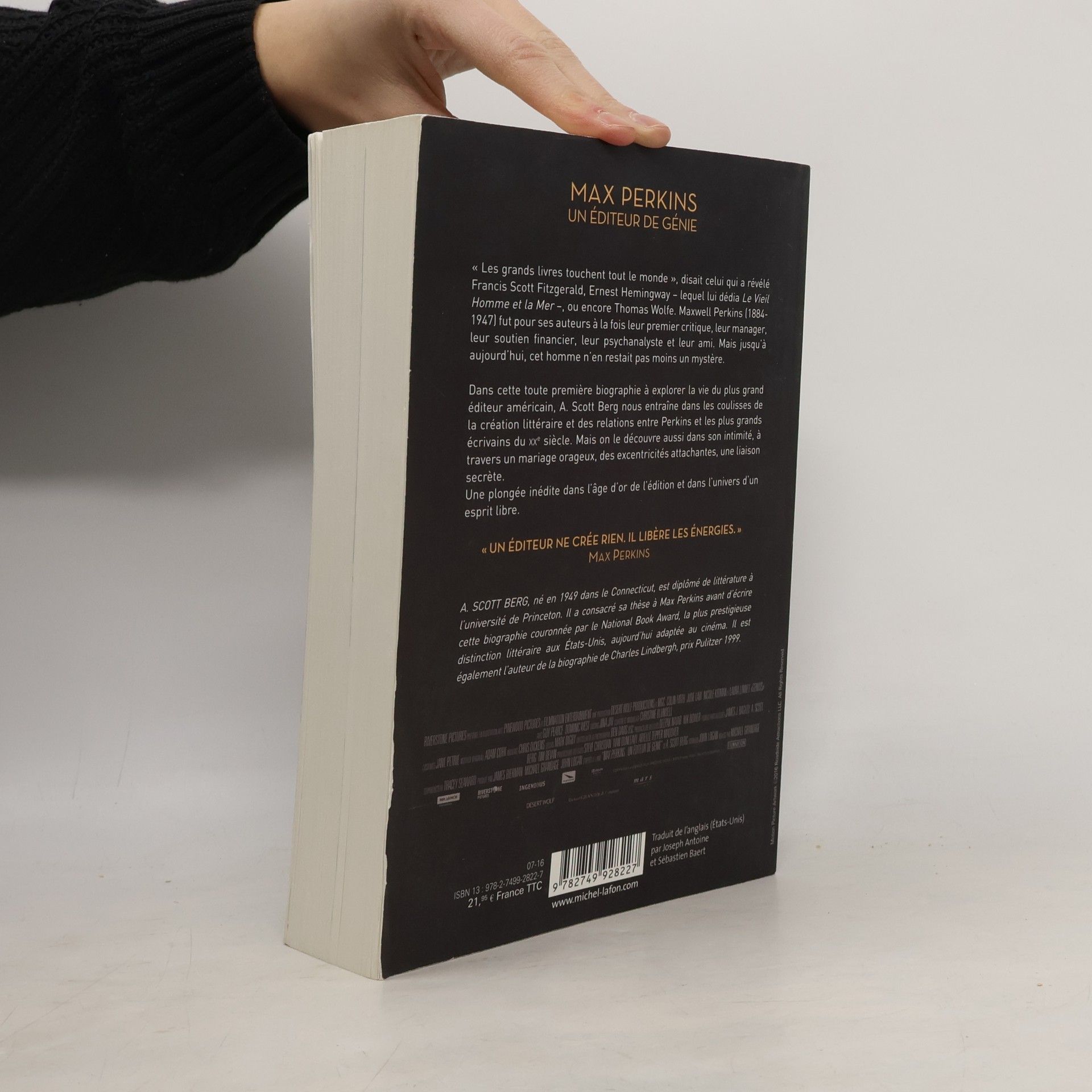 Les talents qu'il a découverts en tant qu'éditeur sont admirés mondialement : Francis Scott Fitzgerald, Ernest Hemingway qui lui a dédié son chef-d'œuvre, Le Vieil Homme et la Mer, ou encore Thomas Wolfe. Maxwell Perkins (1884-1947) fut à la fois, pour ses auteurs, leur premier critique, le manager de leurs carrières, leur soutien financier, leur psychanalyste et leur ami. Mais cet homme n'en restait pas moins, jusqu'ici, un mystère. Max Perkins, un éditeur de génie est la toute première biographie à explorer la vie professionnelle et privée du plus grand éditeur américain. Scott Berg nous entraîne dans les coulisses de la création littéraire et des relations intimes entre Perkins et les plus éminents auteurs, lumières littéraires du XXe siècle. Mais on découvre aussi sa vie privée, son mariage orageux, ses excentricités si attachantes, sa liaison secrète avec une mondaine qui fut sa confidente pendant vingt-cinq ans, au fil d'une passionnante correspondance... Une plongée inédite dans l'âge d'or de l'édition.