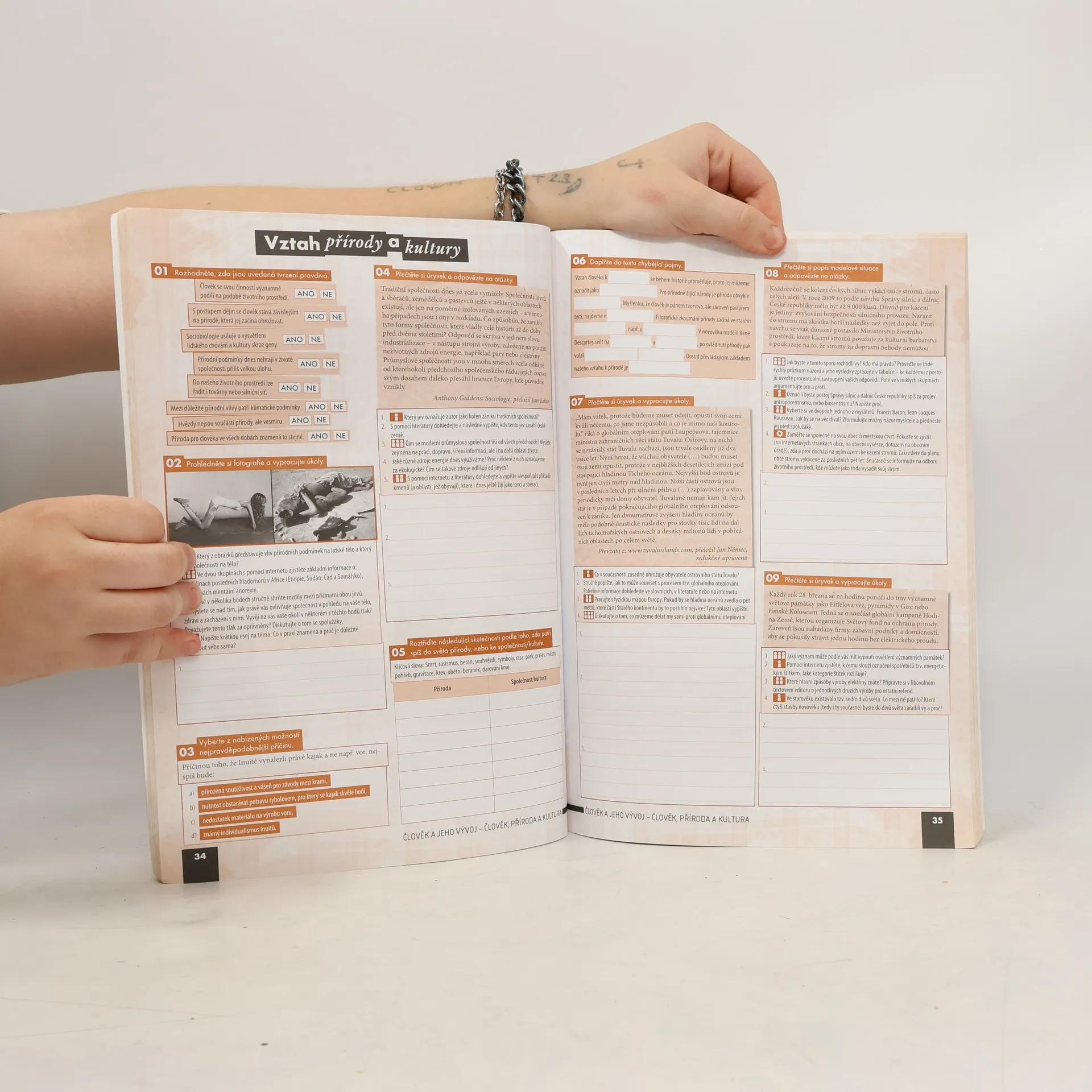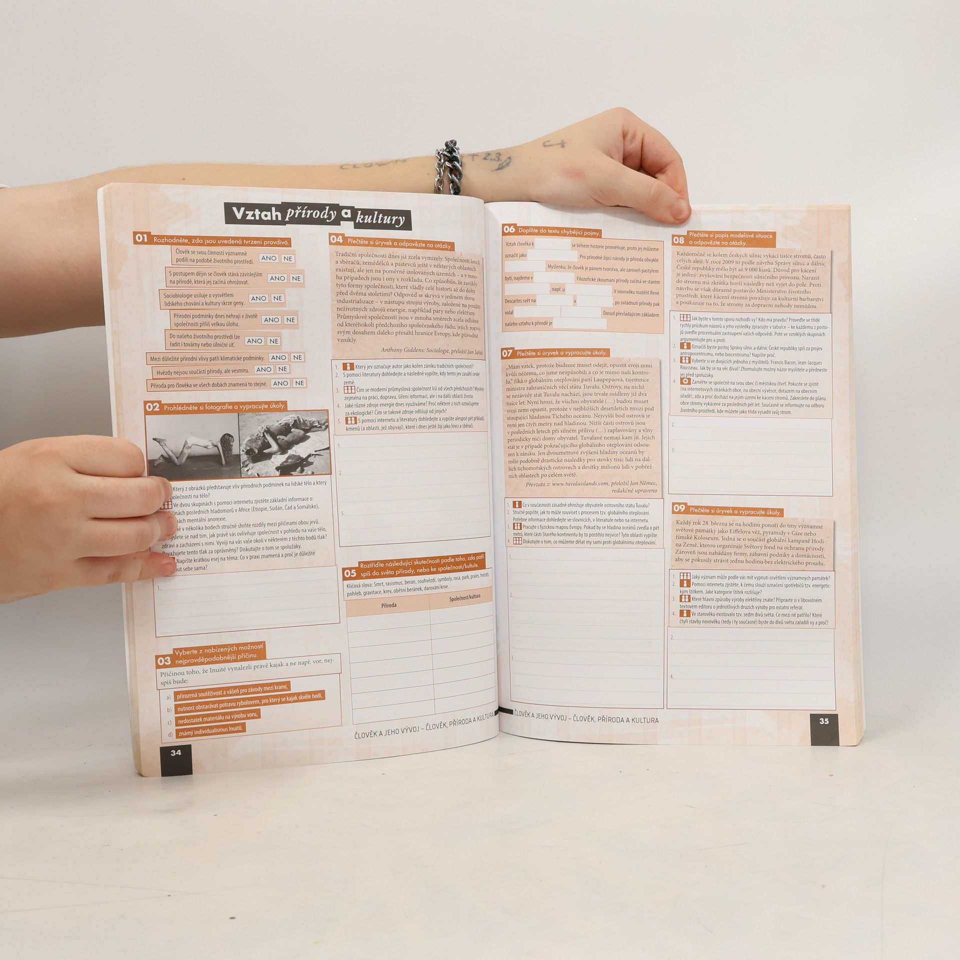 Pracovní sešit je navržen jako jednotný celek s učebnicí, přičemž se předpokládá jejich kombinované využití ve výuce. Ověřuje a prohlubuje znalosti klíčového učiva a spojuje vybrané problematiky s každodenním životem. Cvičení podporují rozvoj dovedností a klíčových kompetencí žáků a splňují požadavky Rámcového vzdělávacího programu pro gymnaziální a střední odborné vzdělávání. Struktura sešitu odpovídá učebnici, obsahuje shodné tematické celky, kapitoly a podkapitoly, přičemž jednotlivá cvičení odkazují na výkladové části učebnice. Každý tematický celek zahrnuje dvoustránkové Opakování, které ověřuje znalost klíčových pojmů a problémů a je zpracováno podle typů cvičení, které odpovídají maturitní zkoušce. Sešit nabízí širokou škálu cvičení, včetně klasických faktografických úloh a aktivit zaměřených na práci s textem, posuzování modelových situací a identifikaci problémů. Zadání kombinují individuální, párovou a skupinovou práci, a zahrnují podněty pro dlouhodobější projekty. Důraz je kladen na spolupráci studentů a jejich sebevyjádření formou diskusí a písemných prací. Většinu cvičení mohou studenti vypracovat přímo do sešitu, což podporuje práci s různými informačními zdroji a kritické zhodnocení jejich spolehlivosti. Grafické zpracování zvyšuje přehlednost a systematičnost textů a formálně odlišuje typy cvičení a formy práce studentů.