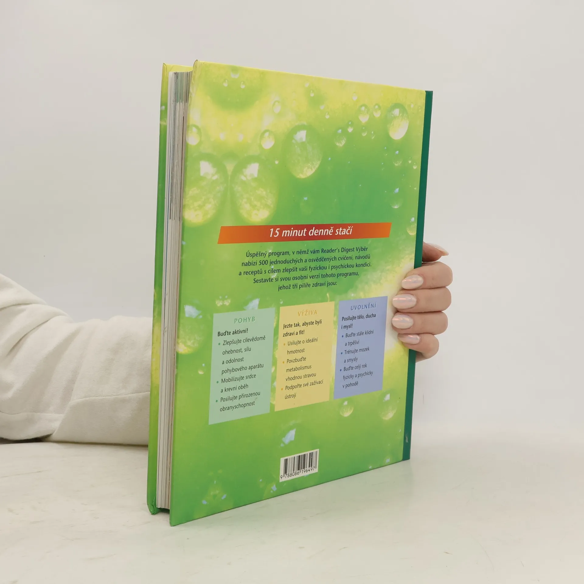 Reader's Digest vám nabízí úspěšný program, jak zlepšit vaši psychickou i fyzickou kondici pomocí 500 jednoduchých a osvědčených cvičení, návodů a receptů. S nespavostí a migrénou můžete bojovat bez léků. Dokážete proplouvat úskalími života a cítit se, jako byste vyhráli milion. Potřebujete si jen vyšetřit pouhých patnáct minut denně na jednoduchá cvičení obsažená v této podnětné příručce. Najdete v ní soubor snadno proveditelných a zdraví prospěšných cviků. Ranní rozcvička vám umožní s elánem vstoupit do nového dne, chvilka strečinku vás uvolní a zdravá, energeticky bohatá snídaně vás udrží ve formě až do oběda.