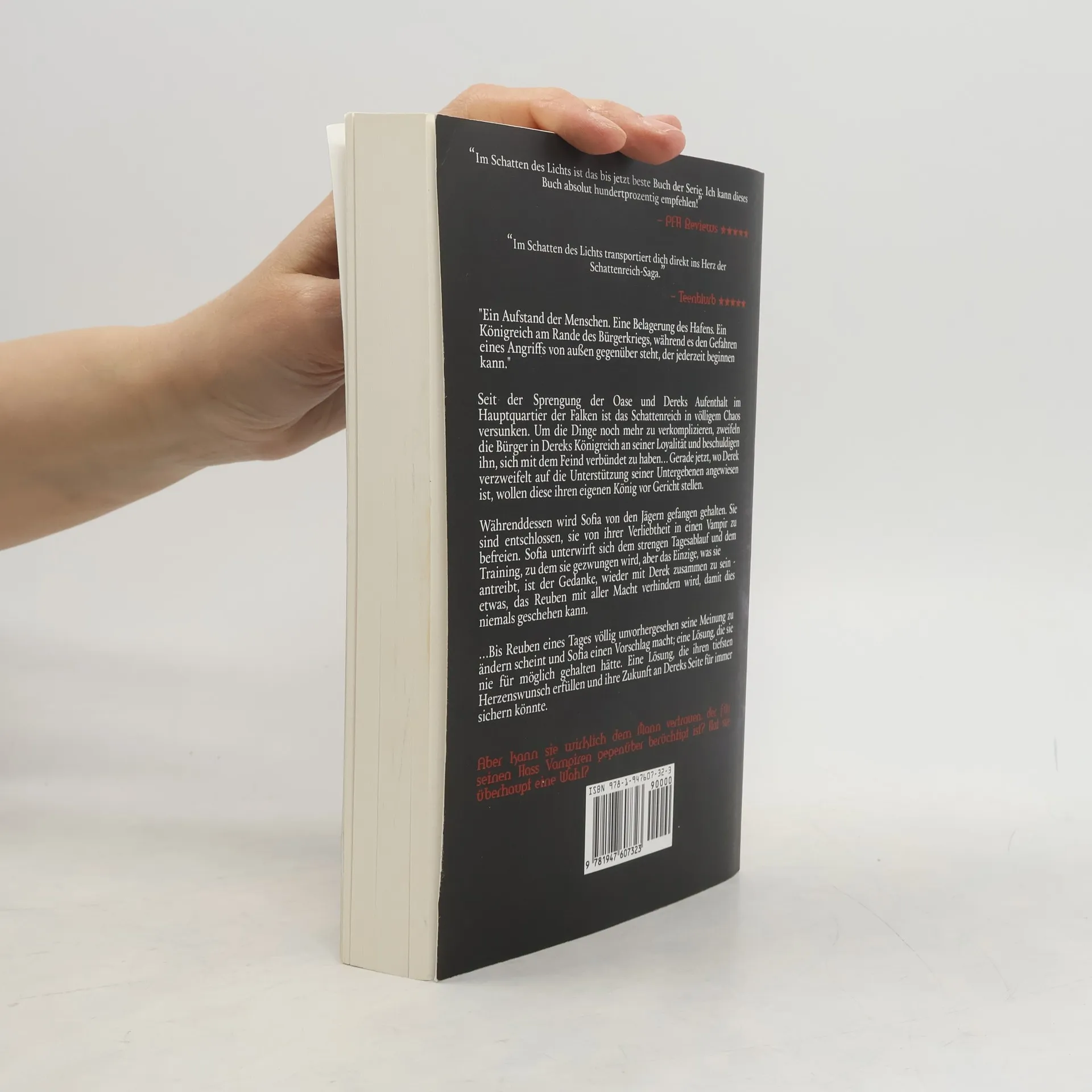 Seit der Sprengung der Oase und Dereks Aufenthalt im Hauptquartier der Falken ist das Schattenreich im Chaos. Die Bürger in Dereks Königreich zweifeln an seiner Loyalität und beschuldigen ihn, sich mit dem Feind verbündet zu haben. Gerade jetzt, wo Derek auf die Unterstützung seiner Untergebenen angewiesen ist, wollen diese ihren König vor Gericht stellen. Gleichzeitig wird Sofia von den Jägern gefangen gehalten, die entschlossen sind, sie von ihrer Liebe zu einem Vampir zu befreien. Sofia unterwirft sich dem strengen Training, doch ihr einziger Antrieb ist der Gedanke an Derek – etwas, das Reuben mit aller Macht verhindern will. Doch plötzlich ändert Reuben unerwartet seine Meinung und macht Sofia einen Vorschlag, der ihren tiefsten Herzenswunsch erfüllen und ihre Zukunft an Dereks Seite sichern könnte. Doch kann sie dem Mann vertrauen, der für seinen Hass auf Vampire bekannt ist? Hat sie überhaupt eine Wahl? Die Geschichte von Derek Novak und Sofia Claremont erstreckt sich über die ersten sieben Bücher der Reihe und endet in Buch 7. Ab Buch 8 beginnen die Charaktere völlig neue Abenteuer.