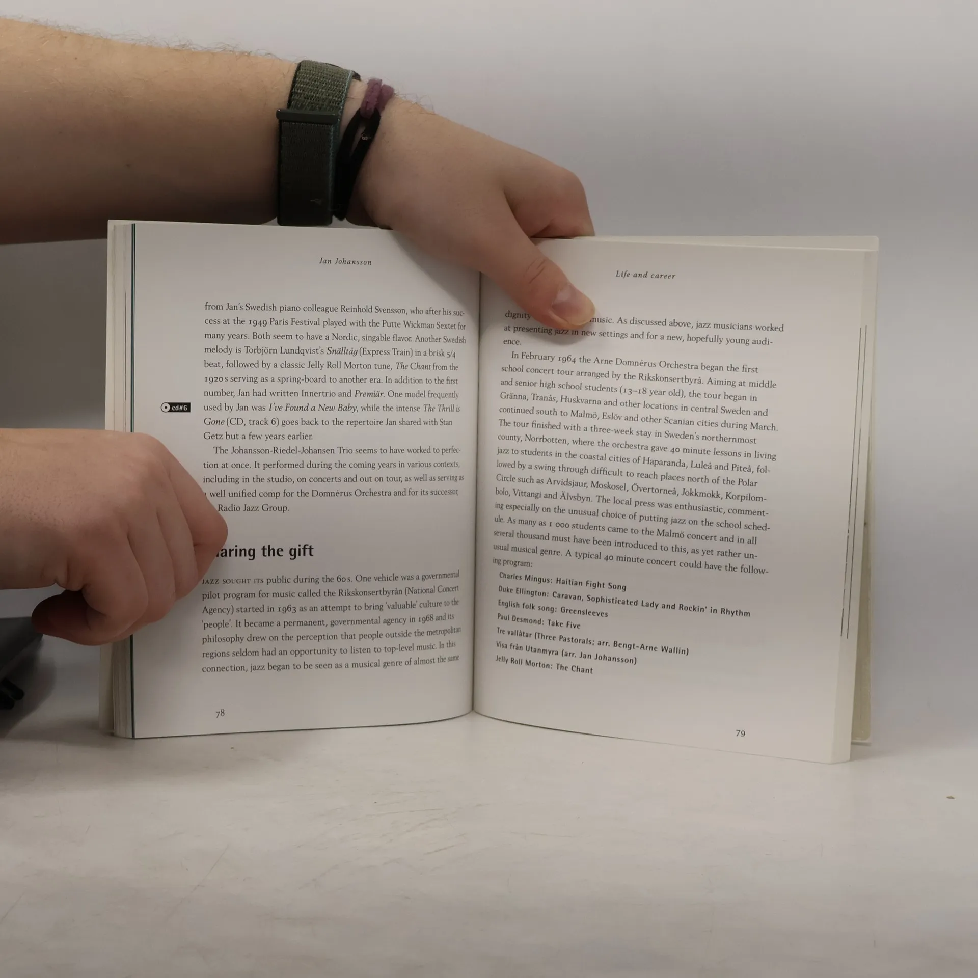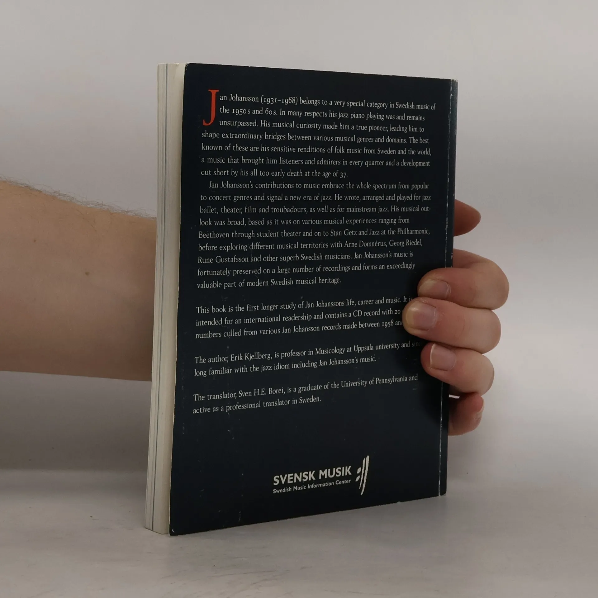 Jan Joansson (1931-1968) belongs to a very special category in Swedish music of the 1950's and 60's. In many respects his jazz piano playing was and remains unsurpassed. His musical curiosity made him a true pioneer, leadin hm to shape extraordinary bridges between various musical genres and domains. The Best known of these are his sensitive renditions of folk music from Sweden and the sorld, a music that brought him listeners and admirers in every quarter and a development cut short by his all too early death at the age of 37. Jan Johansson's contributions to music embrace the whole spectrum from popular to concert generes and signal a new era of jazz. He wrote, arranged and played for jazz ballet, theatre, film and troubadours, as well as for mainstream jazz. His musical outlook was broad, based as it was on various musical experiences ranging from Beethoven through student and on to Stan Getz and Jazz at the Philharmonic, before exploring different musical territories with Arne Dimnerus, Georg Riedel, Run Gustafsson and other superb Swedish musicians. Jan Johansson's music is forturately preserved on a large number of recordings and forms an exceedingly valuable part of modern Swedish musical heritage. This book is the first longer study of Jan Johanssons life, career and music. It is intended for an international readership and contains a DC wit 20 Different numbers culled from various Jan Johansson records made between 1950-1968.