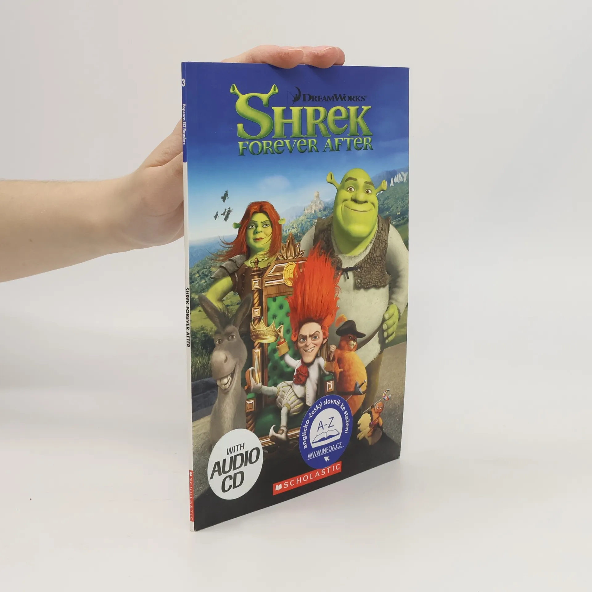 Frustrated with his home life, Shrek makes a deal with fairy-tale trickster Rumpelstiltskin, giving him a day of his life in exchange for a day as a free and single ogre. But Shrek falls headlong into an alternative reality where Rumpelstiltskin is King, Princess Fiona is a freedom fighter and Shrek himself has never existed. Can he undo Rumpelstiltskin’s spell? Anglická zjednodušená četba pro děti na motivy úspěšných holywoodských kreslených filmů.