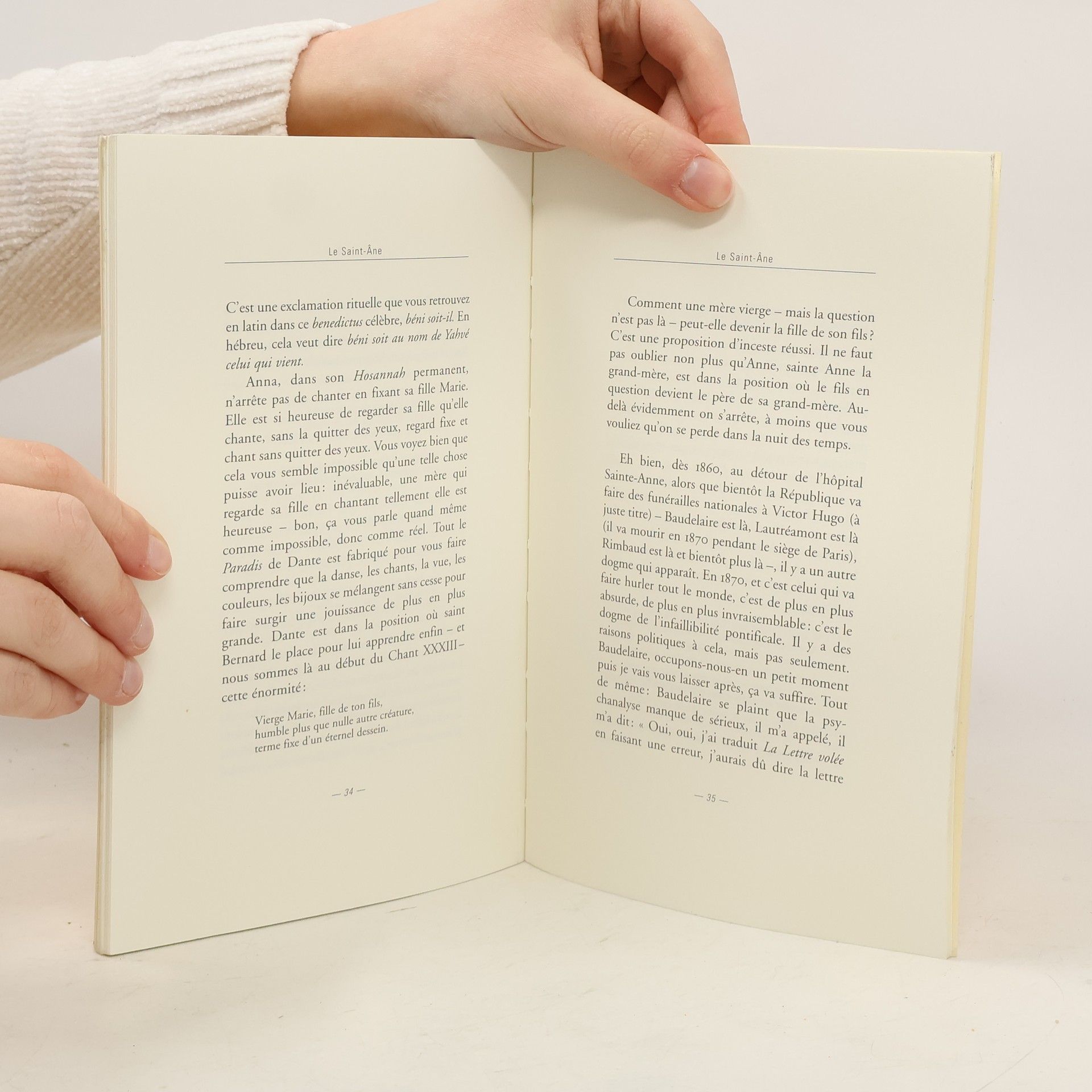 Texte d'une intervention prononcée lors d'un meeting de protestation contre l'amendement Accoyer (réglementant les psychothérapies) en janvier 2004. Variations sur le mot Anne qui conduit l'auteur de l'immaculée conception à l'hôpital Sainte-Anne en passant par Titien, Baudelaire, Freud et les ânes.
