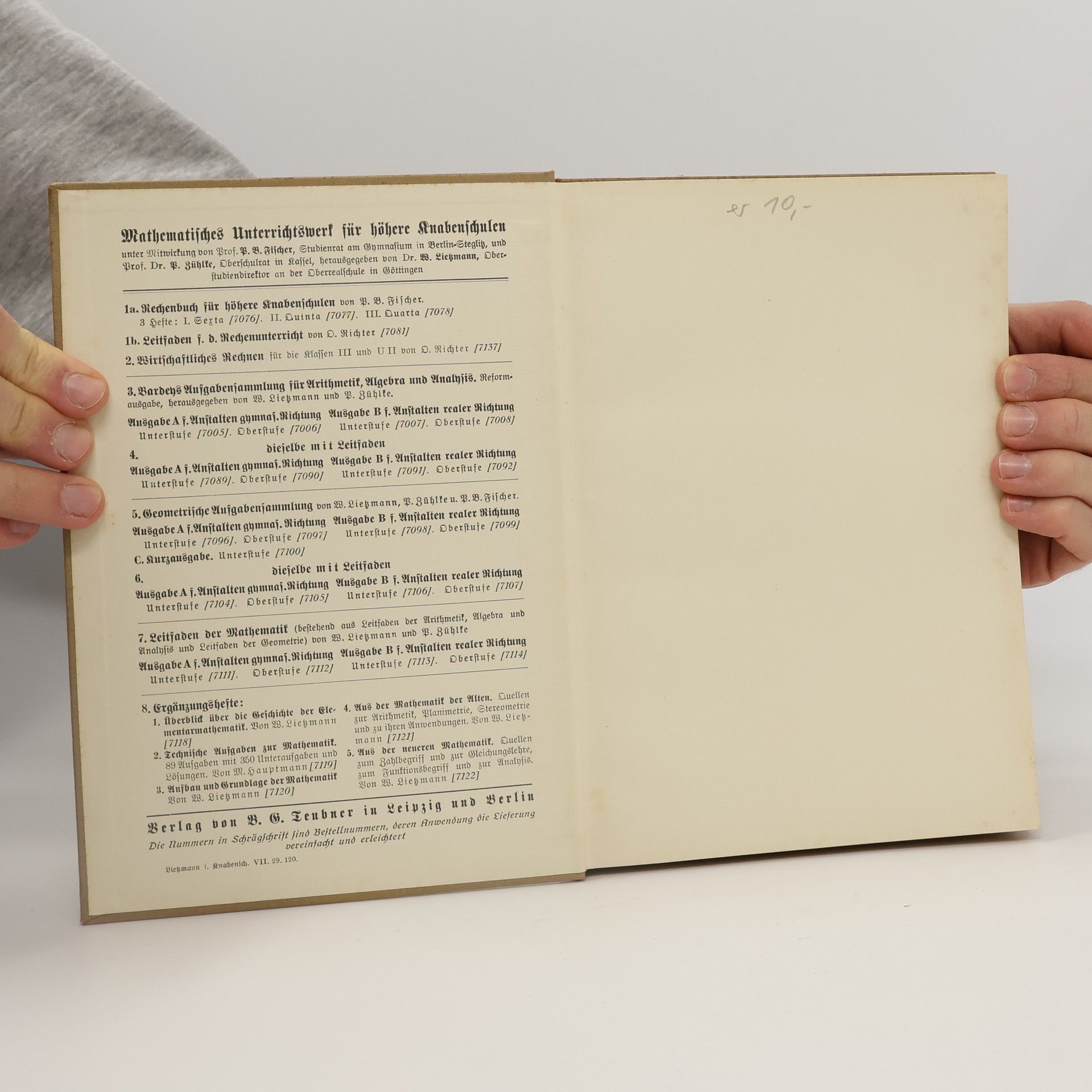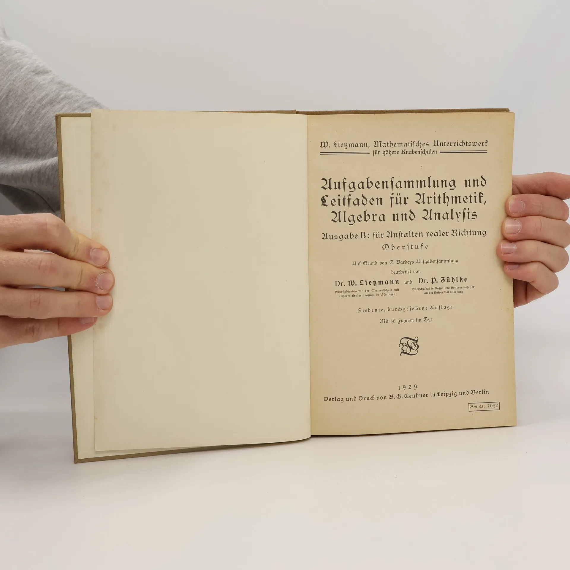 Aufgabensammlung und Leitfaden für Arithmetik, Algebra und Analysis, Wilhelm Lietzmann