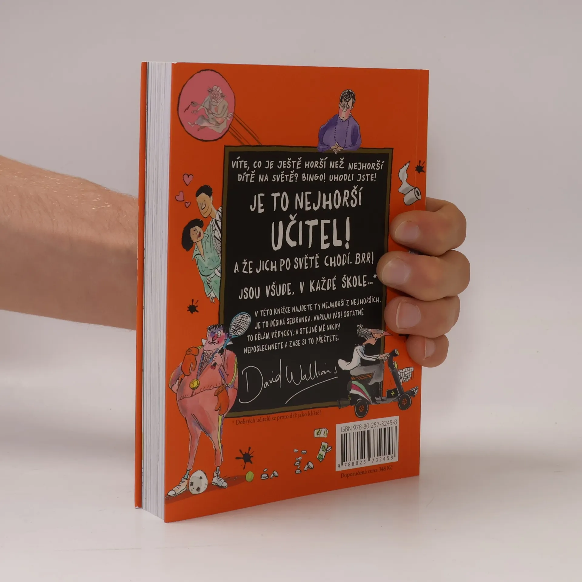Miliony dětských čtenářů v mnoha zemích, kteří se bavili nad Walliamsovými knihami o nejhorších dětech na světě, se můžou těšit na povedenou sbírku děsivých dospělých, ba co hůř, těch nejděsivějších dospělých vůbec: učitelů. Myslíte si, že vaši učitelé jsou příšerní? Jen počkejte, až poznáte tuhle sebranku! Desítka nádherně odporných pedagogů vás zaručeně donutí dát se na bezhlavý útěk ze školních vrat. Jeden z učitelů trpí nevýslovným strachem, no považte, z dětí! Jiná učitelka se věčně vzteká a nechá po škole každého, kdo se jí nestačí vyhnout, další učí přírodní vědy a je napůl člověk, napůl odporný smrdutý netvor... a to ještě zdaleka není všechno!