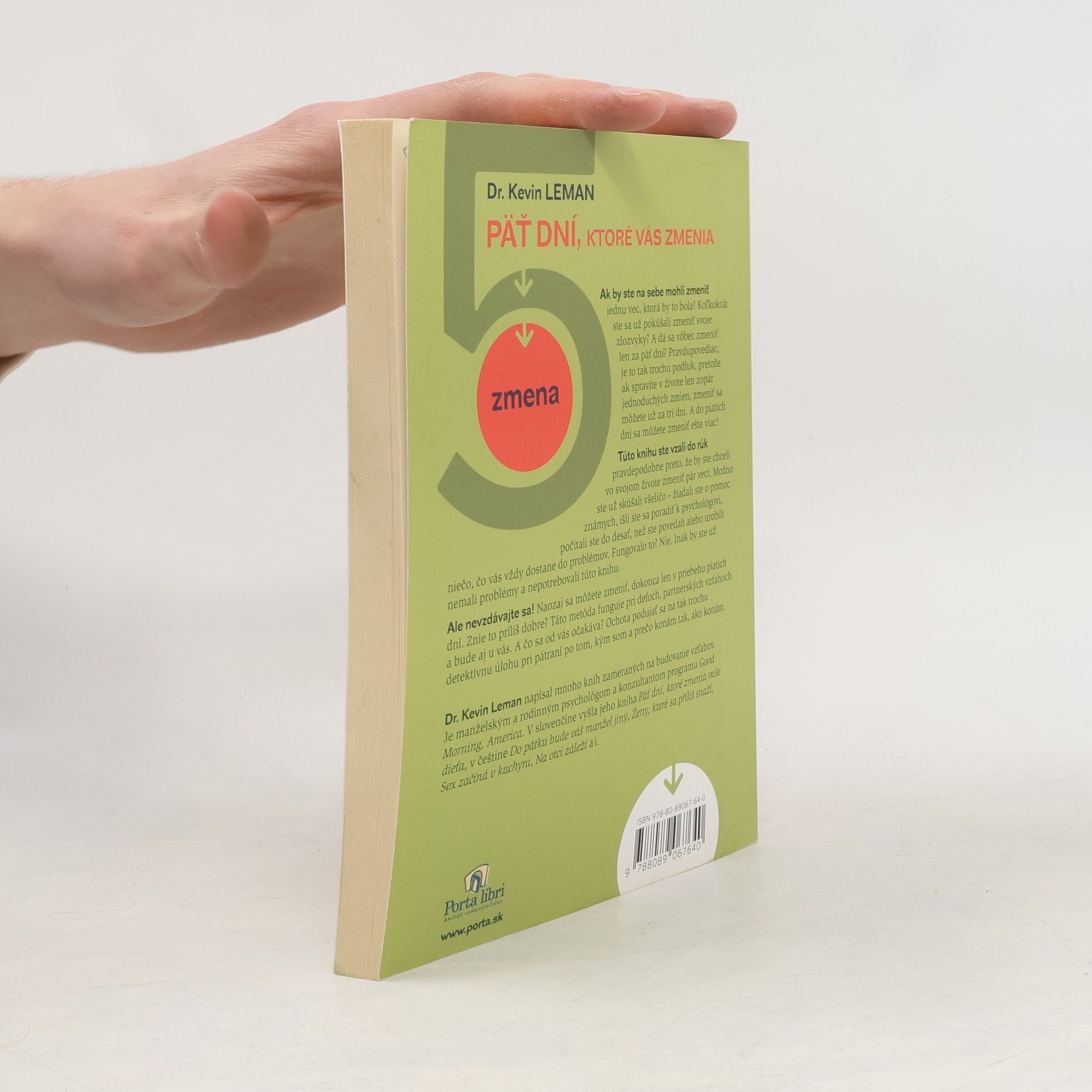 Ako sa dá do piatich dní prijať seba samého, prebudiť sebadôveru a premeniť svoj život. Ak by ste na sebe mohli zmeniť jednu vec, ktorá by to bola? Koľkokrát ste sa už pokúšali zmeniť svoje zlozvyky? A dá sa vôbec zmeniť len za päť dní? Pravdupovediac, je to tak trochu podfuk, pretože ak spravíte v živote len zopár jednoduchých zmien, zmeniť sa môžete už za tri dni. A do piatich dní sa môžete zmeniť ešte viac! Túto knihu ste vzali do rúk pravdepodobne preto, že by ste chceli vo svojom živote zmeniť pár vecí. Možno ste už skúšali všeličo – žiadali ste o pomoc známych, išli ste sa poradiť k psychológovi, počítali ste do desať, než ste povedali alebo urobili niečo, čo vás vždy dostane do problémov. Fungovalo to? Nie. Inak by ste už nemali problémy a nepotrebovali túto knihu. Ale nevzdávajte sa! Naozaj sa môžete zmeniť, dokonca len v priebehu piatich dní. Znie to príliš dobre? Táto metóda funguje pri deťoch, partnerských vzťahoch a bude aj u vás. A čo sa od vás očakáva? Ochota podujať sa na tak trochu detektívnu úlohu pri pátraní po tom, kým som a prečo konám tak, ako konám.