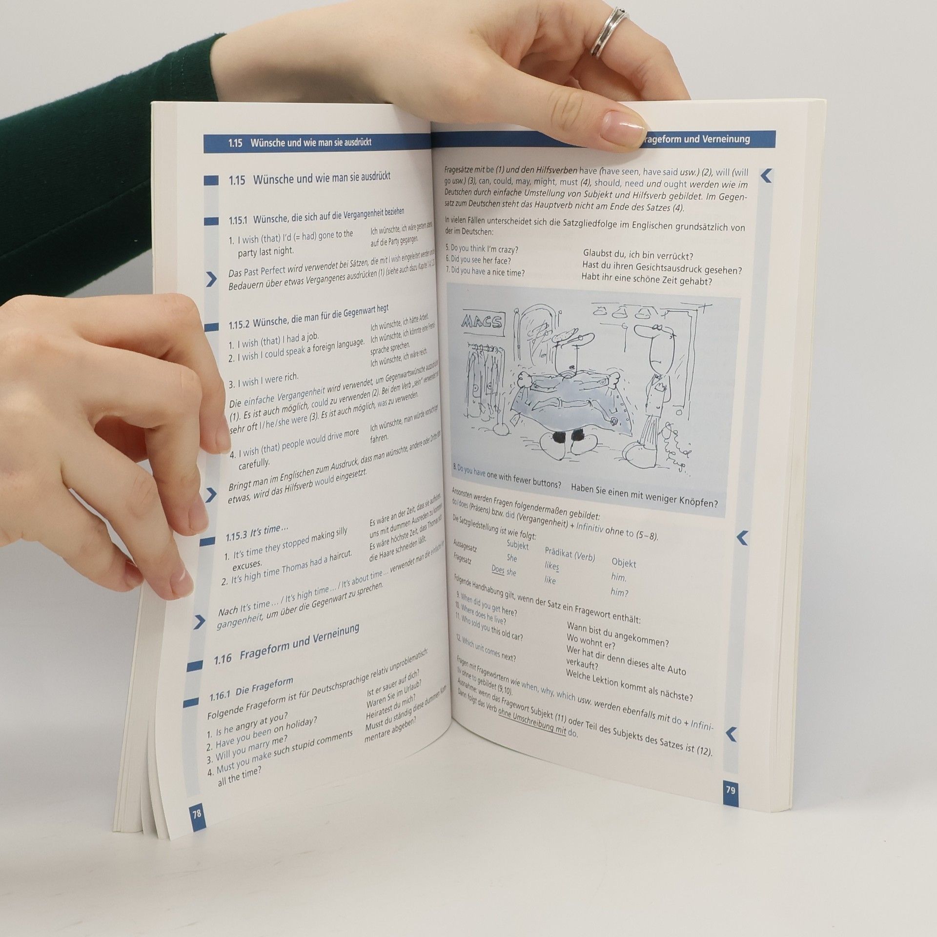 Diese leicht verständliche systematische Nachschlagegrammatik für erwachsene Lerner/innen fasst alle wichtigen Punkte der englischen Grammatik kompakt zusammen, gibt leicht erfassbare Erklärungen auf Deutsch und geht kontrastiv speziell auf die Bedürfnisse und Lernschwierigkeiten deutschsprachiger Lerner/innen ein. Auch die zahlreichen Beispielsätze sind mit deutscher Übersetzung versehen. Die Grammatikregeln sind mit gut sichtbaren Pfeilen am Randbereich markiert. Humorvolle Cartoons aus der britischen Zeitschrift Punch illustrieren einzelne Grammatikpunkte und Redewendungen und dienen so als Gedächtnisstütze. Ergänzt wird die Nachschlagegrammatik durch zwei Übungshefte, die zusätzlich Übungs- und Testmaterial auf zwei Schwierigkeitsstufen bereitstellen; Workbook 1 beinhaltet den Stoff bis zum A2-Niveau, Workbook 2 das Pensum bis zum B1-Niveau. Integrierte Lösungsschlüssel ermöglichen die selbstständige Bearbeitung zu Hause und geben Sicherheit bei der Festigung bzw. Überprüfung der erworbenen Kenntnisse.