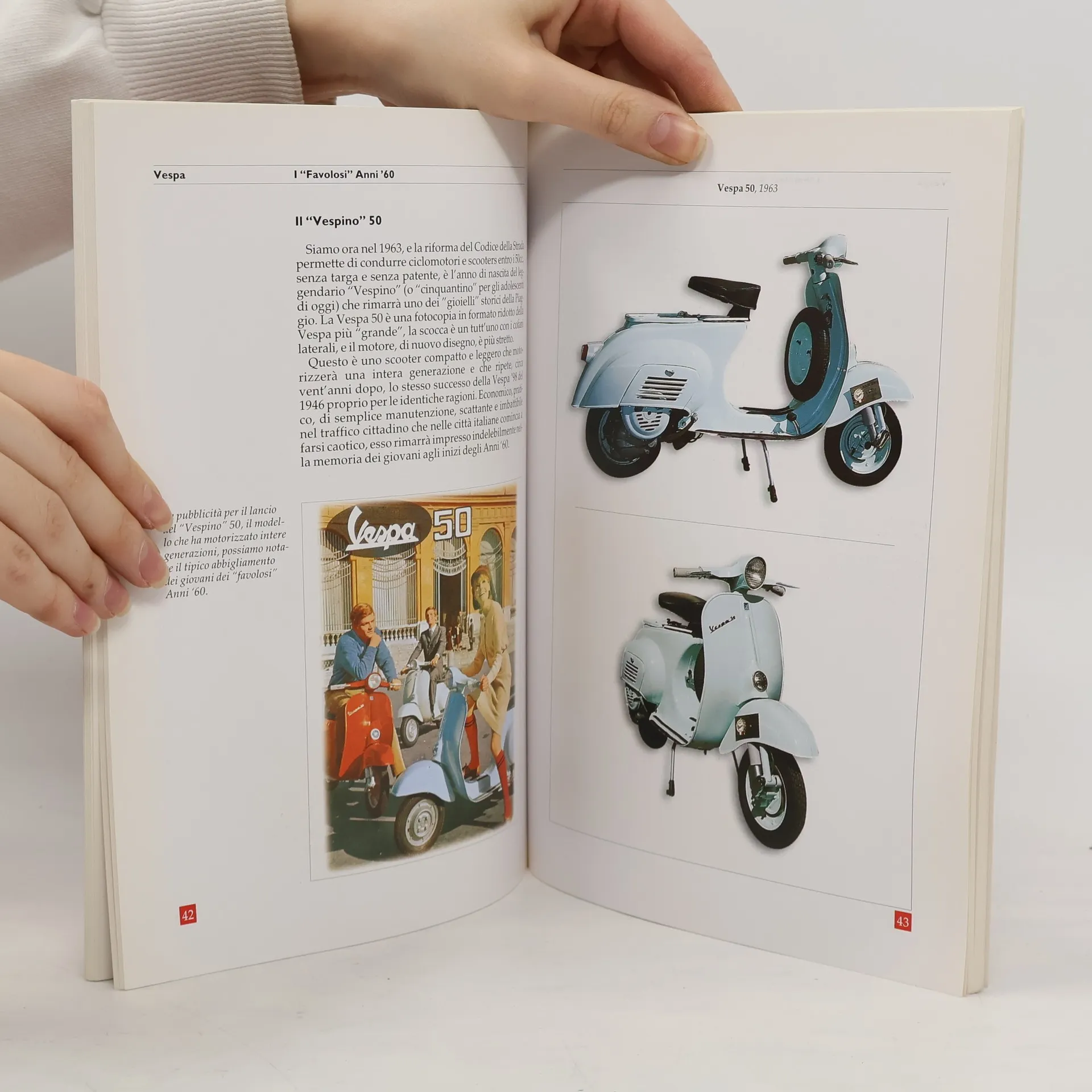 Sono passati ormai 70 anni da quando, nell'Aprile del 1946, Enrico Piaggio lanciava sul mercato italiano la mitica Vespa 98, quasi ad esorcizzare in quell'immediato dopoguerra le paure e le incertezze per il futuro di gran parte degli Italiani. L'Autore, presidente del Vespa Club d'Italia, ci racconta la storia di questo fortunato scooter; corredato da magnifiche foto a colori il libro presenta tutti i modelli Vespa dalle origini ad oggi, le versioni speciali, quelle militari costruite all'estero e le versioni per gli usi commerciali più svariati assieme a modelli ormai rarissimi. Un imponente corredo di memorabilia, calendari e pubblicità degli Anni '50 e '60, ci restituiscono tutta l'atmosfera sana e un pò ingenua dell'Italia di quel periodo.