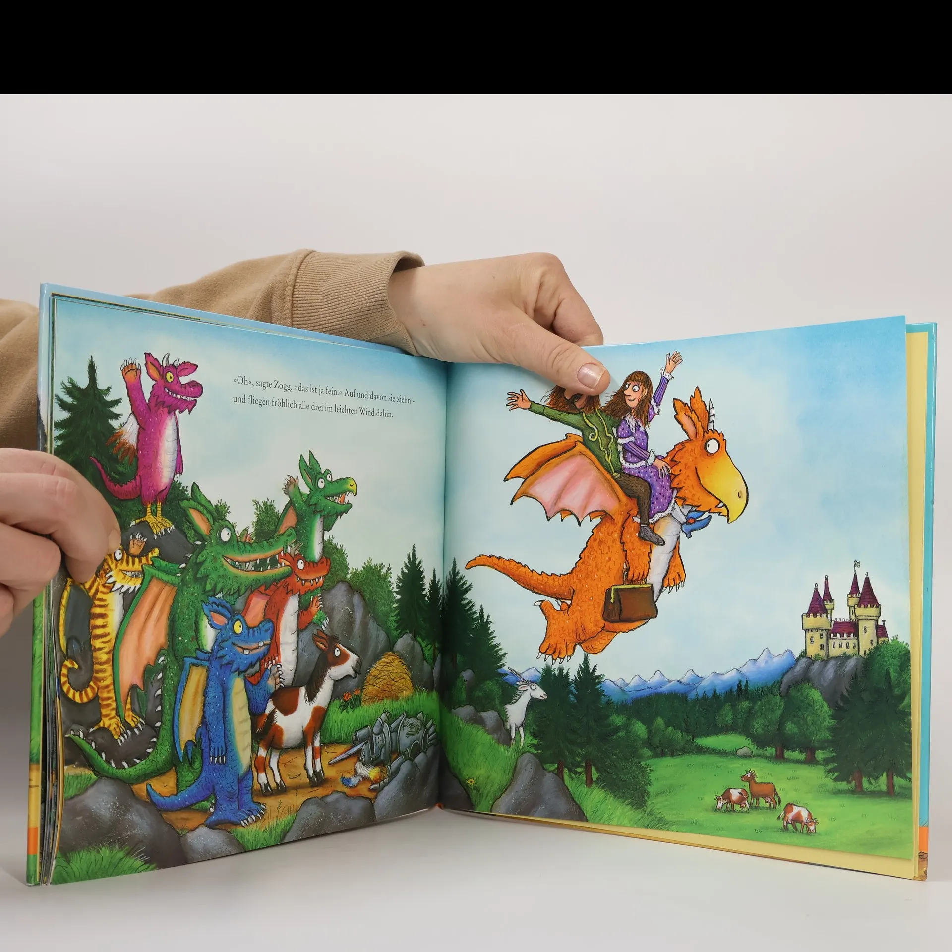 Sonderausgabe des feurigen Klassikers mit Papiermaske zum Selberbasteln. Zogg, der größte kleine Drachen, lernt in der Drachenschule alles das, was Drachen wissen müssen, und er macht sich mit Feuereifer ans Werk: Fliegen, Brüllen, Feuerspeien. Die schwierigste aller Aufgaben aber ist es, eine Prinzessin zu entführen ... Ein Bilderbuch zum Vorlesen und Abheben von den Schöpfern des weltberühmten Grüffelo.