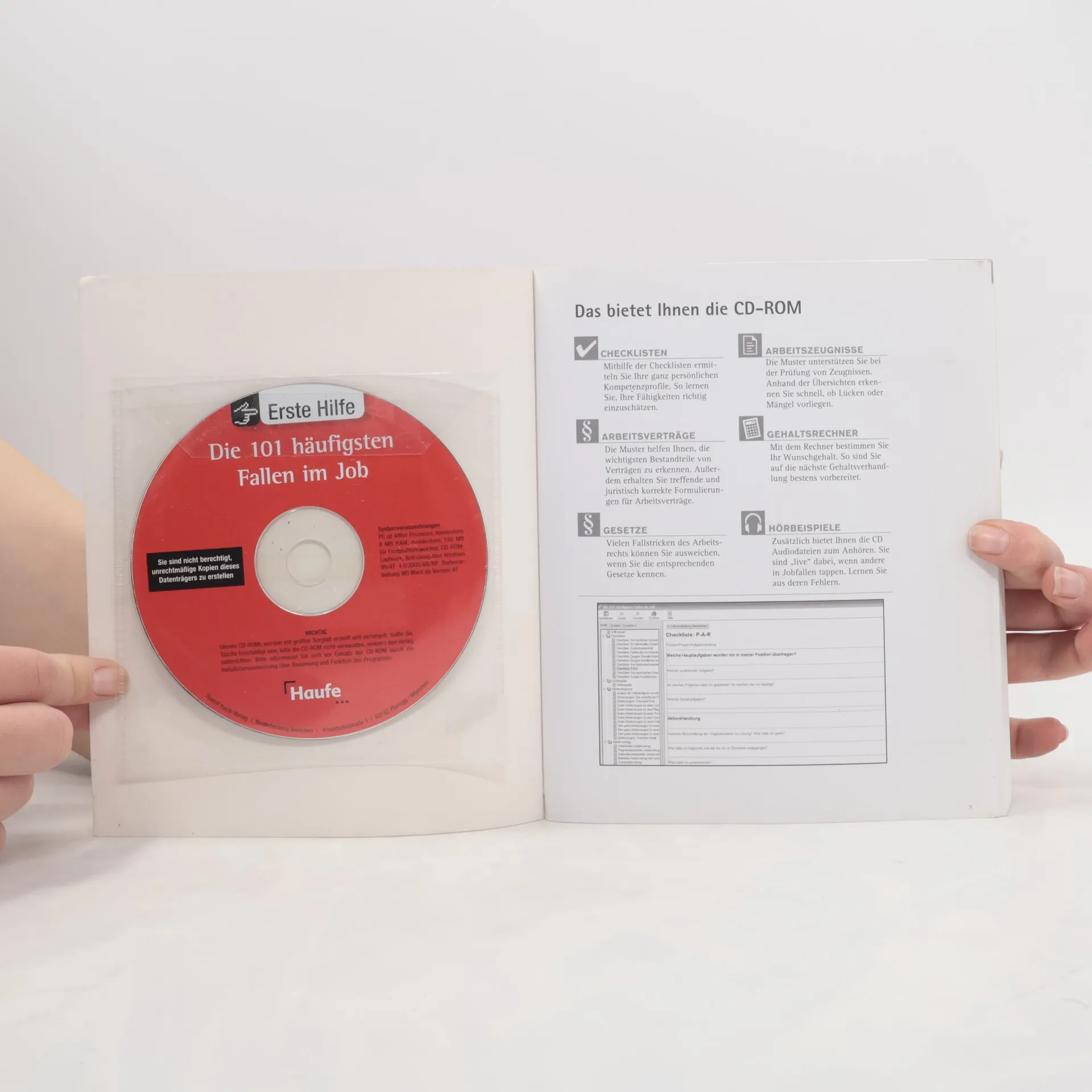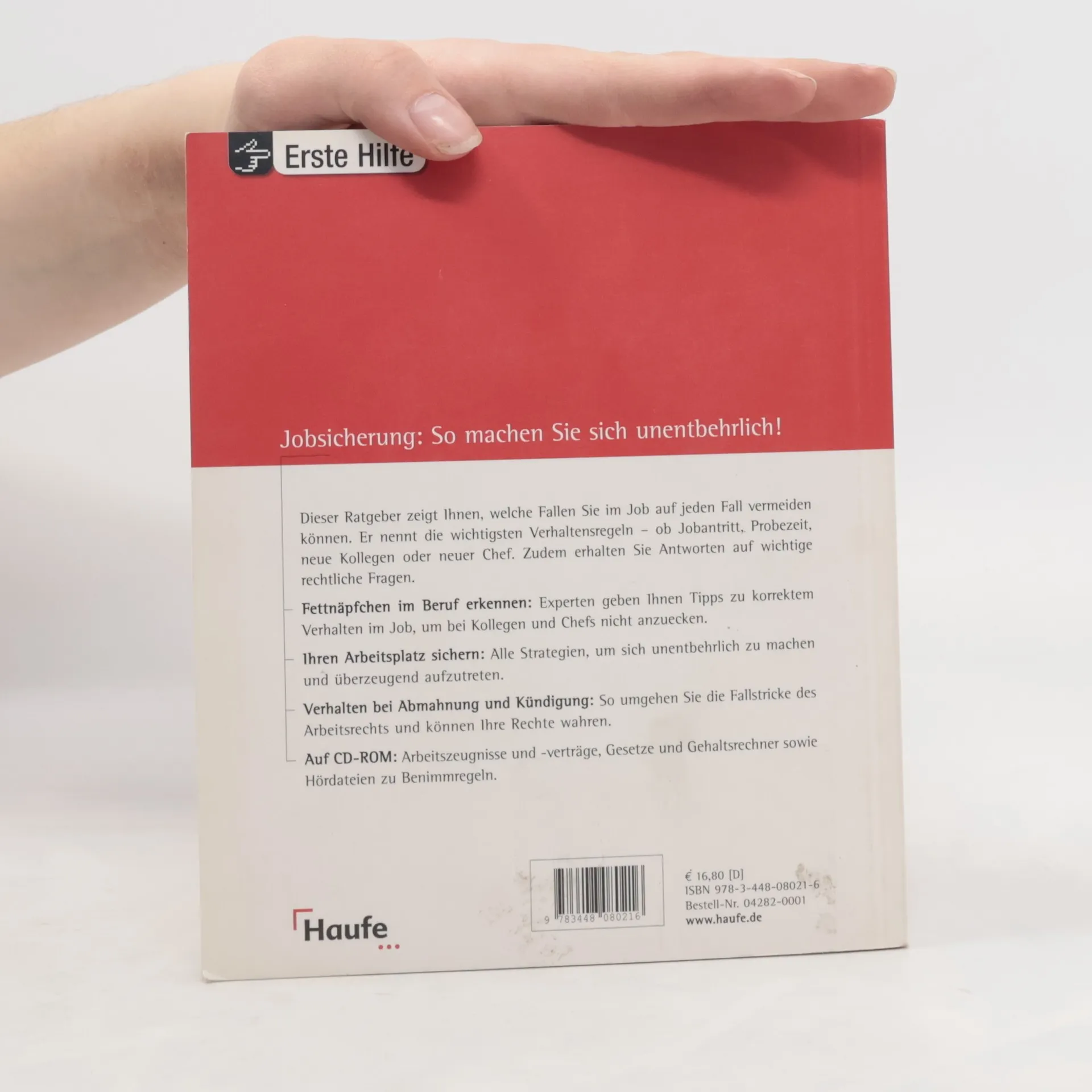 Dieses Buch ist der einzige Ratgeber, der die am häufigsten auftretenden beruflichen Fallen im Berufsalltag aufzeigt und Tipps gibt, sie zu umgehen. So machen Sie sich bei Ihrem Arbeitgeber unentbehrlich und sichern Ihren Job. INHALTE - Die wichtigsten Verhaltensregeln in beruflichen Situationen: Jobantritt, Probezeit, neue Kollegen im Büro und neuer Chef - Wie Sie sich unentbehrlich machen und überzeugend auftreten - Wie Sie Fehler bei Arbeitsvertrag und Kündigung vermeiden und Ihre Rechte wahren. AUF DER CD-ROM - Arbeitszeugnisse und -verträge, - Gesetze und Gehaltsrechner - sowie Hördateien zu Benimmregeln. -