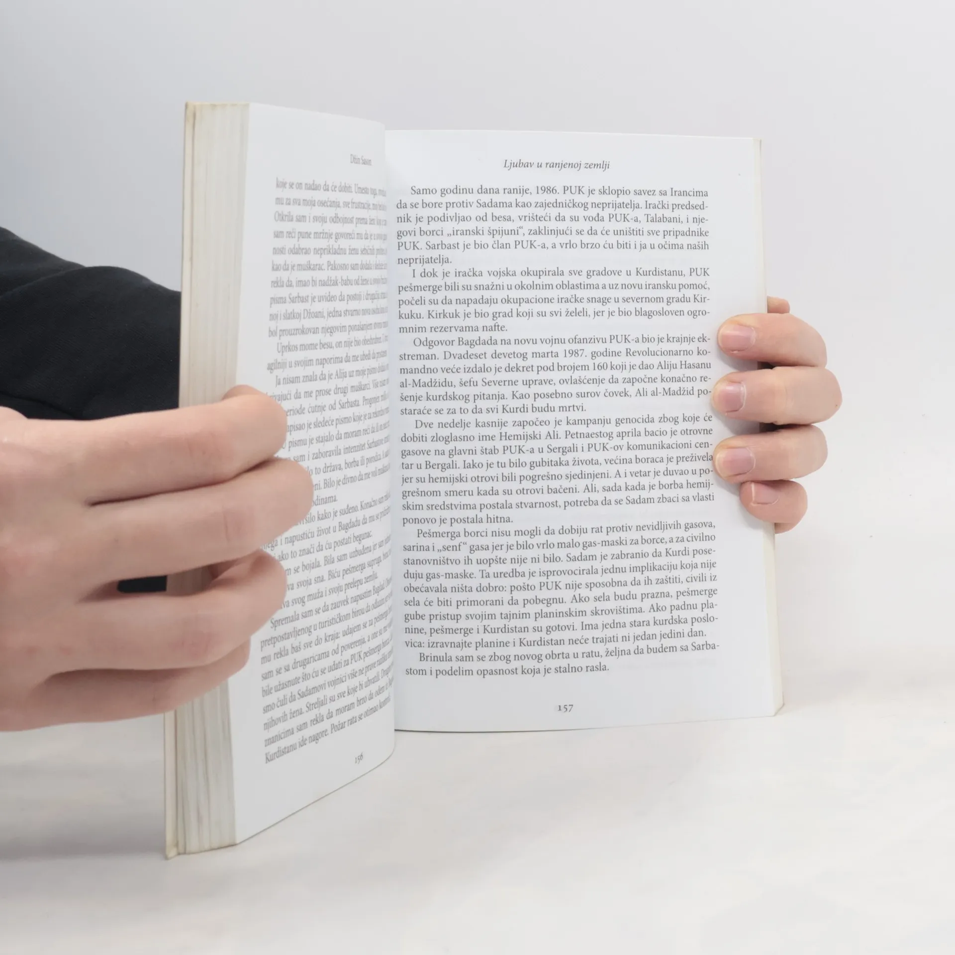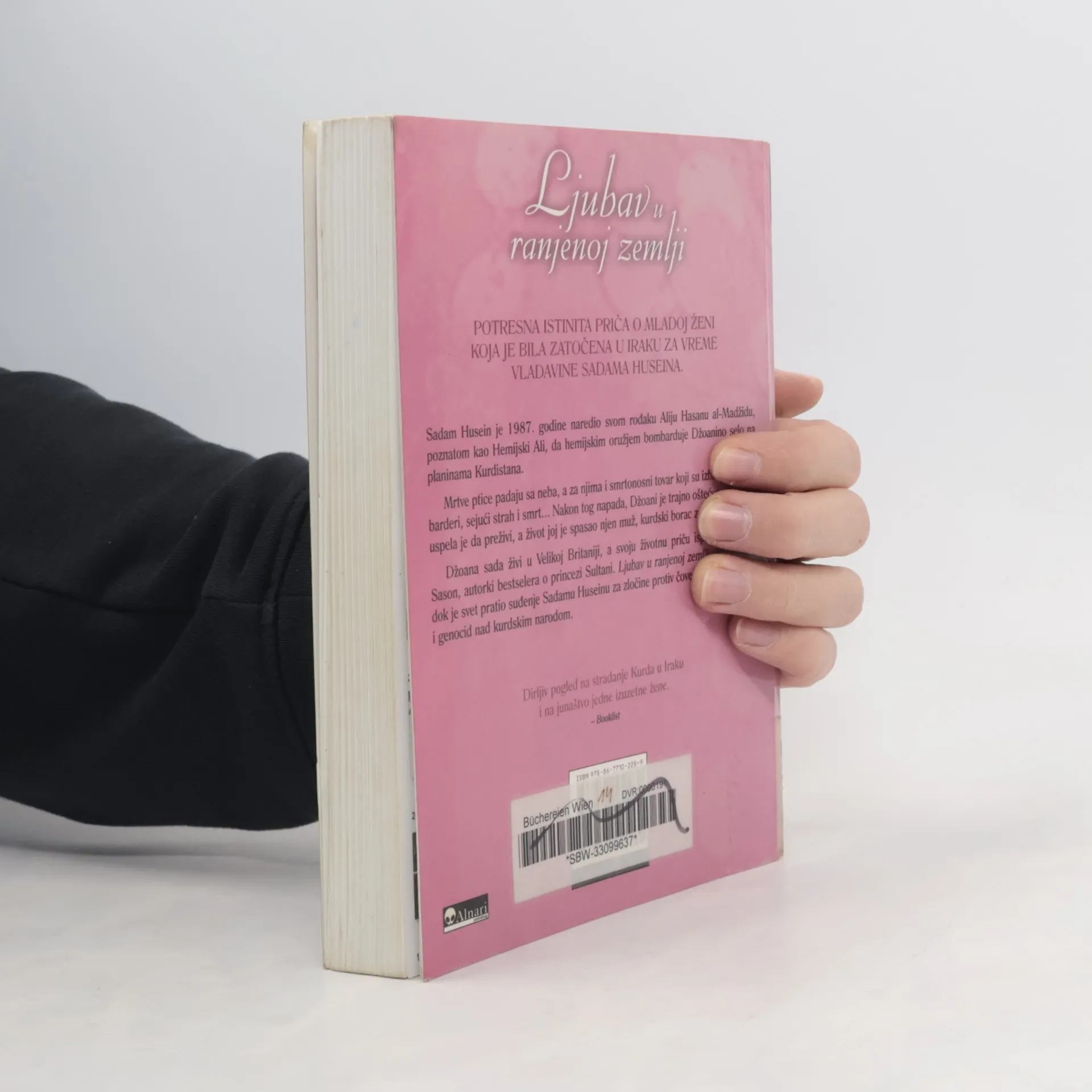 Od autorke bestselera o princezi Sultani. Potresna istinita priča o mladoj ženi koja je bila zatočena u Iraku za vreme vladavine Sadama Huseina. Sadam Husein je 1987. godine naredio svom rođaku Aliju Hasanu al-Madžidu, poznatom kao Hemijski Ali, da hemijskim oružjem bombarduje Džoanino selo u planinama Kurdistana. Mrtve ptice padaju sa neba, a za njima i smrtonosni tovar koji su izbacivali bombarderi, sejući strah i smrt... Nakon tog napada, Džoani je trajno oštećen vid. Ipak, uspela je da preživi, a život joj je spasao njen muž, kurdski borac za slobodu. Džoana sada živi u Velikoj Britaniji, a svoju životnu priču ispričala je Džin Sason, autorki bestselera o princezi Sultani. Ljubav u ranjenoj zemlji je objavljena dok je svet pratio suđenje Sadamu Huseinu za zločine protiv čovečnosti, uključujući i genocid nad kurdskim narodom.