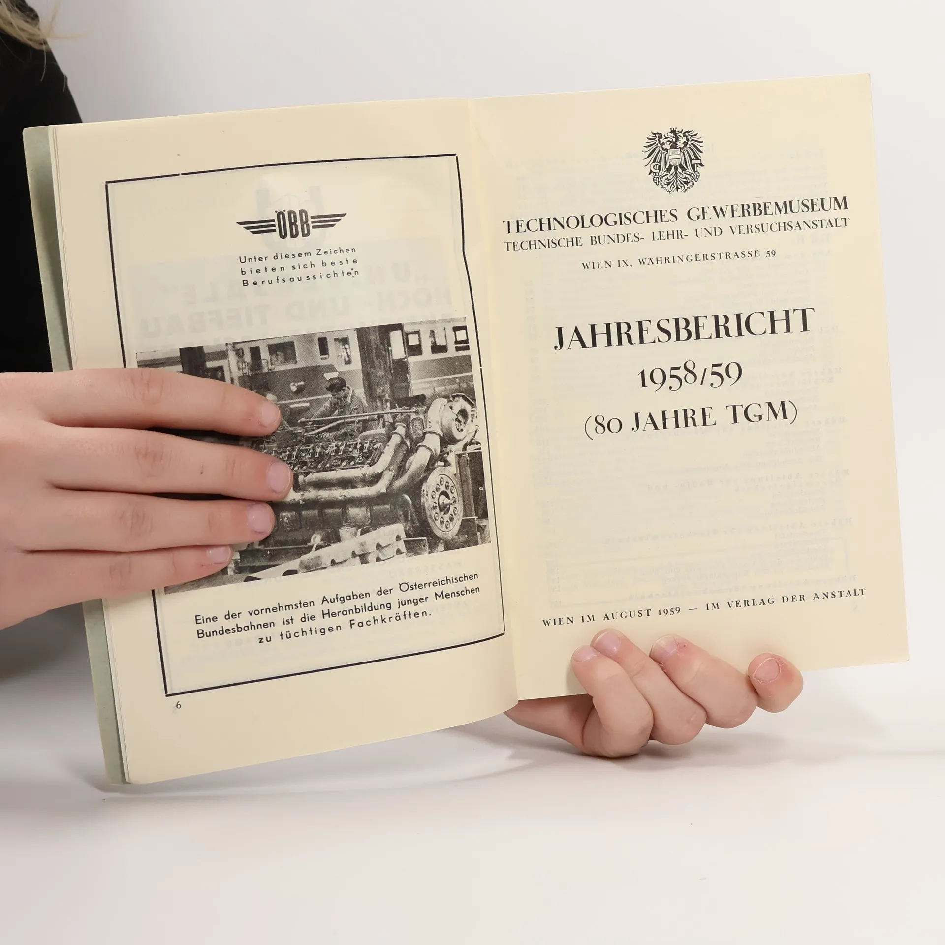 Technologisches Gewerbemuseum. Jahresbericht 1958/59 (80 Jahre TGM), Collectif d'auteurs
