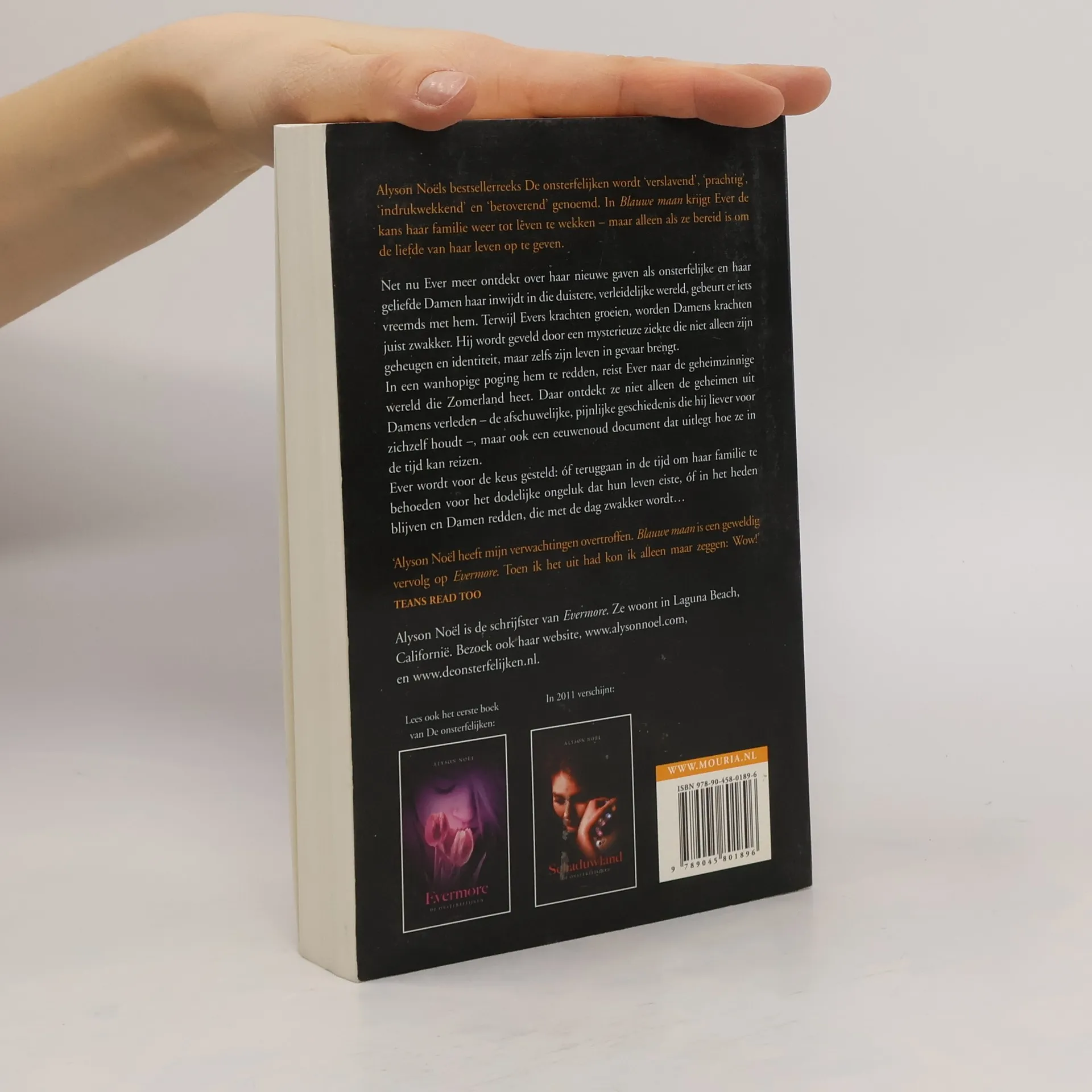 In Blauwe Maan krijgt Ever de kans haar familie weer tot leven te wekken - maar alleen als ze bereid is om de liefde van haar leven op te geven. Net nu Ever meer ontdekt over haar nieuwe gaven als een onsterfelijke en haar geliefde Damen haar inwijdt in die duistere, verleidelijke wereld, gebeurt er iets vreemds met hem. Terwijl Evers krachten groeien, worden Damens krachten juist zwakker. Hij wordt geveld door een mysterieuze ziekte die niet alleen zijn geheugen en identiteit, maar zelfs zijn leven in gevaar brengt. In een wanhopige poging hem te redden, reist Ever naar de geheimzinnige wereld die Zomerland heet. Daar ontdekt ze niet alleen de geheimen uit Damens verleden - de afschuwelijke, pijnlijke geschiedenis die hij liever voor zichzelf houdt -, maar ook een eeuwenoud document dat uitlegt hoe ze in de tijd kan reizen. Ever wordt gedwongen te kiezen tussen teruggaan in de tijd om haar familie te behoeden voor het dodelijke ongeluk dat hun leven eiste óf in het heden te blijven en Damen te redden, die met de dag zwakker wordt '