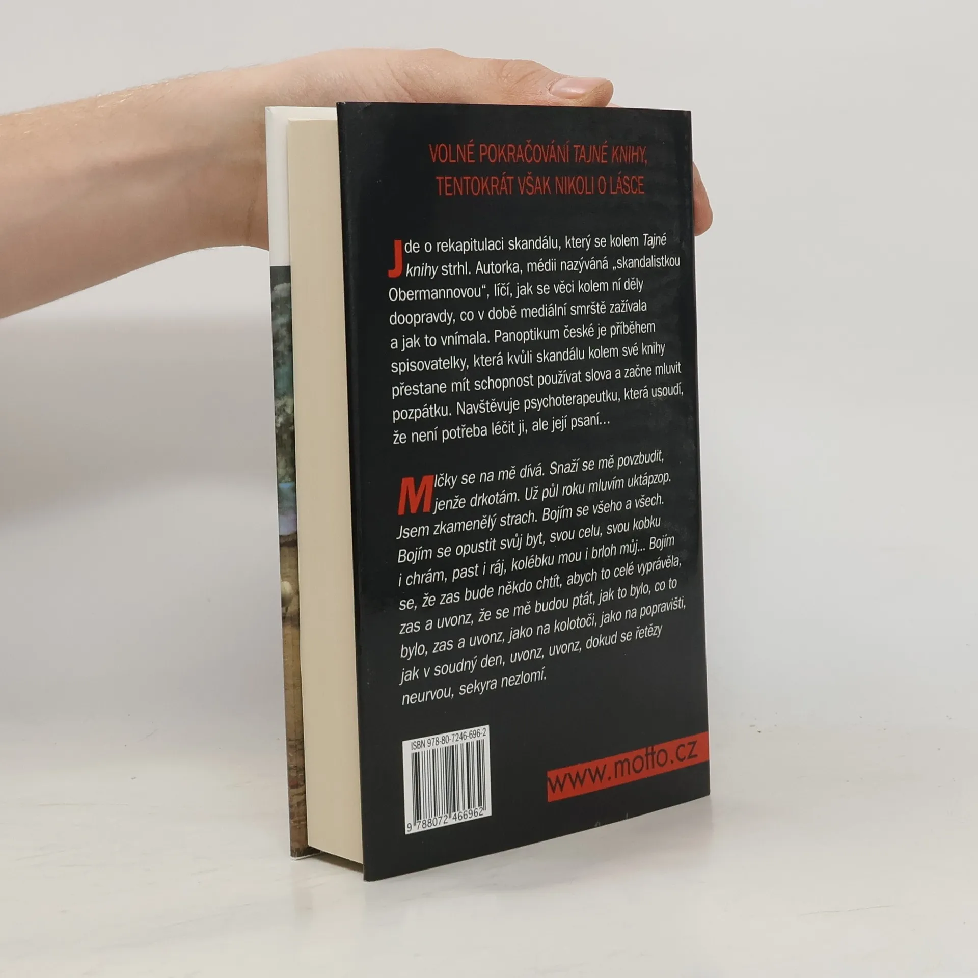 Jde o rekapitulaci skandálu, který se kolem Tajné knihy strhl. Autorka, médii nazývána „skandalistkou Obermannovou“, líčí, jak se věci kolem ní děly doopravdy, co v době mediální smrště zažívala a jak to vnímala. Panoptikum české je příběhem spisovatelky, která kvůli skandálu kolem své knihy přestane mít schopnost používat slova a začne mluvit pozpátku. Navštěvuje psychoterapeutku, která usoudí, že není potřeba léčit ji, ale její psaní...