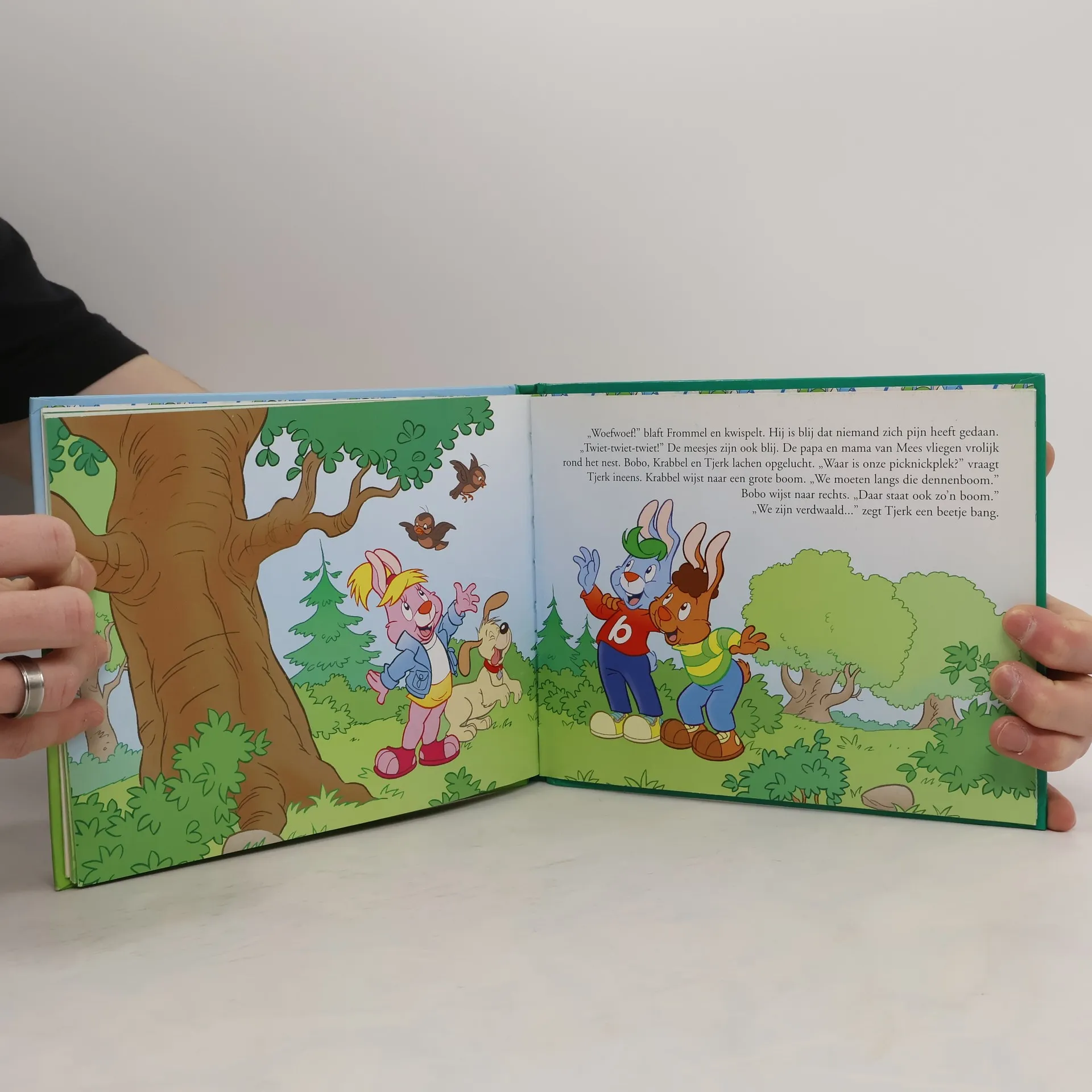 Als konijn Bobo met zijn familie gaat picknicken, redt hij een vogeltje dat uit het nest is gevallen. Prentenboek met cartoonachtige tekeningen en kleur. Vanaf ca. 4 jaar.