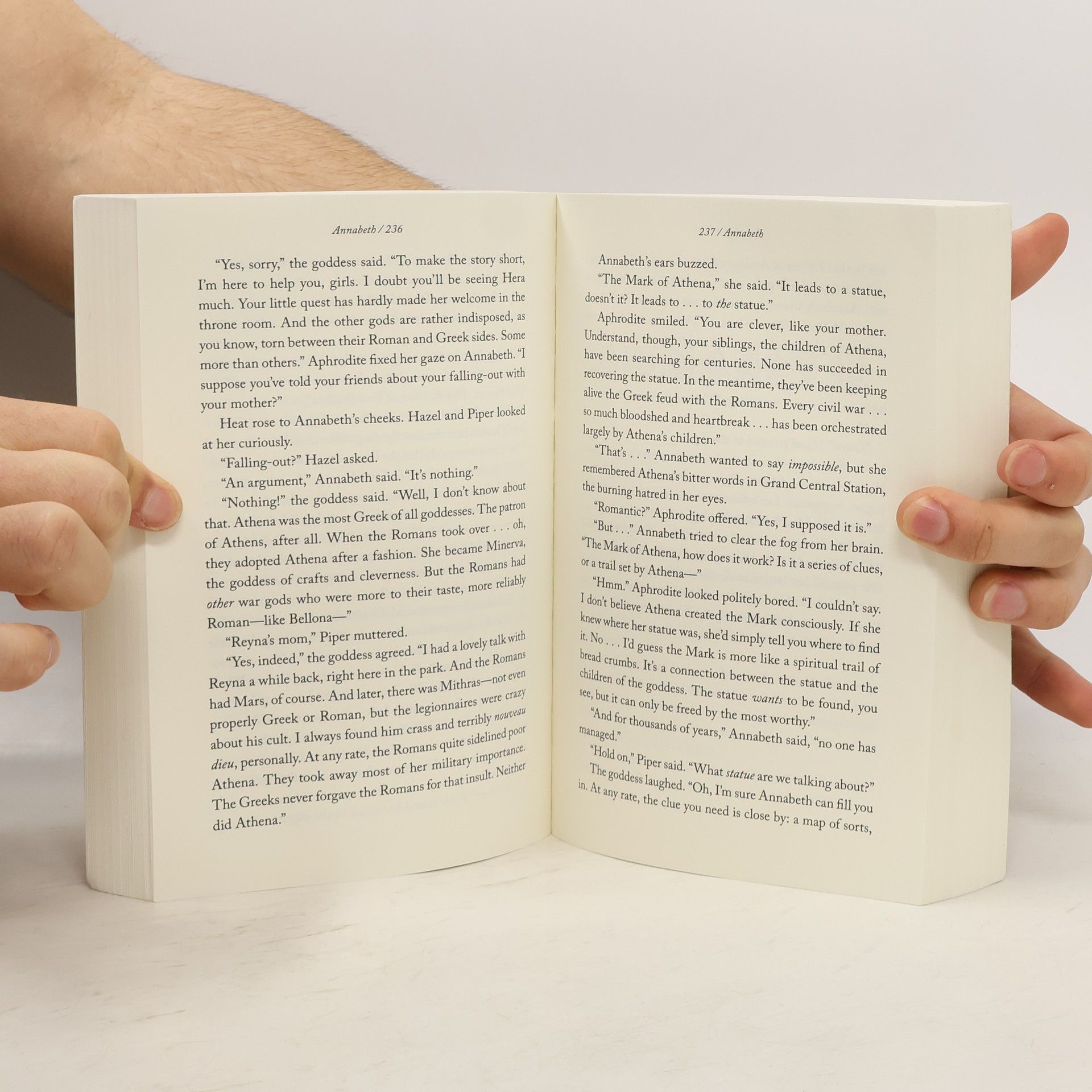 Annabeth is terrified. Just when she’s about to be reunited with Percy—after six months of being apart, thanks to Hera—it looks like Camp Jupiter is preparing for war. As Annabeth and her friends Jason, Piper, and Leo fly in on the Argo II, she can’t blame the Roman demigods for thinking the ship is a Greek weapon. With its steaming bronze dragon masthead, Leo’s fantastical creation doesn’t appear friendly. Annabeth hopes that the sight of their praetor Jason on deck will reassure the Romans that the visitors from Camp Half-Blood are coming in peace. And that’s only one of her worries. In her pocket Annabeth carries a gift from her mother that came with an unnerving demand: Follow the Mark of Athena. Avenge me. Annabeth already feels weighed down by the prophecy that will send seven demigods on a quest to find—and close— the Doors of Death. What more does Athena want from her? Annabeth’s biggest fear, though, is that Percy might have changed. What if he’s now attached to Roman ways? Does he still need his old friends? As the daughter of the goddess of war and wisdom, Annabeth knows she was born to be a leader, but never again does she want to be without Seaweed Brain by her side. Narrated by four different demigods, The Mark of Athena is an unforgettable journey across land and sea to Rome, where important discoveries, surprising sacrifices, and unspeakable horrors await. Climb aboard the Argo II, if you dare....