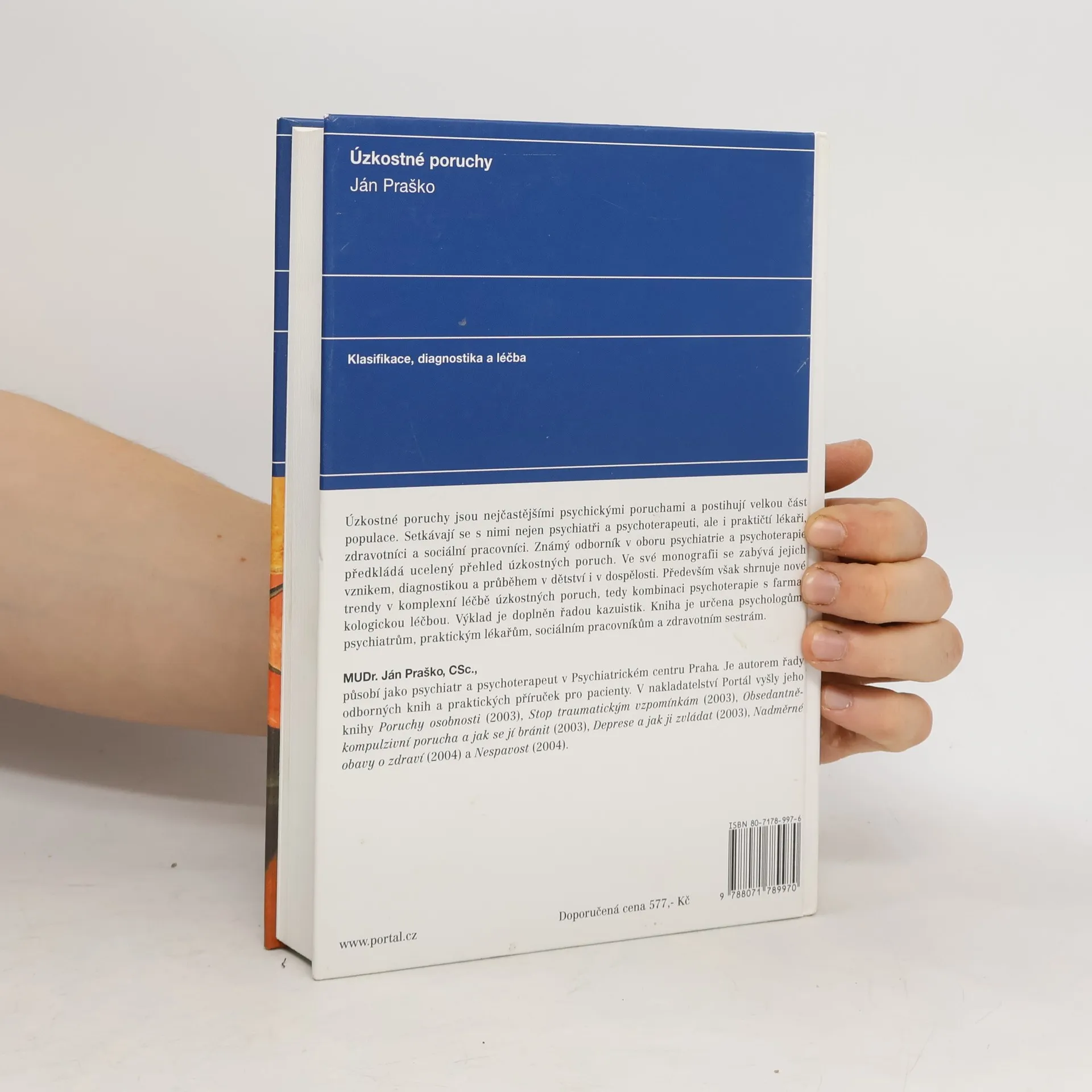 Moderní trendy v léčbě Úzkostné poruchy představují nejčastější psychické poruchy, které postihují velkou část populace. Setkávají se s nimi nejen psychiatři a psychoterapeuti, ale i praktičtí lékaři, zdravotníci a sociální pracovníci. Známý odborník uvádí ucelený přehled úzkostných poruch, zabývá se jejich vznikem, diagnostikou, průběhem v dětství i v dospělosti. Především však shrnuje nové trendy v komplexní léčbě úzkostných poruch, tedy kombinaci psychoterapie s farmakologickou léčbou. Monografie obsahuje řadu kazuistik.